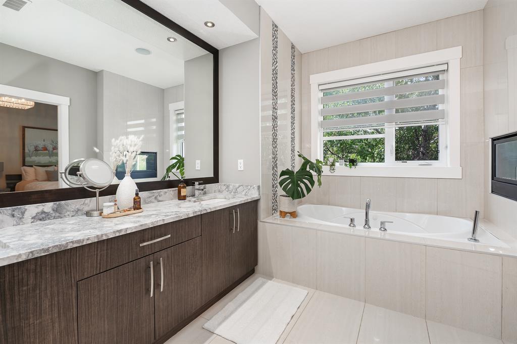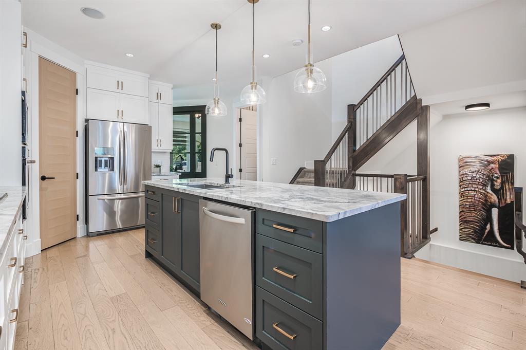 Welcome to 2426 25 St SW, an exquisite duplex in the heart of Richmond. This 4-bedroom, 4-bathroom air-conditioned residence boasts a fully renovated main floor, meticulously designed with luxurious finishes that reflect a harmonious blend of contemporary style and timeless elegance. With over $70,000.00 invested in the renovation, no detail has been overlooked in creating a truly exceptional living experience.Step inside and be captivated by the seamless flow of this stunning home. The main floor greets you with an open-concept layout, flooded with natural light that cascades through large windows, creating an inviting and vibrant ambiance throughout. The gleaming hardwood floors extend from room to room, connecting the living spaces with an air of sophistication. You'll be sure to appreciate the Ecobee thermostat, smart home enabled Lutron switches throughout, and smart home compatible Yale keypad locks on the back door and garage. The gourmet kitchen is a chef's dream, featuring high-end stainless steel appliances, custom cabinetry, and a large island. The adjoining dining area offers a sophisticated setting for memorable dining experiences. The front office space is completely flexible, with the ability to be used as formal dining, additional living space, or a hobby room! Unwind and relax in the spacious living room, where a cozy fireplace invites you to curl up with a book or enjoy evenings with loved ones. The mudroom leads to the private backyard oasis, with access to the double detached garage. Imagine hosting al fresco dinners on the deck, or basking in the warm sunshine on lazy weekends.The upper level is dedicated to rest and rejuvenation, with three generously sized bedrooms providing ample space for the whole family. The primary suite is a serene retreat, featuring a walk-in closet and a luxurious ensuite bathroom adorned with modern fixtures, a deep soaking tub, and a separate shower. Two additional bedrooms offer flexibility for a family, ensu ring everyone has their own private sanctuary. The laundry room is conveniently located on the upper level as well.Additional features of this exceptional home include a fully finished basement with a fourth bedroom and a four-piece bath, wet bar, recreation room, plus the basement is roughed in for in-floor heat! The detached garage is conveniently accessible from the back alley.Richmond is home to some of the city’s best schools, plus easy access to Crowchild Trail and onto Glenmore Trail means commuting is a breeze. This community is centrally located, with many parks, playgrounds, plus so many options for retail, dining and entertainment, that you won’t have to go far for a great meal or a fun evening. Don't miss the opportunity to own this meticulously renovated duplex, where modern luxury and timeless design combine effortlessly. (id:22211)