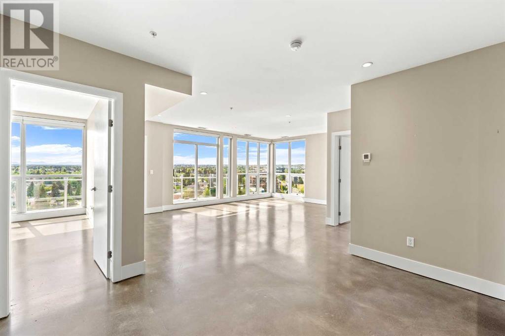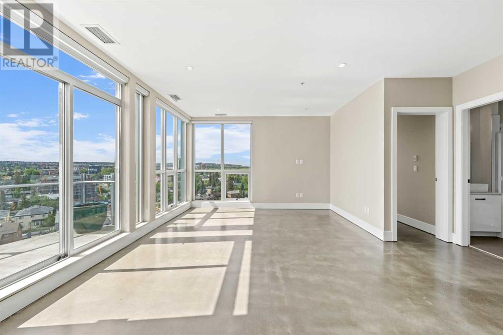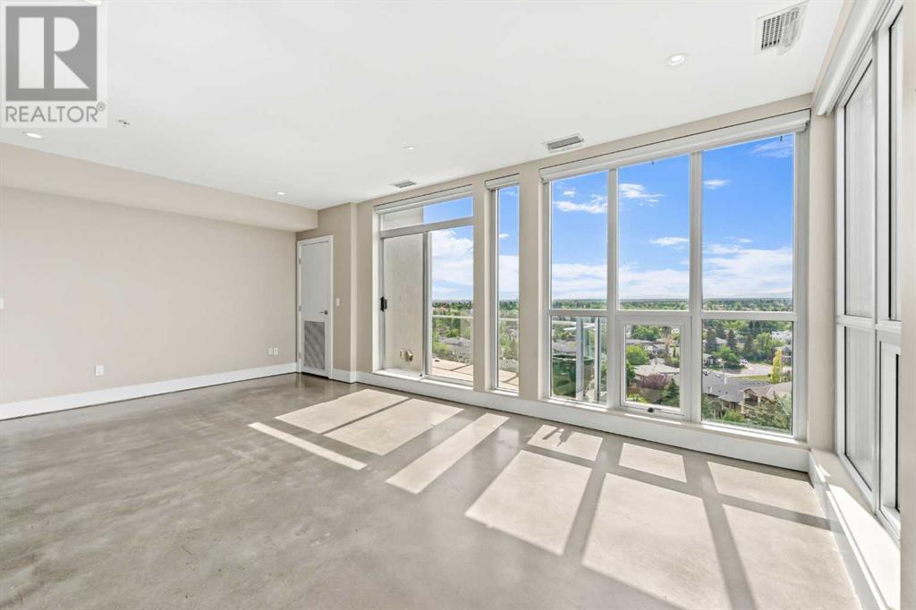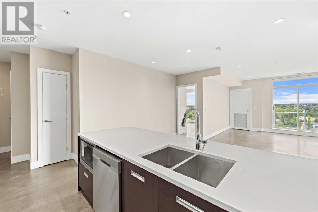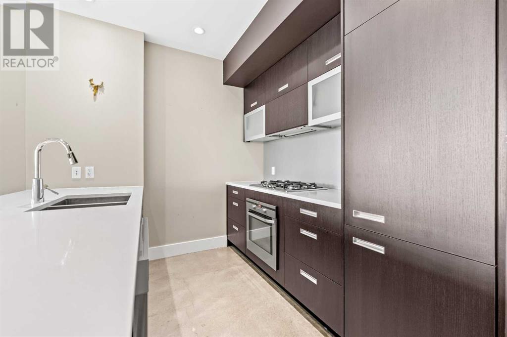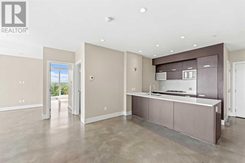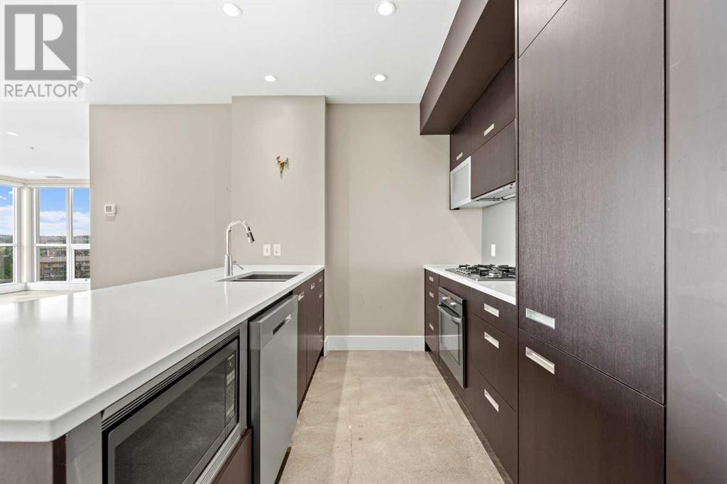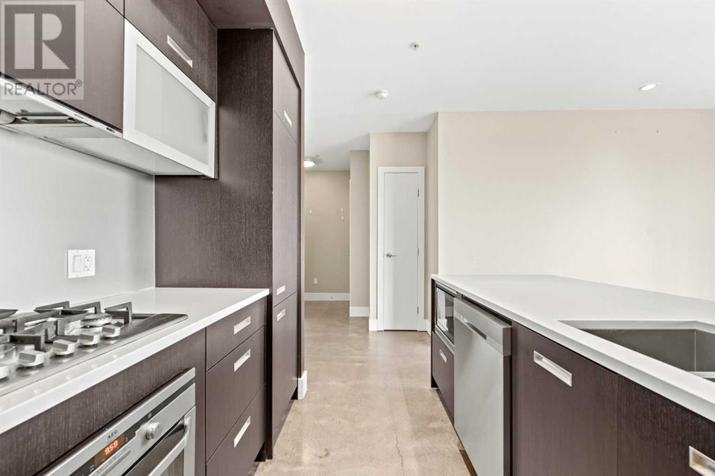 If you are looking for a Penthouse suite with vast views of the mountains in a quiet concrete building and great location, this is it! This 2 bedroom, 2 bathroom, top floor suit with titled indoor parking, is a gem. There is also a SECOND TITLED PARKING STALL BEING OFFERED TO PURCHASE to the buyer of this suite. Built in 2010 with excellent finishes. This modern style suite has walls of windows for you to enjoy the mountain views from every room of the home. The concrete flooring creates a sleek, urban feel and flow to the space. The European style kitchen has quartz countertops, a built-in, cabinetry finished, fridge, all stainless steel appliances (newer dishwasher and microwave), plenty of cabinet and counter space. There is a 5 burner, gas stove and built-in gas oven. This is a great space for entertaining with the large breakfast bar and is open to the entire living space. The living area is huge with lots of space for a large dining area and huge living room. Again, the full walls of windows, facing west and north! The large, west facing deck is the perfect space to spend time entertaining or watching the Alberta skies and mountain views. This entire suite is filled with natural light. The master bedroom has a walkthrough closet into the 4 pce ensuite bath with separate shower and soaker tub. The second bedroom has a 3 pce bath right outside the door. It would also be a lovely office or workspace with large bright windows. There is a large insuite storage room and insuite laundry as well. All suites in this building has their own furnace/ air cooling unit. All utilities, with the exception of electricity are included in the condo fees. Having 2 parking stalls is a rare find! All of this is a wonderful location that is minutes to downtown and all of the shops and restaurants on 17th Ave. This is a highly desirable complex. Please call for info regarding the second titled parking stall for sale. Call your favourite Realtor today to book a sh owing! This is a highly desirable building for investors, many renters desire to live here. (id:22211)
