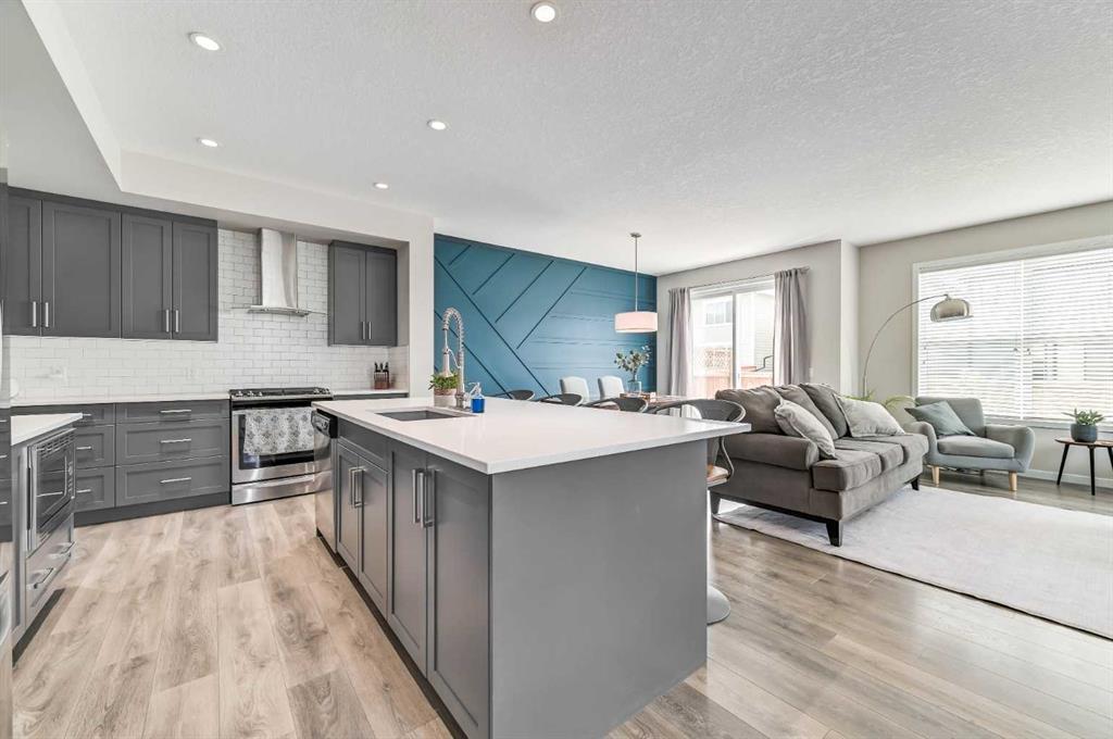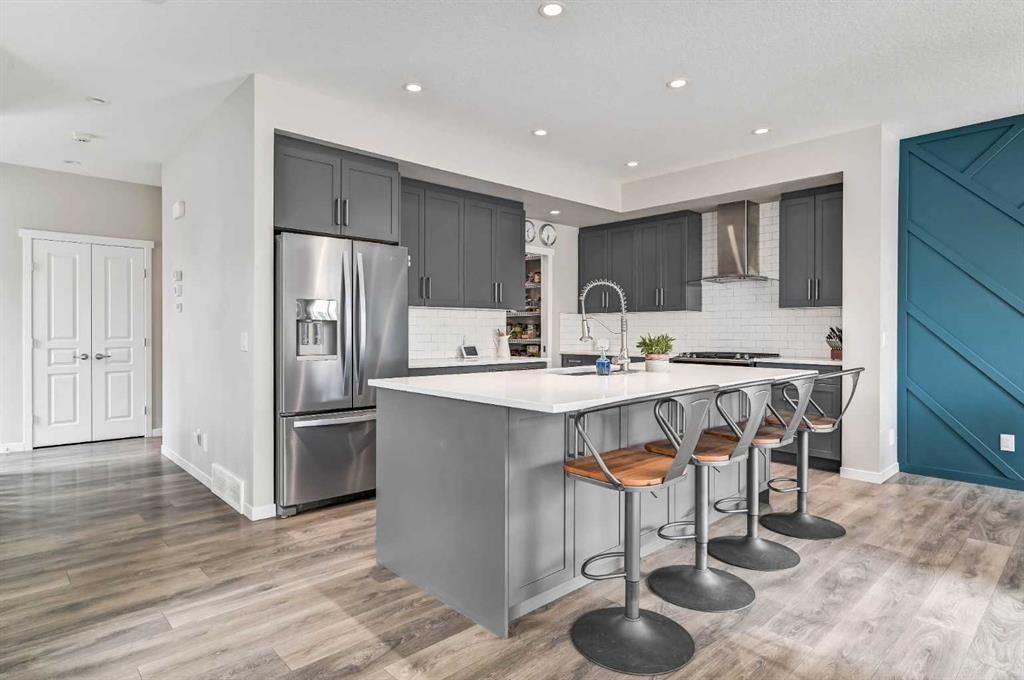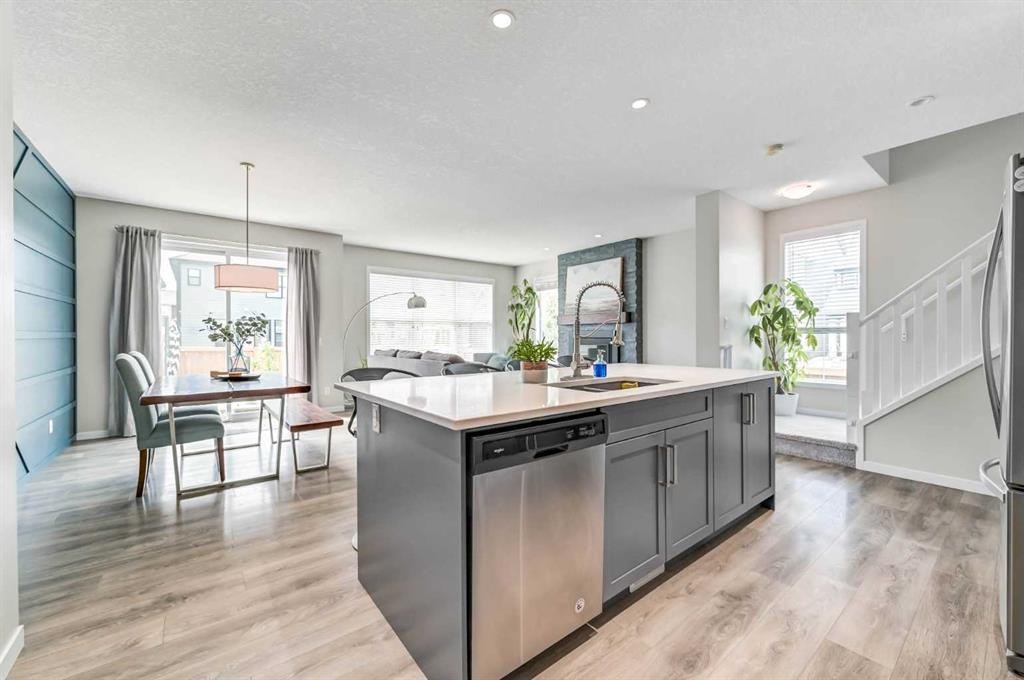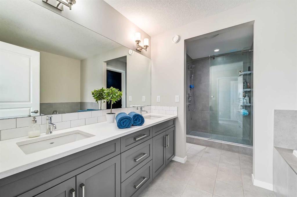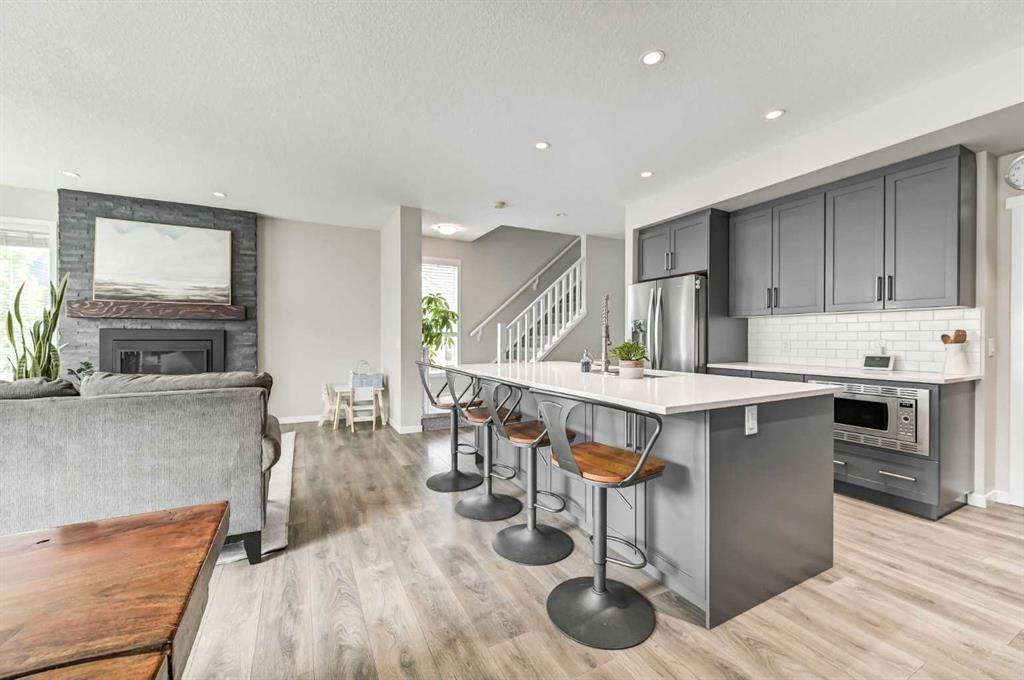 252 Masters Cres SE. Lakeside lifestyle living in the sought after community of Mahogany. Bold exterior features with timeless brick accents. Bright corner lot home flooded with natural light. Refreshing modern open floor plan & over height 9’ ceilings. Entertainer’s dream kitchen with ample shaker style cabinets, large central island, & Caesar stone quartz countertops. Deluxe stainless steel appliance package including gas range. Large dining room with focal point feature wall. Great room overlooking the rear yard and boasting a fireplace with custom floor to ceiling stone clad surround & stained wood mantle. 3 generous bedrooms up including spacious primary retreat with unique walk-behind closet featuring full height cabinet doors for a finished & clean look. Luxurious spa style ensuite with deep soaker tub, dual sinks, custom tile work, & separate tiled glass shower. Functional central bonus room. 2nd level laundry rm with storage cabinetry & folding table. Fully developed lower level with full bathroom, 4th bedroom, & media room. Oversize, insulated & heated garage with epoxy floor coating. Central A/C. Beautiful rear landscaping perfect for entertaining with 2 patio areas, hot tub, & sunny South exposure! Close to Main Beach & Wetlands & just mins to schools, shopping, all amenities, & a quick escape from the city. The total package, turnkey lake community home! (id:22211)