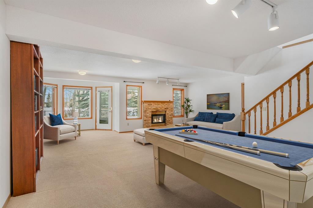 271 Hamptons Park NW | Prime 1,562 SQ FT Main Floor Bungalow Villa In Sought After Hamptons Park Chateaux | Situated At The End Of A Quiet Cul-De-Sac | Backing Onto A Gorgeous Private Serene Greenspace With Mature Trees & Walking Paths | One Of The Largest Walk-Out Units In This Complex With Over 3,000 Sq Ft Of Developed Living Space | Open Concept Main Floor Plan | A Spacious Kitchen With Plenty Of Storage, Counter Space, Convenient Walk In Pantry & Breakfast Nook All Leading To An East Facing Balcony Overlooking The Beautiful Green Space | A Formal Dining Room & Living Room With A Stone Faced Gas Fireplace | Two (2) Bedrooms Plus Den On Main Floor | Expansive Primary Bedroom Overlooks The Calm Of The Green Space & Has 2 Separate Closets, Including A Walk In Closet |The Primary Ensuite Features A Jetted Tub & Separate Shower | Lower Level Walk Out Is Fully Developed & Boasts A Spacious Family & Games Room With Warm Inviting Gas Fireplace | Extra Bedroom & Full 4 Pce Bathroom | The Workshop Area Could Easily Be Converted Into A Media Room | Upgrades Include High-Efficiency Furnace (2018), Water Softener & Central Air-Conditioning. (id:22211)