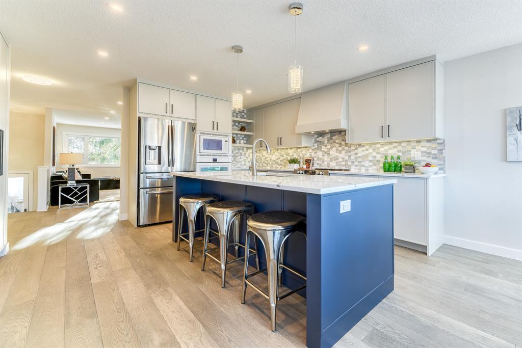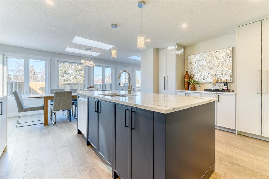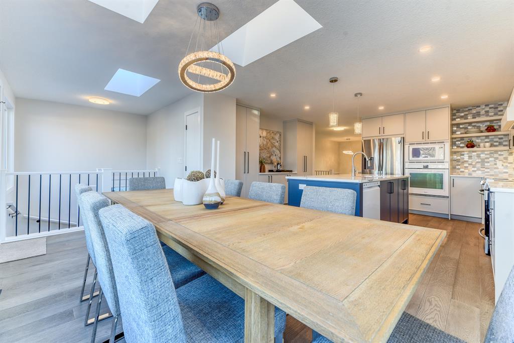 ** OPEN HOUSE Sun, Jun 4, 1:00-4:00 ** HIGH-END TRANSFORMATION in a family community has EVERYTHING DONE RIGHT. The unique layout of 2430+ SF of developed space has MULTIPLE AND SEPARATED LIVING SPACES AND BEDROOMS and shows craftsmanship throughout. Featuring an impressive living room, banquet dining room, oversized rec room, 4 bedrooms, private patios, and more!There are all-new windows, doors, fixtures, LED lighting, flooring (engineered hardwood main level), cabinets, and quartz countertops. The large living room has a feature fireplace surround and picture window for south sunlight. Everything is at the chef's reach in the SUPER FUNCTIONAL KITCHEN with 2 ovens, touchless faucet, and additional built-in cabinets. The dining room fits a table for 10+ and is surrounded by windows and skylights. The main level bedrooms have storage features, and the master ensuite is complete with a glass shower enclosure. The lower-level REC ROOM with wet bar and storage is fit for any family. There is a laundry room and direct access to the double, attached, HEATED & INSULATED GARAGE. Also to mention are mud rooms from the garage and back yard, high-efficiency furnace and two electrical panels. The outdoor spaces are complete with a two-level patio off the dining room ideal for large gatherings or private family time, and a quiet front patio to enjoy sunsets. In this area there are schools, shopping, firehall, MAX bus route stops, Southland Leisure Centre with wave pool, and 2 parks within 325 feet of the house. A short distance is Glenmore Reservoir, Fish Creek Park, CTrain, Costco, and the Ring Road to name a few. You do not want to regret a chance to see this MODERNIZED, LOW-MAINTENANCE, MOVE-IN READY HOME fit for your family’s long-term needs. (id:22211)