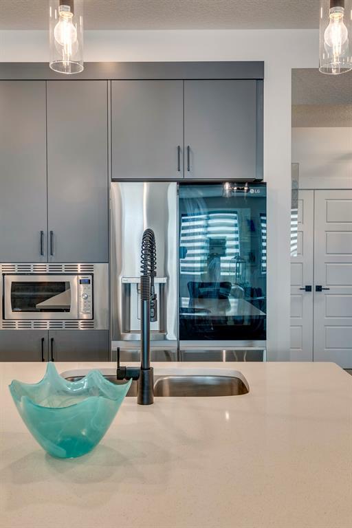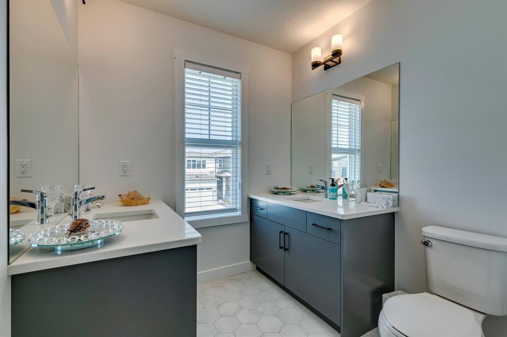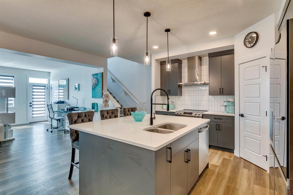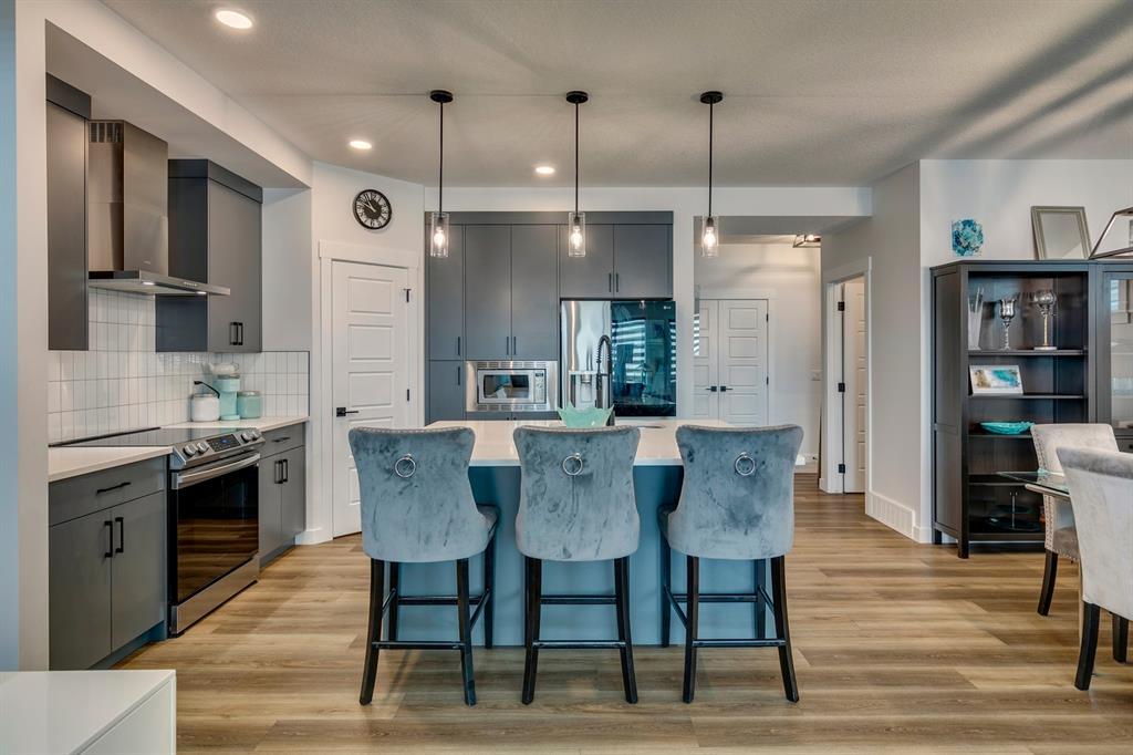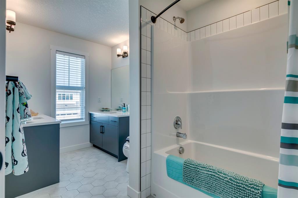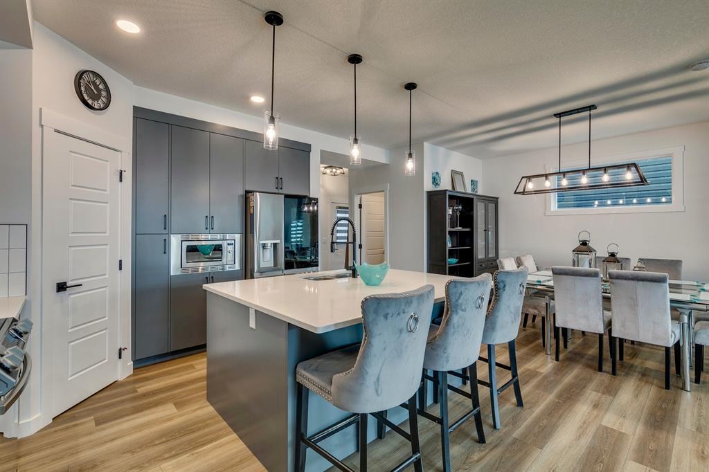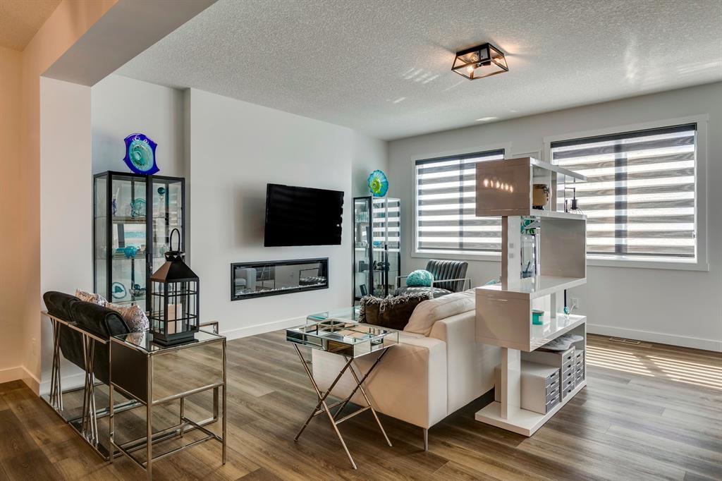 Welcome to Walden and this immaculate, newly built (2022), 2-story family home by Daytona which was treated to the Titanium upgrades package plus a list of extras customized by the home owner. This 3-bedroom, 2.5 bath property offers nearly 2300 sq. ft. of luxurious living space on the first and upper floor. Just over a year old; you can have it all without the wait and quick closing is available. Modern and tasteful design is combined with many additional off-package upgrades including two separate vanities in the second floor guest bathroom, unique hexagon tiles in upper bathrooms and upper level laundry room, extra windows on both the main and upper levels, high-end stainless steel appliances and quartz countertops throughout. All bedrooms have spacious walk-in closets. As you step into the spacious foyer you are greeted by 9-foot ceilings, creating inviting and modern open-concept living. The main floor boasts luxury vinyl plank flooring from the large foyer and mudroom with built in-storage through to the spacious living room at the rear of the home that offers ample space for relaxing or entertaining, including a built-in modern Napoleon 60” electric fireplace. The first floor is completely open with a dining room able to accommodate large dining suites. The kitchen is a chef's dream, complete with upgraded stainless-steel appliances, gleaming quartz countertops, to the ceiling modern cabinetry and walk-in pantry. The kitchen truly acts as the heart of this home, a place where both daily life and entertaining can happen with ease and style. This home features large rear windows and a walk-out to a no maintenance yard with $20k+ spent on a rear (and front) landscaping transformation which offers a concrete stamped patio, new fencing, and decorative stone making a tranquil oasis for relaxation, children's play, or social gatherings and an additional separately fenced artificial turf area. The upper level offers a generous principal suite with a spa-inspired 5 -pc ensuite, featuring high-quality fixtures & finishes complete with a double vanity and a gorgeous stand alone soaker tub. The generous walk-in closet offers shelving and completes the primary suite. The large bonus room adds to the spaciousness of this home and is set up for a family movie night but the space is flexible enough to use as a children’s playroom, multi-desk office or with minimal changes a 4th bedroom. The upper floor laundry room is a huge convenience and is set up with a beverage fridge and storage. Continuing on this upper floor are two generously sized guest bedrooms with walk-in closets that share another 5-pc bathroom. The unfinished basement provides endless potential, ready to be transformed into a gym, office or additional bedrooms. This home combines stylish design, practical features, and luxurious finishes. In close proximity to major road routes, and conveniently located to area schools, shopping, restaurants and pathways. An absolute must see! (id:22211)