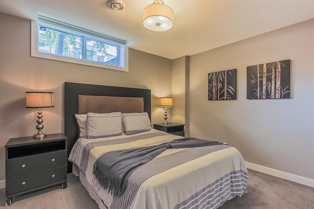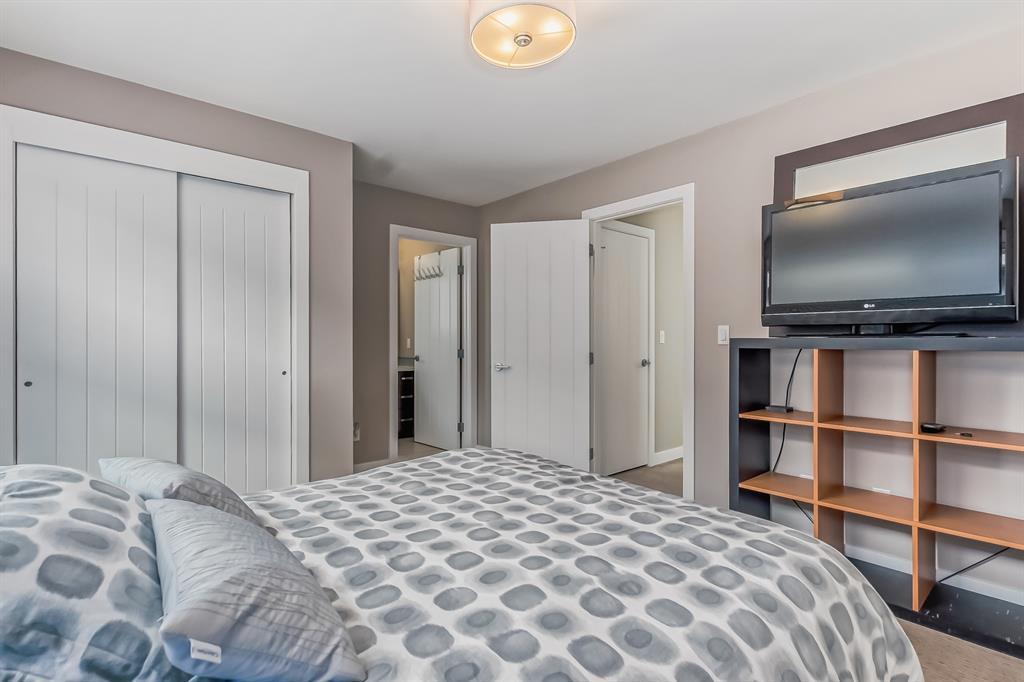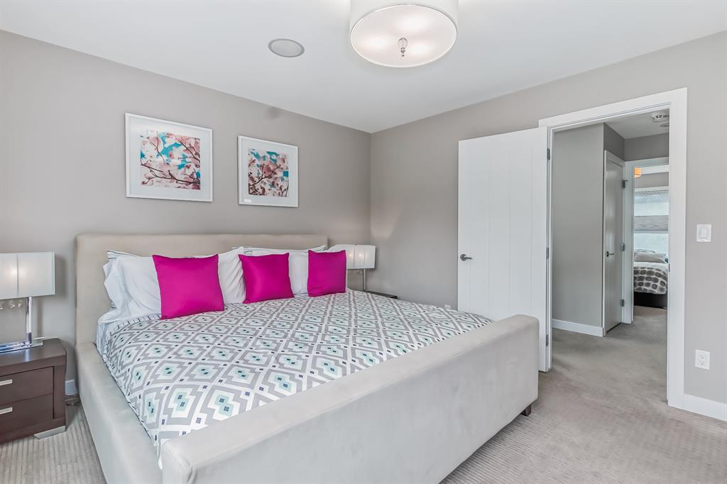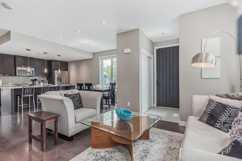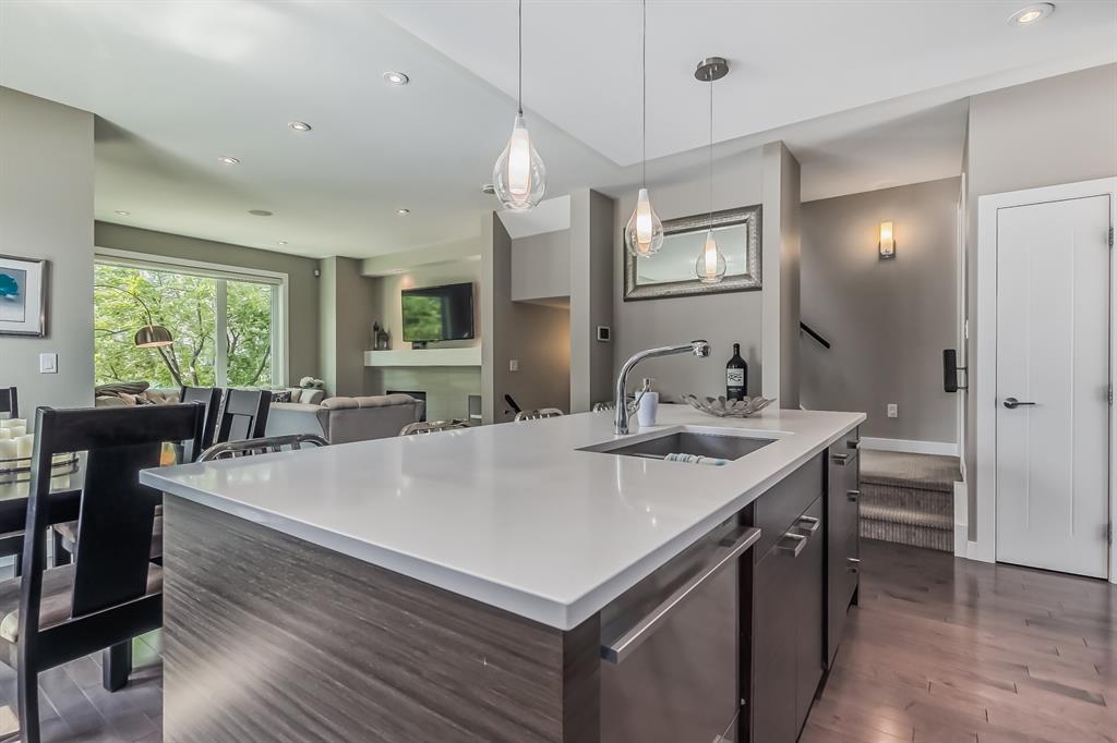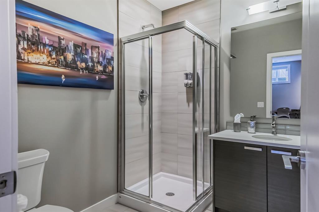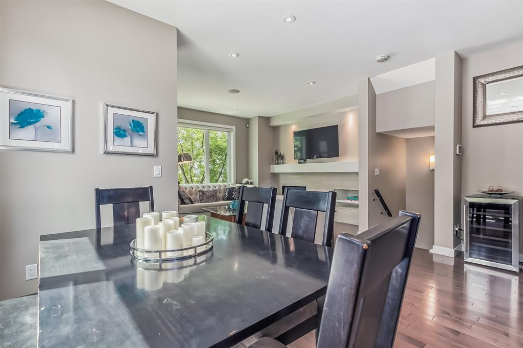 3 Bedroom (2+1), 3.5 bath --SUNNY S.W. CORNER END UNIT.-- One of the few executive townhomes with a PRIVATE FENCED SOUYTH YARD (great for FURRY FRIENDS) and private back deck. Almost 1700 ft2 of higher end finishing and development, including: mocha hardwood floors on the main, quartz countertops throughout, glacier blue tile blacksplash, stainless appliances, vaulted flat ceilings, pot lighting & AIR CONDITIONING. Main floor is totally open with a sleek gas fireplace in the living room, large dining area with BRIGHT south window and an Island kitchen (fits 4 bar stools) with gas range and a 2 drawer Fisher & Paykel Dishwasher. 2nd floor has 2 large bedrooms -- each with ensuites. The primary ensuite has heated floors, rain shower & double sinks. Full size, front loading, stacked laundry closet upstairs as well. Fully developed basement with large Family room, 3rd bedroom down and 3pc bath. Single detached garage. If you haven't been down to South Calgary lately --do a double take! cSpace Marda Loop has completely transformed this location. Walking distance to some great coffee shops, Marda Loop Community Association, Tennis courts, public library & community wading Pools. Minutes by car to the 'off leash' dog park, Glenmore Athletic Park, weekend Farmer's market and Marda Loop shopping. Don't forget to visit our 3D TOUR! ***OPEN HOUSE THIS SATURDAY MAY 27TH, 2-4PM*** (id:22211)
