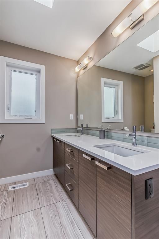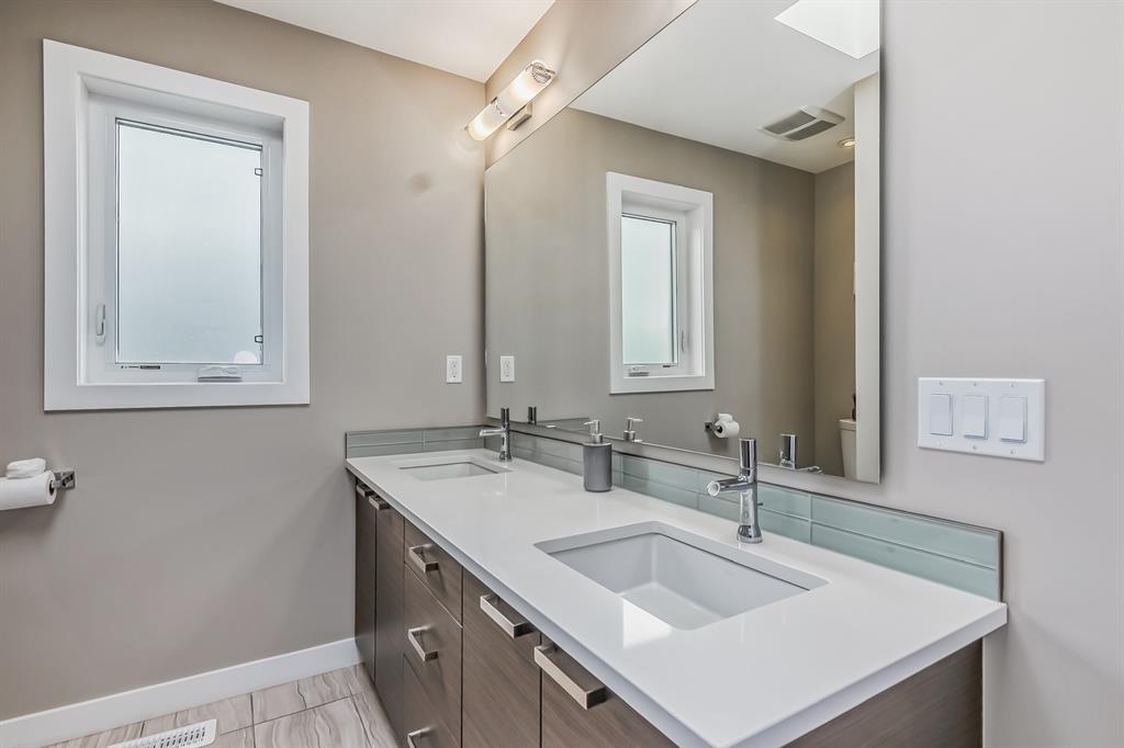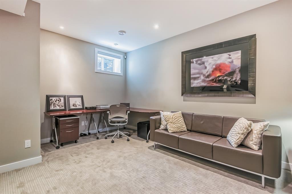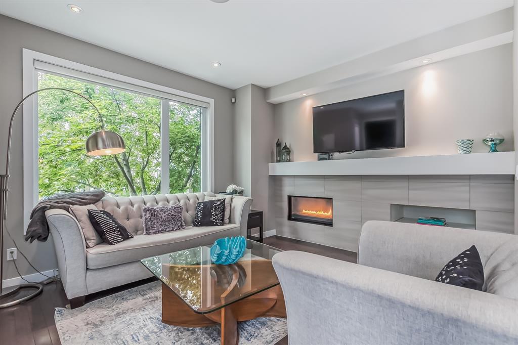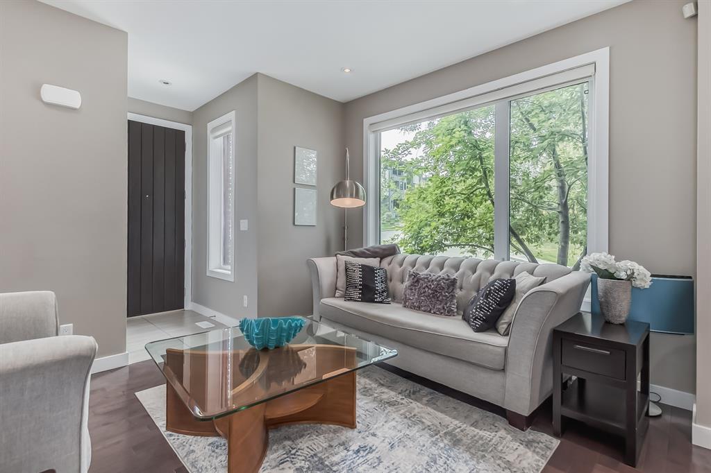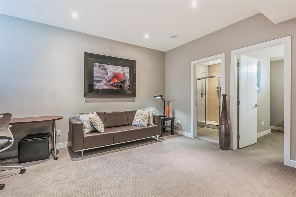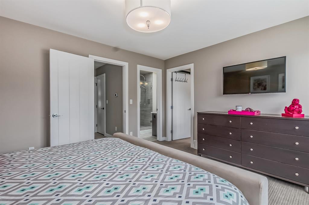 3 Bedroom (2+1), 3.5 bath --SUNNY S.W. CORNER END UNIT.-- One of the few executive townhomes with a PRIVATE FENCED SOUYTH YARD (great for FURRY FRIENDS) and private back deck. Almost 1700 ft2 of higher end finishing and development, including: mocha hardwood floors on the main, quartz countertops throughout, glacier blue tile blacksplash, stainless appliances, vaulted flat ceilings, pot lighting & AIR CONDITIONING. Main floor is totally open with a sleek gas fireplace in the living room, large dining area with BRIGHT south window and an Island kitchen (fits 4 bar stools) with gas range and a 2 drawer Fisher & Paykel Dishwasher. 2nd floor has 2 large bedrooms -- each with ensuites. The primary ensuite has heated floors, rain shower & double sinks. Full size, front loading, stacked laundry closet upstairs as well. Fully developed basement with large Family room, 3rd bedroom down and 3pc bath. Single detached garage. If you haven't been down to South Calgary lately --do a double take! cSpace Marda Loop has completely transformed this location. Walking distance to some great coffee shops, Marda Loop Community Association, Tennis courts, public library & community wading Pools. Minutes by car to the 'off leash' dog park, Glenmore Athletic Park, weekend Farmer's market and Marda Loop shopping. Don't forget to visit our 3D TOUR! ***OPEN HOUSE THIS SATURDAY MAY 27TH, 2-4PM*** (id:22211)