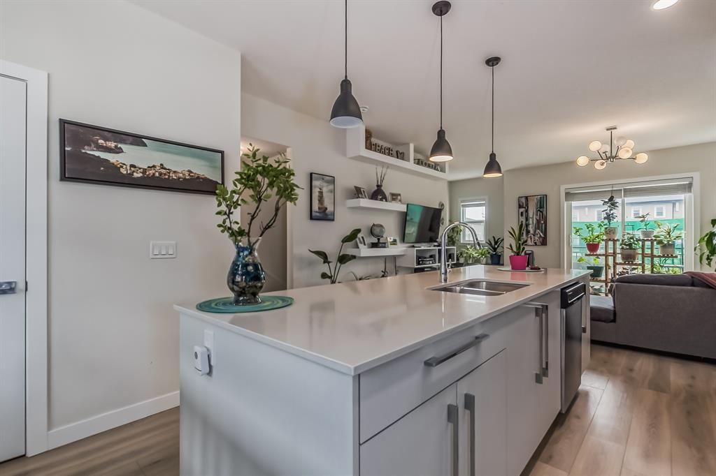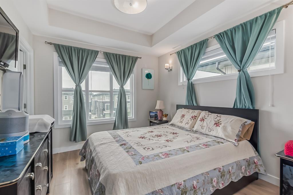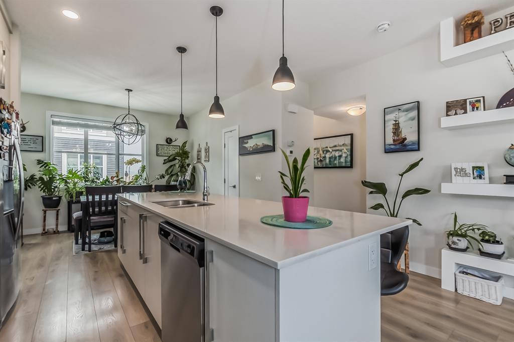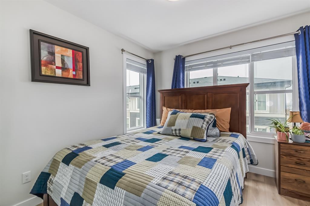 ~~ BACK to Market ~~ TAKE ADVANTAGE of this RARE OPPORTUNITY to own this MODERN and VERY CLEAN " CORNER TOWNHOME " built by Master Builder Truman Homes. With a total of almost 1,450 SQ FT., Comes with " 3 BEDROOMS ' + 2.5 BATHROOMS and a DEN that can turn into another EXTRA BEDROOM. This home deserves a viewing if you are in the market for COMFORTABLE LIVING ! Located in one of Calgary's NEW & DESIRABLE neighborhoods " CORNERSTONE " ! The main floor boasts a SPACIOUS front entrance with beautiful modern flooring, the Den and the HEATED DOUBLE CAR GARAGE ATTACHED with a built in shelving. The 2nd floor has a pleasant functional AESTHETIC SURROUNDED by BIG WINDOWS that gives an abundance of natural lighting and OPEN CONCEPT layout complimented by BEAUTIFUL FLOORINGS and 9' CEILINGS offering a feeling of SPACIOUSNESS. The Kitchen has everything you would expect in a home of this CALIBER, Offers: BRIGHT and MODERN CABINETS, QUARTZ COUNTERTOPS, NEW STAINLESS STEEL APPLIANCES PACKAGE, a Massive island that was designed with entertaining in mind. Adjacent is a GOOD SIZE DINING AREA + A Large Living Room with SLIDING PATIO DOOR that leads to an incredible SOUTH-FACING SPACIOUS balcony to enjoy your summer BBQs. Upstairs offers a large bright master bedroom ensuite that has tiles to the ceiling, easy for cleaning + a good sized walk in closet and a TRAY CEILING. The other 2 bedrooms share the 4 piece bath. Laundry is CONVENIENTLY LOCATED on the upper floor, so you don't need to carry your laundry up and down the stairs. Enjoy a relaxing stroll around the courtyard just outside your front door. Easy access to Stoney Trail and Deerfoot Trail. Close to the airport and Cross Iron Mall. This BEAUTY is truly unlike anything else you can find. BOOK your PRIVATE SHOWING NOW and BRING OFFERS, Before it's gone !!! (id:22211)