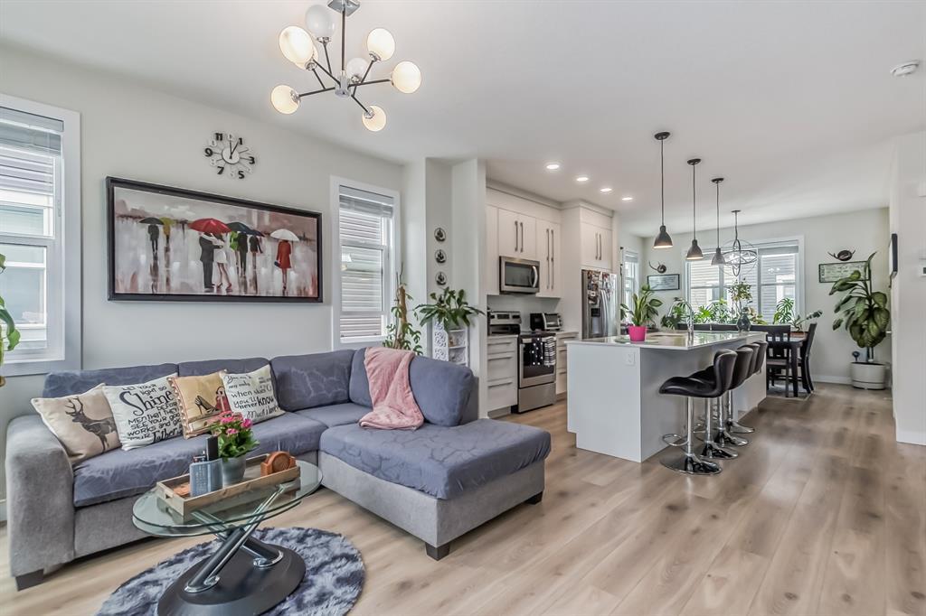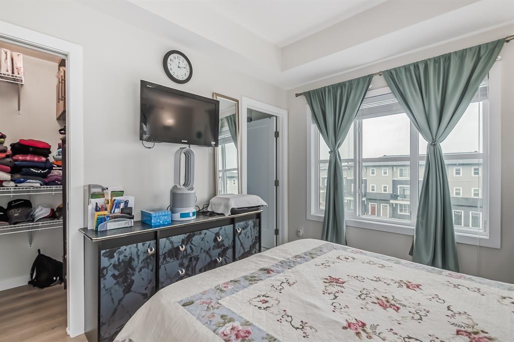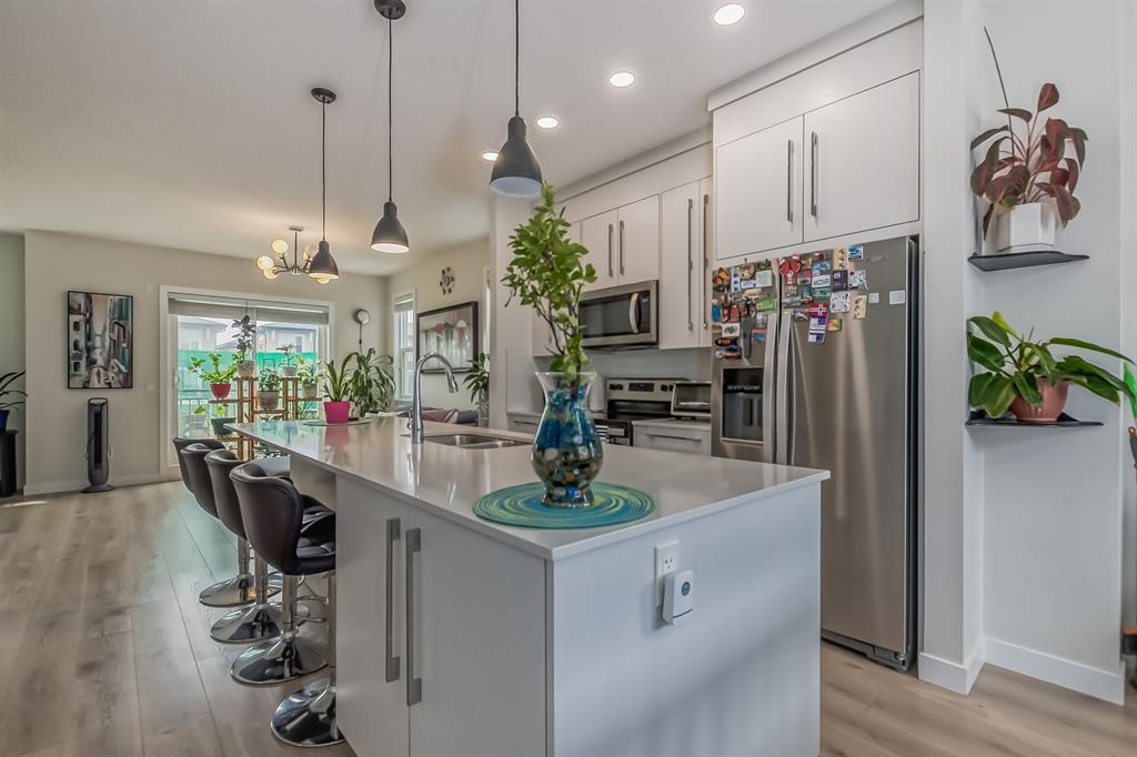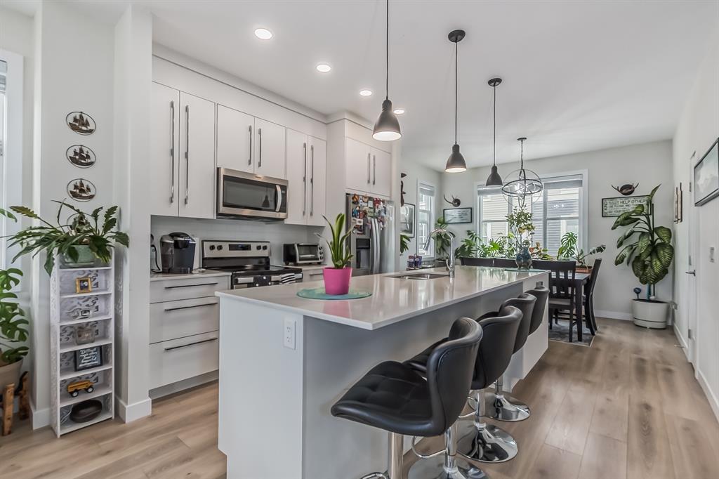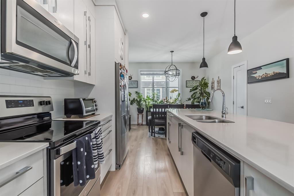 ~~ BACK to Market ~~ TAKE ADVANTAGE of this RARE OPPORTUNITY to own this MODERN and VERY CLEAN " CORNER TOWNHOME " built by Master Builder Truman Homes. With a total of almost 1,450 SQ FT., Comes with " 3 BEDROOMS ' + 2.5 BATHROOMS and a DEN that can turn into another EXTRA BEDROOM. This home deserves a viewing if you are in the market for COMFORTABLE LIVING ! Located in one of Calgary's NEW & DESIRABLE neighborhoods " CORNERSTONE " ! The main floor boasts a SPACIOUS front entrance with beautiful modern flooring, the Den and the HEATED DOUBLE CAR GARAGE ATTACHED with a built in shelving. The 2nd floor has a pleasant functional AESTHETIC SURROUNDED by BIG WINDOWS that gives an abundance of natural lighting and OPEN CONCEPT layout complimented by BEAUTIFUL FLOORINGS and 9' CEILINGS offering a feeling of SPACIOUSNESS. The Kitchen has everything you would expect in a home of this CALIBER, Offers: BRIGHT and MODERN CABINETS, QUARTZ COUNTERTOPS, NEW STAINLESS STEEL APPLIANCES PACKAGE, a Massive island that was designed with entertaining in mind. Adjacent is a GOOD SIZE DINING AREA + A Large Living Room with SLIDING PATIO DOOR that leads to an incredible SOUTH-FACING SPACIOUS balcony to enjoy your summer BBQs. Upstairs offers a large bright master bedroom ensuite that has tiles to the ceiling, easy for cleaning + a good sized walk in closet and a TRAY CEILING. The other 2 bedrooms share the 4 piece bath. Laundry is CONVENIENTLY LOCATED on the upper floor, so you don't need to carry your laundry up and down the stairs. Enjoy a relaxing stroll around the courtyard just outside your front door. Easy access to Stoney Trail and Deerfoot Trail. Close to the airport and Cross Iron Mall. This BEAUTY is truly unlike anything else you can find. BOOK your PRIVATE SHOWING NOW and BRING OFFERS, Before it's gone !!! (id:22211)