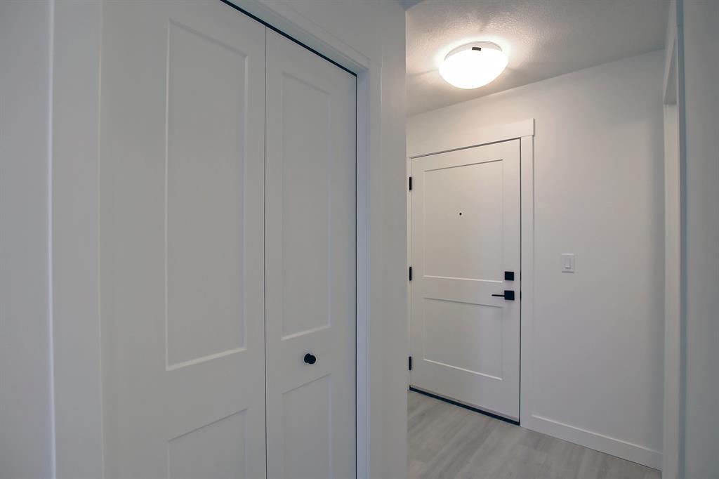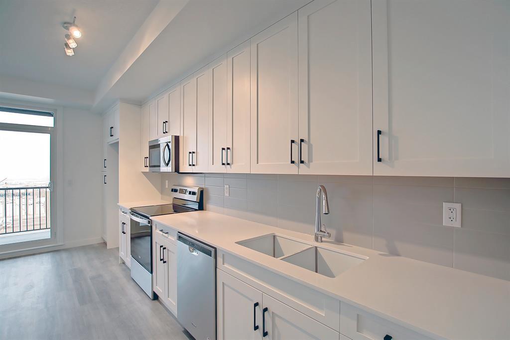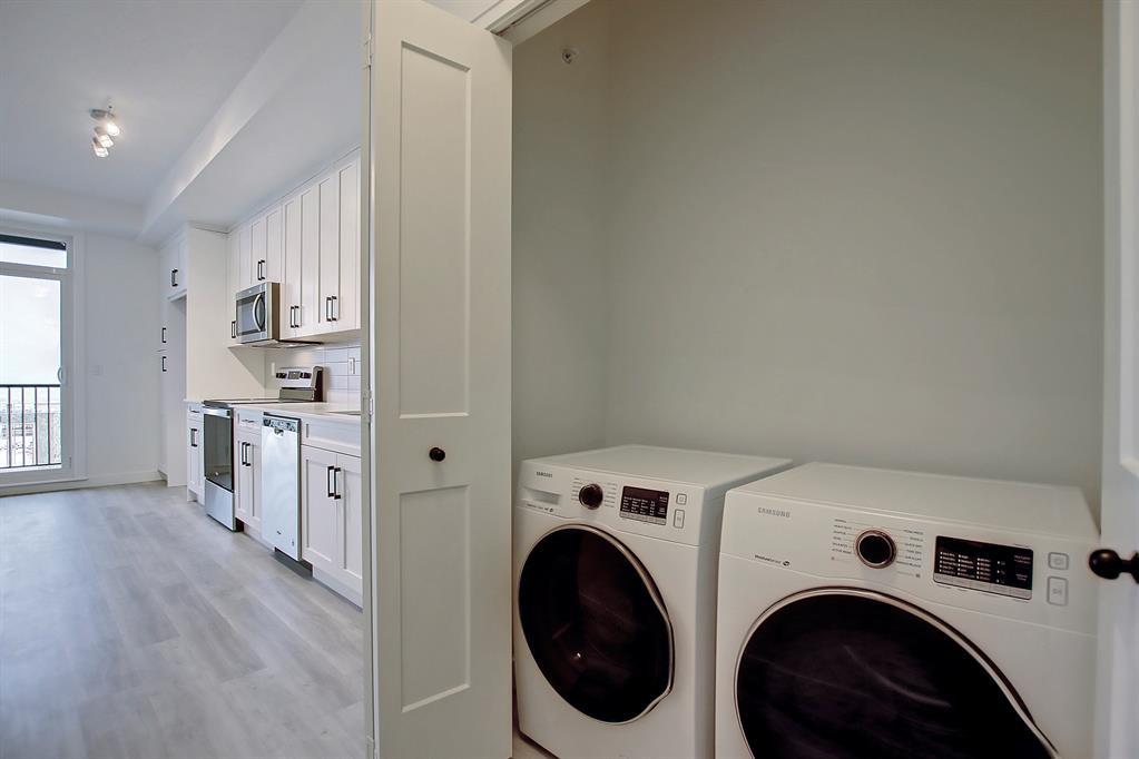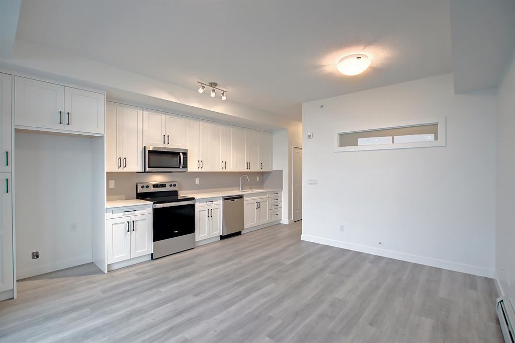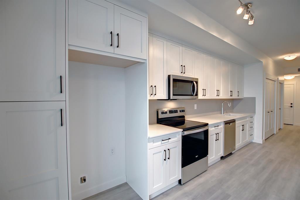 The Carr2, 543 Sq.Ft. (Builder size) - This one bed, one bath suite is an excellent opportunity for those seeking a cozy and modern living space. Featuring 9' knockdown ceilings, this unit boasts a large balcony with glass railings that face south, allowing plenty of natural light into the living area. Inside, you will find a range of high-quality finishes, including quartz countertops in the kitchen and bathroom, modern shaker-style or high-pressure laminate slab-style cabinets, luxury vinyl plank floors in the kitchen, entry, bathroom, and laundry, and upgraded casing, door headers, and baseboards. The stainless steel Samsung kitchen appliances, including a smooth cook-top range, counter-depth fridge with ice maker, dishwasher, and over-the-range microwave hood fan, add a touch of elegance and convenience to the living space. The unit also includes a heat-recovery-ventilator and in-suite side by side washer/dryer. One titled surface parking spot is included with this unit. The estimated possession time is between late spring and early summer of 2023. Logel Homes, has won numerous awards for its exceptional customer experience, making this unit a great option for those seeking quality, comfort, and convenience. (id:22211)