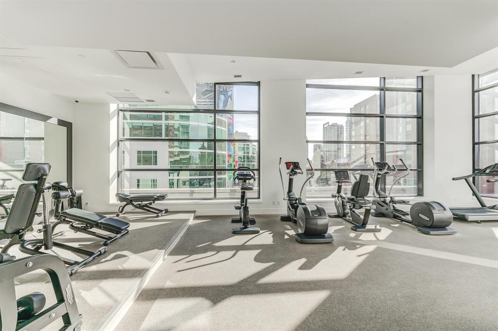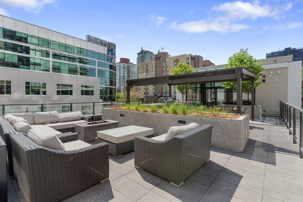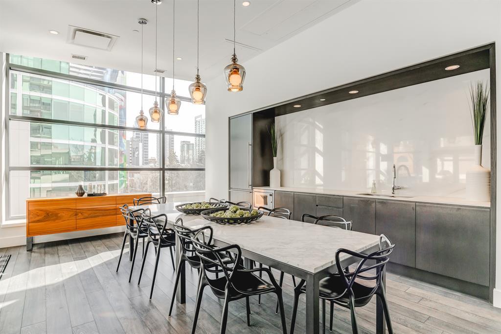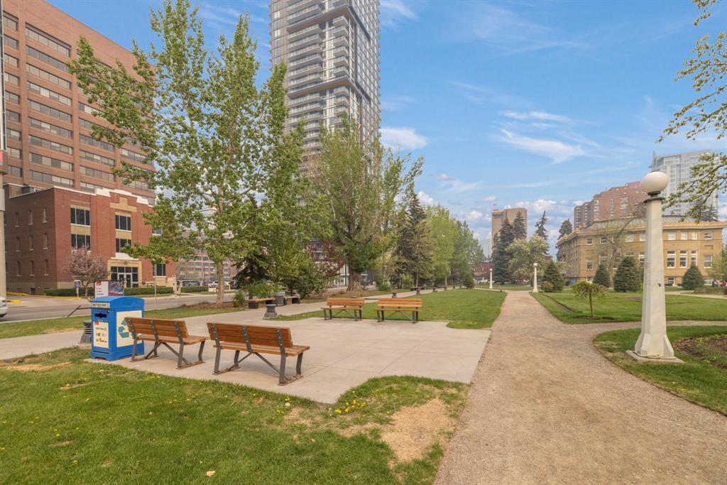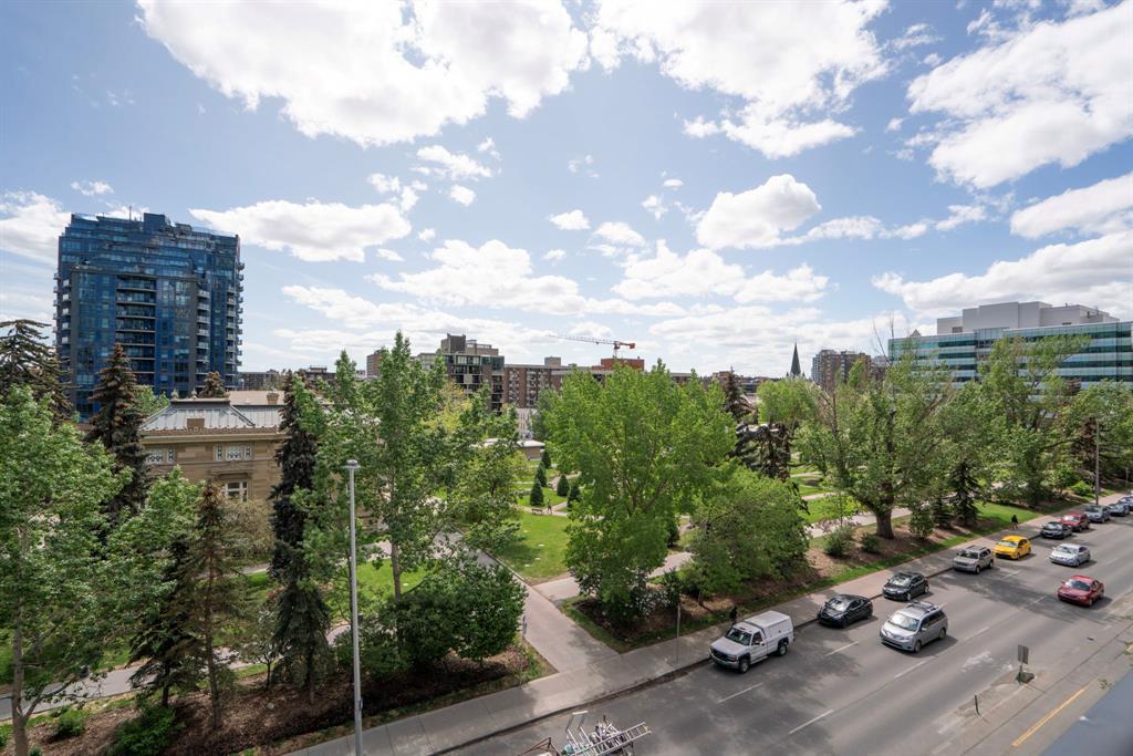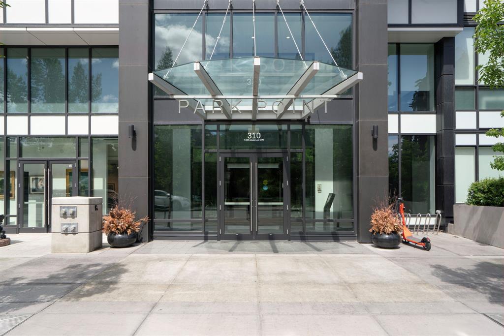 Welcome to Park Point, one of Calgary’s premiere luxury buildings. Located in the popular Beltline area, across from historic Central Memorial Park, right in the heart of Calgary’s restaurant and entertainment district! This sophisticated south facing, 5th floor corner unit boasts 2 spacious bedrooms, 2 full bathrooms PLUS a den and is elegantly appointed with striking neutral tones and quality finishing throughout. The expansive floor to ceiling south facing windows flood the home with natural light. The huge balcony offers sweeping views of Central Memorial Park and has plenty of room to entertain. Incredible chefs kitchen features integrated appliances including dual refrigerators, sleek cabinetry, granite countertops, full slab backsplash, large island and separate beverage center. An amazing layout with central gathering space which divide the bedrooms into their own areas, providing added privacy. The sizeable owner’s suite has a fantastic walk-through closet into the luxurious 3-pce ensuite appointed with glass and tiled oversized shower & marble vanity. The private den is perfectly located, surrounded by windows and overlooking the balcony. 9’ ceilings, wide plank flooring, high end fixtures, Italian marble-topped vanities & custom tile floors in both bathrooms, laundry closet, underground parking stall and separate storage locker, complete this incredible home. Park Point is an amazing development for those seeking a luxurious yet laid-back lifestyle with everything you need in one central location including: a comfortable and beautifully furnished owner's lounge with a kitchen & fireplace for entertaining, fully furnished guest suite, 24-hour concierge service, bike storage, a wash area (for your car, bike or pet), Zen terrace with water feature, social lounge with fire pit and BBQ, fitness facility, yoga studio, sauna and steam room. All located within minutes to the Elbow River pathways, tennis & pickleball courts, extensive choice of restaurants & bouti que shopping on 17th Avenue, and across from the Calgary Public Library this home has exactly what you’ve been waiting for and more! (id:22211)