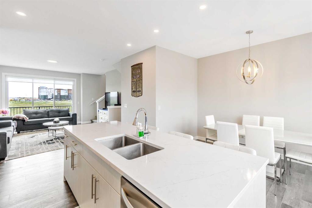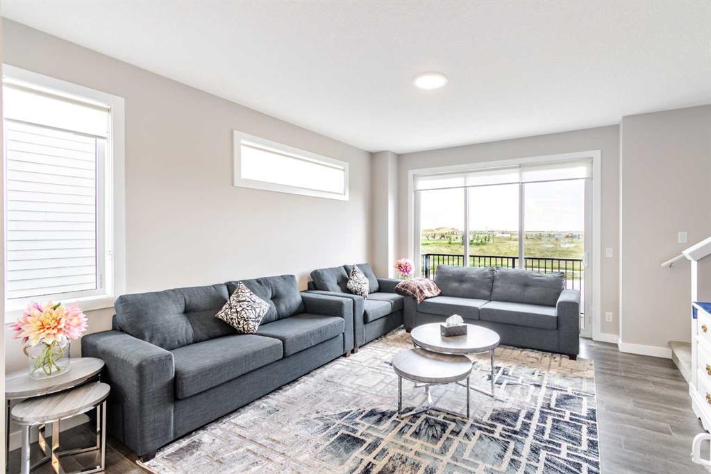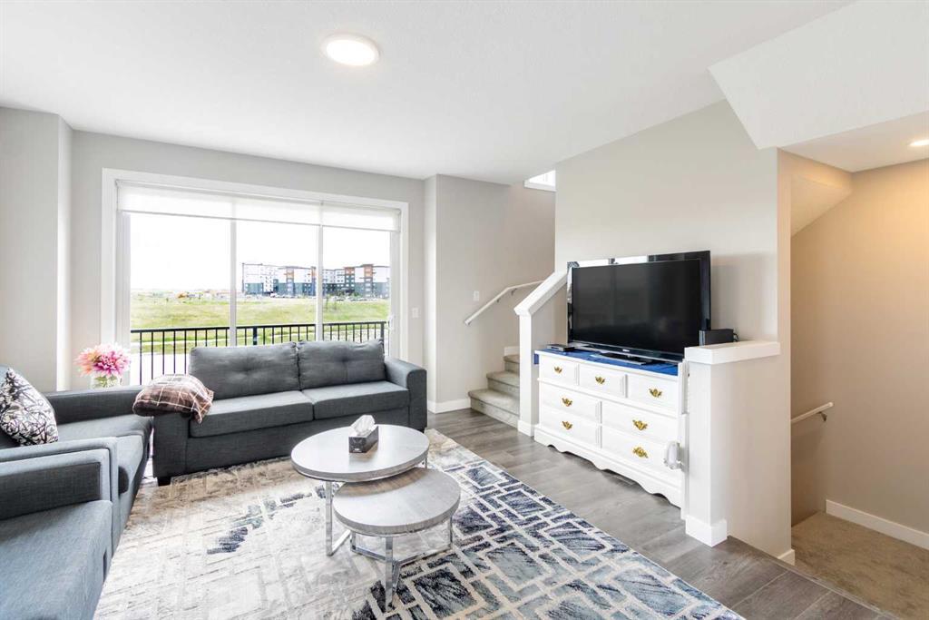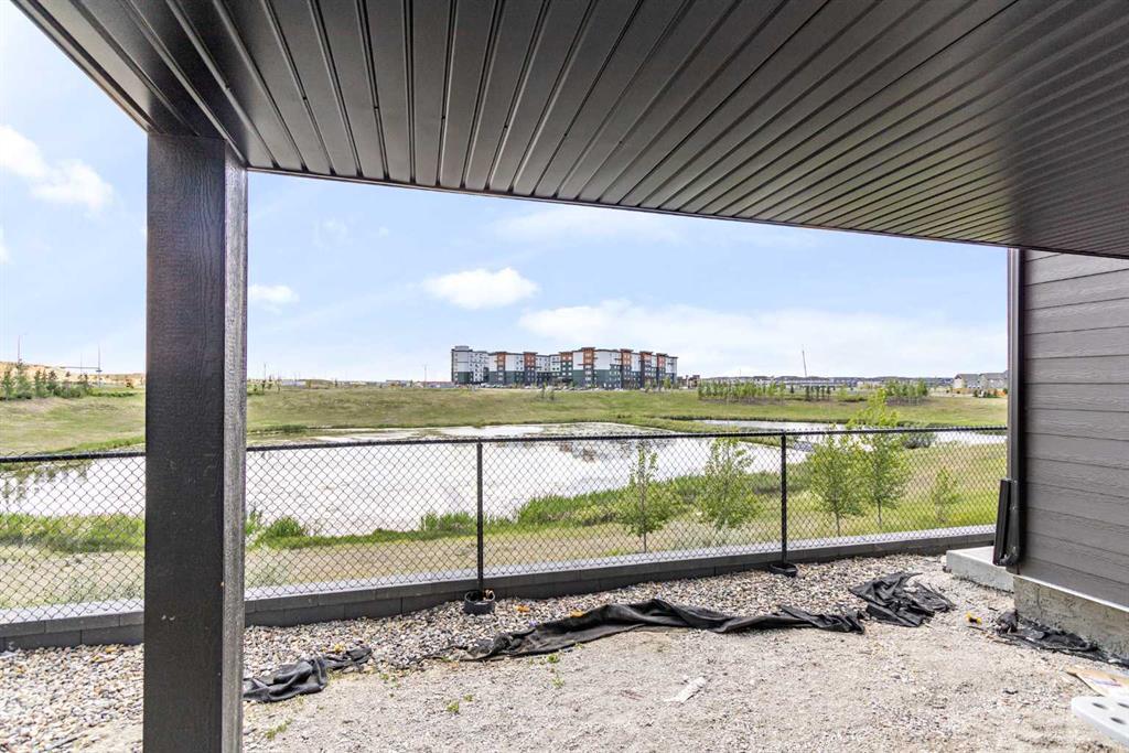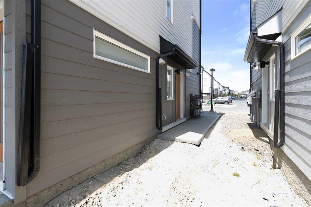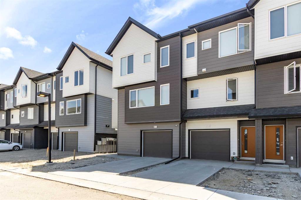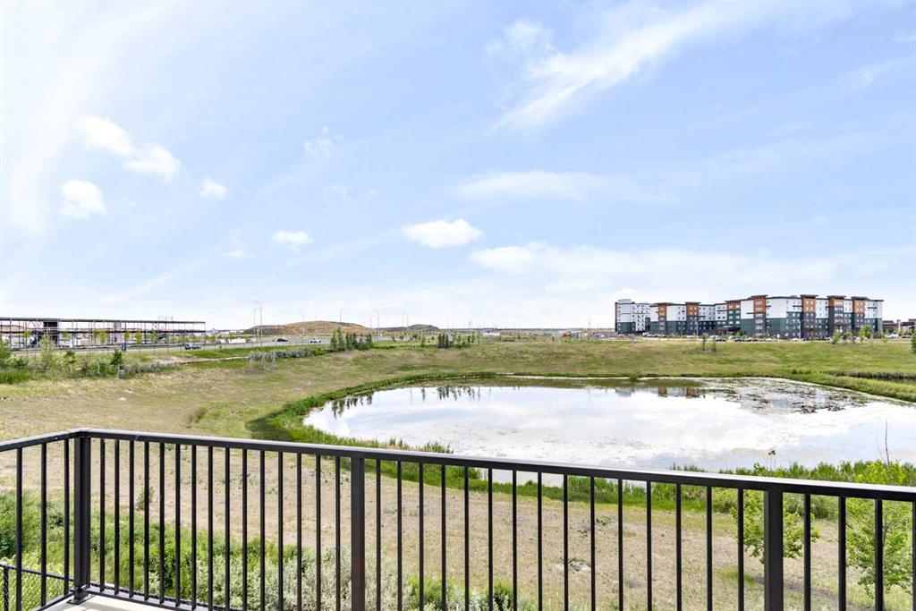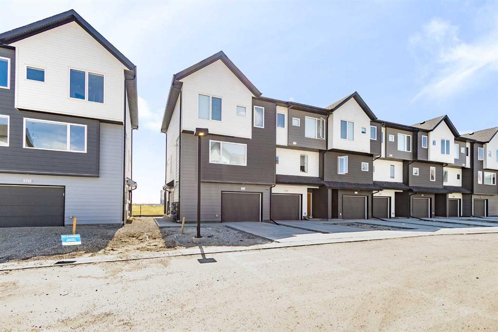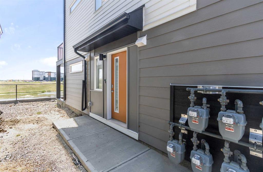 BACK ON MARKET DUE TO FINANCING. Welcome to Skyview Ranch! This stunning CORNER END UNIT TOWNHOUSE built by Partner's Home very famous " Tahoe model", a 3-storey townhome, With 3 bedrooms, 2.5 bathrooms, and low condo fees, this property has everything you need for comfortable living.As you step into the main floor, you'll immediately appreciate the open concept floor plan with 9' ceilings, creating a spacious and airy atmosphere. The large bright windows flood the living area with natural light, illuminating the beautiful laminate flooring throughout. The upgraded kitchen is a chef's delight, featuring stainless steel appliances and quartz countertops.The living room seamlessly flows onto a generous south-facing 18' wide balcony, perfect for relaxing and entertaining. The balcony and patio comes with a convenient BBQ gas rough-in and overlooks a fenced yard that backs onto a serene pond and green space, providing a tranquil retreat.The ground floor of this townhome offers an oversized single garage that leads to a large game/rec room. This versatile space can be tailored to your needs, whether it be a gaming area, home gym, or a cozy recreational space for the whole family to enjoy.On the upper floor, you'll find the primary bedroom complete with double closets and a private 4-piece ensuite. Two additional bedrooms and another full bathroom provide ample space for family members or guests. The convenience of upper floor laundry adds a practical touch to everyday living.This home is adorned with tasteful interior appointments such as kitchen and bathroom quartz countertops, tile flooring in the entry level, bathroom, and laundry areas. The inclusion of a white stacker washer/dryer, pot lights with elegant fixtures, and blind window coverings adds both style and convenience to your living space.The exterior features cement fibre board siding, ensuring durability and a visually appealing facade. The quiet wall system contributes to a peaceful living en vironment. Additional features include an HRV (heat recovery ventilation) system and an on-demand hot water tank paired with an IBC Air Handler, promoting energy efficiency. Furthermore, there is a rough-in for future air conditioning, offering potential for enhanced climate control.Located within walking distance of a future LRT station, this home offers excellent connectivity to transportation networks. Multiple schools and shopping options are nearby, making daily errands a breeze. For outdoor recreation, there's a playground conveniently situated across the street.The RMS measurement of this townhome is 1431.45 sq. ft., Don't miss this opportunity to own a brand new, thoughtfully designed townhome in the desirable community of Skyview Ranch. (id:22211)