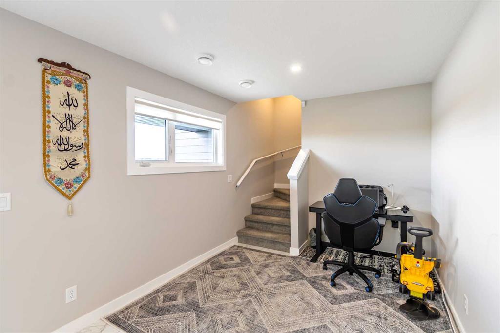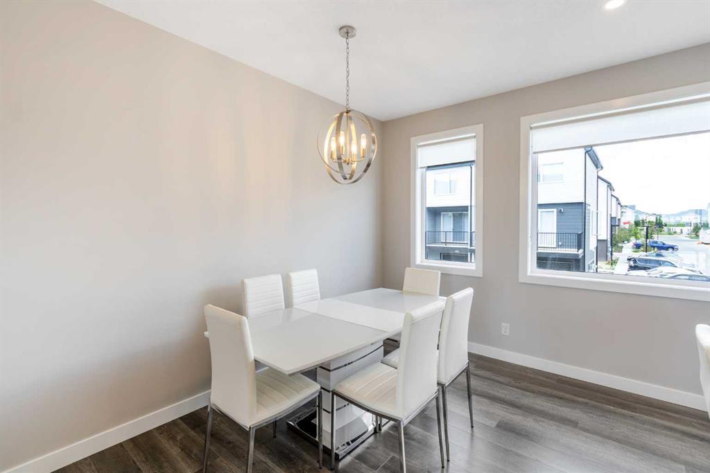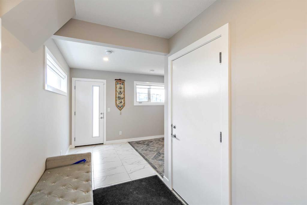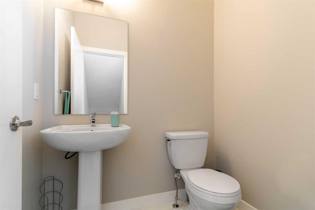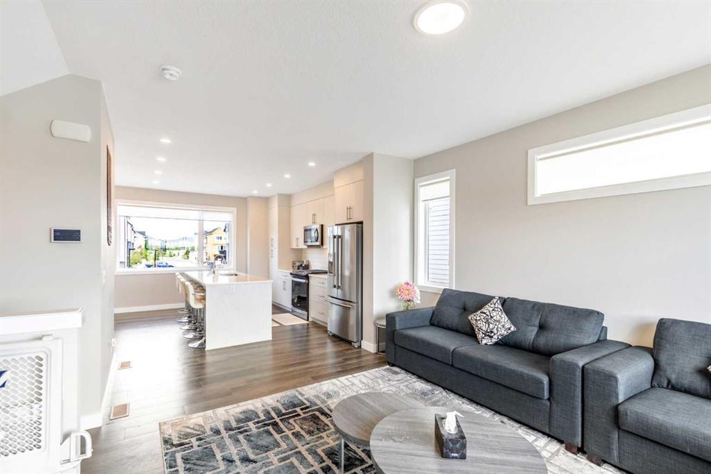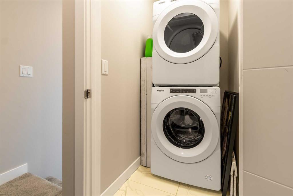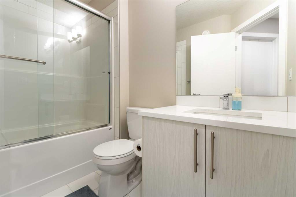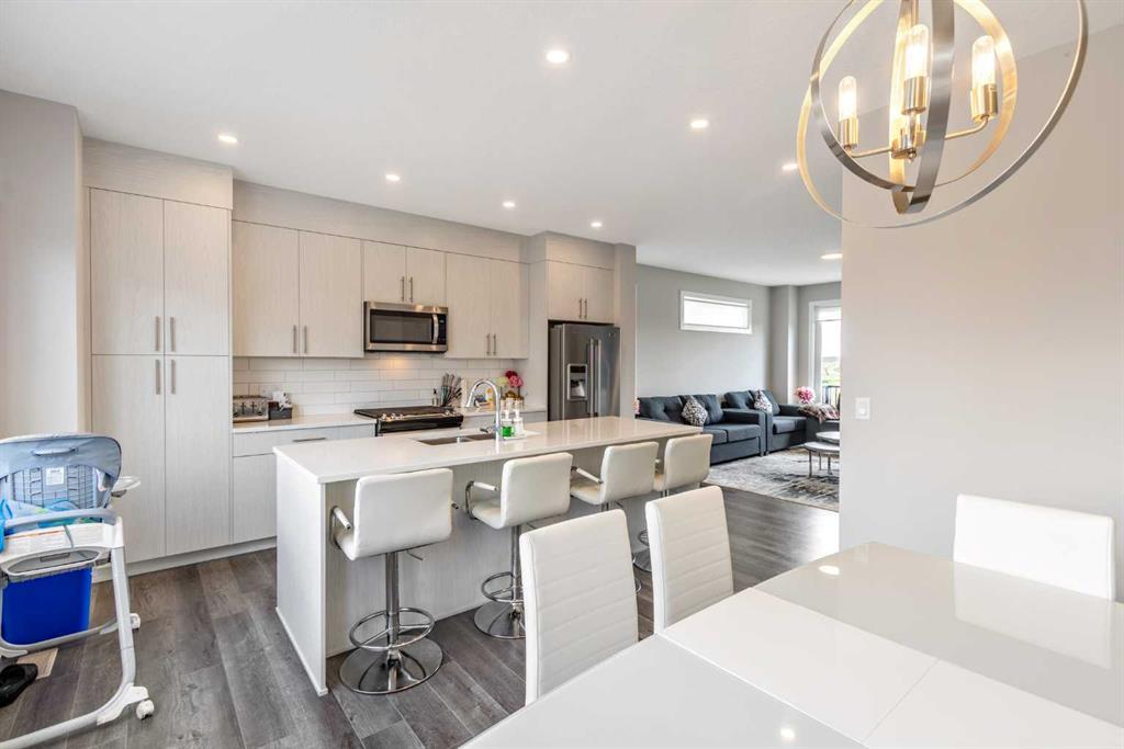 BACK ON MARKET DUE TO FINANCING. Welcome to Skyview Ranch! This stunning CORNER END UNIT TOWNHOUSE built by Partner's Home very famous " Tahoe model", a 3-storey townhome, With 3 bedrooms, 2.5 bathrooms, and low condo fees, this property has everything you need for comfortable living.As you step into the main floor, you'll immediately appreciate the open concept floor plan with 9' ceilings, creating a spacious and airy atmosphere. The large bright windows flood the living area with natural light, illuminating the beautiful laminate flooring throughout. The upgraded kitchen is a chef's delight, featuring stainless steel appliances and quartz countertops.The living room seamlessly flows onto a generous south-facing 18' wide balcony, perfect for relaxing and entertaining. The balcony and patio comes with a convenient BBQ gas rough-in and overlooks a fenced yard that backs onto a serene pond and green space, providing a tranquil retreat.The ground floor of this townhome offers an oversized single garage that leads to a large game/rec room. This versatile space can be tailored to your needs, whether it be a gaming area, home gym, or a cozy recreational space for the whole family to enjoy.On the upper floor, you'll find the primary bedroom complete with double closets and a private 4-piece ensuite. Two additional bedrooms and another full bathroom provide ample space for family members or guests. The convenience of upper floor laundry adds a practical touch to everyday living.This home is adorned with tasteful interior appointments such as kitchen and bathroom quartz countertops, tile flooring in the entry level, bathroom, and laundry areas. The inclusion of a white stacker washer/dryer, pot lights with elegant fixtures, and blind window coverings adds both style and convenience to your living space.The exterior features cement fibre board siding, ensuring durability and a visually appealing facade. The quiet wall system contributes to a peaceful living en vironment. Additional features include an HRV (heat recovery ventilation) system and an on-demand hot water tank paired with an IBC Air Handler, promoting energy efficiency. Furthermore, there is a rough-in for future air conditioning, offering potential for enhanced climate control.Located within walking distance of a future LRT station, this home offers excellent connectivity to transportation networks. Multiple schools and shopping options are nearby, making daily errands a breeze. For outdoor recreation, there's a playground conveniently situated across the street.The RMS measurement of this townhome is 1431.45 sq. ft., Don't miss this opportunity to own a brand new, thoughtfully designed townhome in the desirable community of Skyview Ranch. (id:22211)
