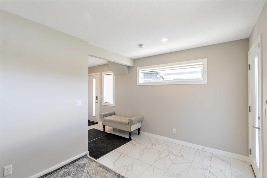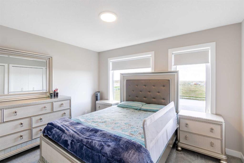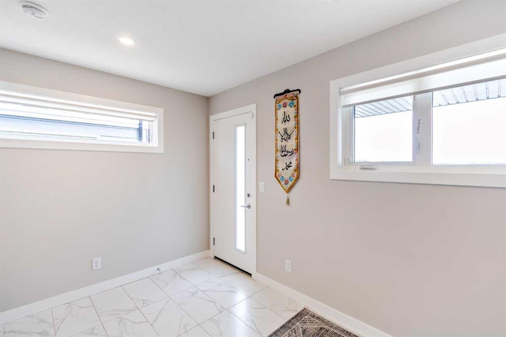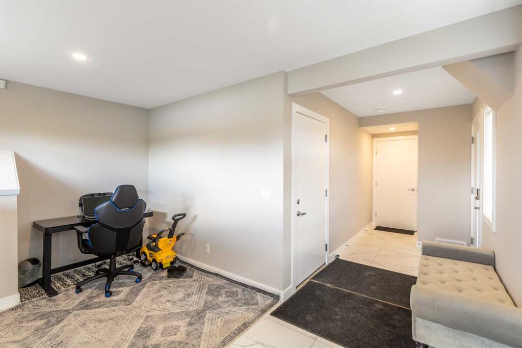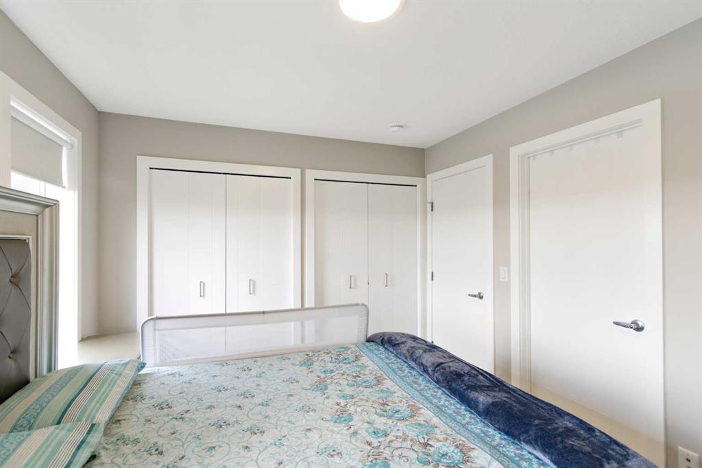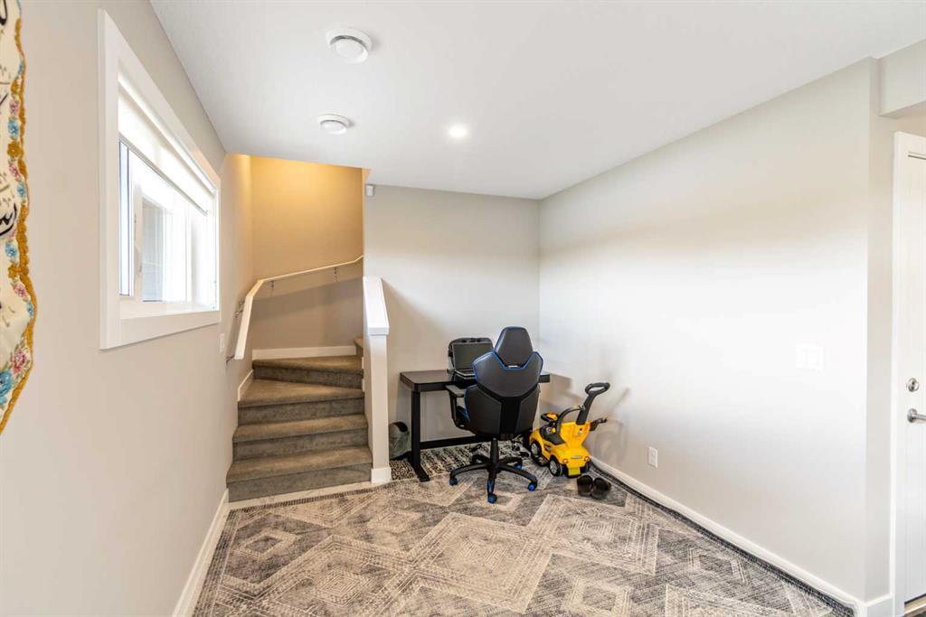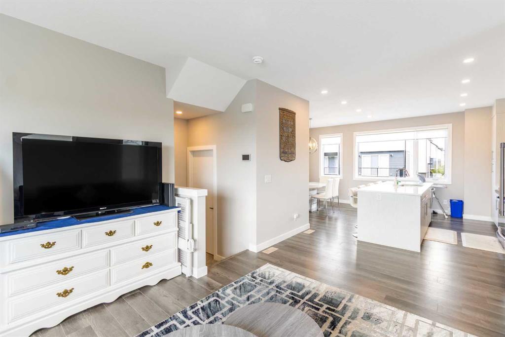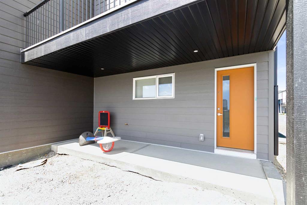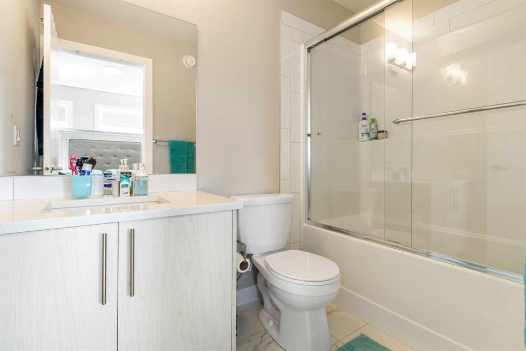 BACK ON MARKET DUE TO FINANCING. Welcome to Skyview Ranch! This stunning CORNER END UNIT TOWNHOUSE built by Partner's Home very famous " Tahoe model", a 3-storey townhome, With 3 bedrooms, 2.5 bathrooms, and low condo fees, this property has everything you need for comfortable living.As you step into the main floor, you'll immediately appreciate the open concept floor plan with 9' ceilings, creating a spacious and airy atmosphere. The large bright windows flood the living area with natural light, illuminating the beautiful laminate flooring throughout. The upgraded kitchen is a chef's delight, featuring stainless steel appliances and quartz countertops.The living room seamlessly flows onto a generous south-facing 18' wide balcony, perfect for relaxing and entertaining. The balcony and patio comes with a convenient BBQ gas rough-in and overlooks a fenced yard that backs onto a serene pond and green space, providing a tranquil retreat.The ground floor of this townhome offers an oversized single garage that leads to a large game/rec room. This versatile space can be tailored to your needs, whether it be a gaming area, home gym, or a cozy recreational space for the whole family to enjoy.On the upper floor, you'll find the primary bedroom complete with double closets and a private 4-piece ensuite. Two additional bedrooms and another full bathroom provide ample space for family members or guests. The convenience of upper floor laundry adds a practical touch to everyday living.This home is adorned with tasteful interior appointments such as kitchen and bathroom quartz countertops, tile flooring in the entry level, bathroom, and laundry areas. The inclusion of a white stacker washer/dryer, pot lights with elegant fixtures, and blind window coverings adds both style and convenience to your living space.The exterior features cement fibre board siding, ensuring durability and a visually appealing facade. The quiet wall system contributes to a peaceful living en vironment. Additional features include an HRV (heat recovery ventilation) system and an on-demand hot water tank paired with an IBC Air Handler, promoting energy efficiency. Furthermore, there is a rough-in for future air conditioning, offering potential for enhanced climate control.Located within walking distance of a future LRT station, this home offers excellent connectivity to transportation networks. Multiple schools and shopping options are nearby, making daily errands a breeze. For outdoor recreation, there's a playground conveniently situated across the street.The RMS measurement of this townhome is 1431.45 sq. ft., Don't miss this opportunity to own a brand new, thoughtfully designed townhome in the desirable community of Skyview Ranch. (id:22211)