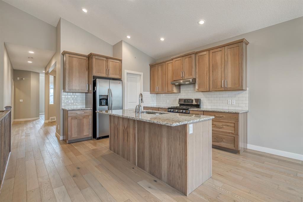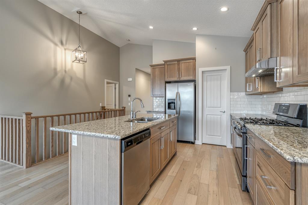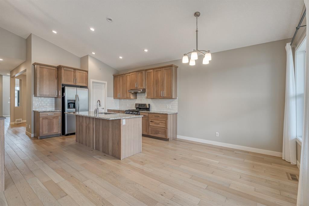 Just minutes to the CTrain, Fish Creek Park and new Stoney Trail, this LIKE NEW Cardel bungalow has many CUSTOM features and almost 3000 sq ft of development! Shawnee Slopes is one of Calgary's most unique master-planned communities in the heart of Fish Creek Park - A mixture of 9 foot ceilings paired with 14' VAULTED ceilings on the main floor creating an airy, sunny, and open concept plan. The Great Room fireplace with stone and tile is the focal point on the main floor along with large windows that offer an abundance of light. Kitchen has GRANITE counters, stainless appliances, walk-in pantry, breakfast nook and a FORMAL dining.... Garden doors lead to a covered and shaded composite deck with the convenience of a natural gas BBQ hook up and The spacious master bedroom has a 5 piece ensuite with dual sinks, granite counters, separate glass shower, and SOAKER tub. The lower level has a large family room, games/workout area, 2 additional bedrooms, and a full 4-piece bath. There is also additional space in the basement which could be converted into a wine cellar or storage room plus AIR CONDITIONING, tankless water heater, irrigation, main floor laundry/mud room off the garage and a nicely landscaped yard too! Call today for your private viewing! (id:22211)