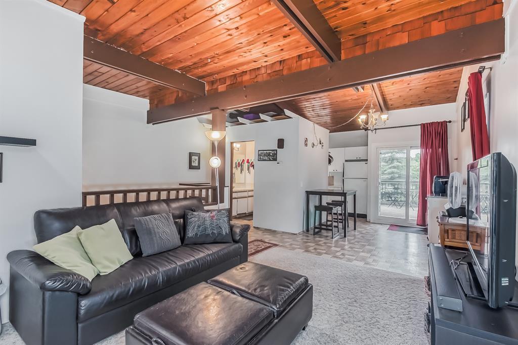 Introducing a charming semi-detached home nestled in the desirable neighborhood of Braeside. This delightful residence showcases rustic charm, highlighted by its captivating open beam wood ceiling. Step inside and be greeted by a welcoming ambiance that exudes comfort and character. The main living area features an open floor plan, allowing for seamless flow between the living room, dining area, kitchen, and backyard patio. This home offers two bedrooms, providing ample space for relaxation and rest. The bedrooms are cozy and inviting, each offering a tranquil retreat at the end of a long day. The shared 4-piece bathroom has plenty of cabinets and room to upgrade the vanity to dual sinks if you choose. Stepping out the back, you will discover the extended deck where you can enjoy summer BBQs. The backyard common space is plenty and taken care of by management so you can spend your free time relaxing. Your assigned parking stall is steps to your front door and plenty of visitor parking in and around the complex. Some upgrades over the past years include newer windows, patio door, front door, deck, tub/shower, and more. This home offers convenience and a strong sense of community. Enjoy easy access to local amenities, parks, schools, and shopping centers, ensuring all your daily needs are within reach. Do not miss the opportunity to make this captivating semi-detached home yours and with a few personal touches the unique charm will be appreciated. Schedule a viewing today and let this property inspire your next chapter whether it is for yourself or an income property. (id:22211)