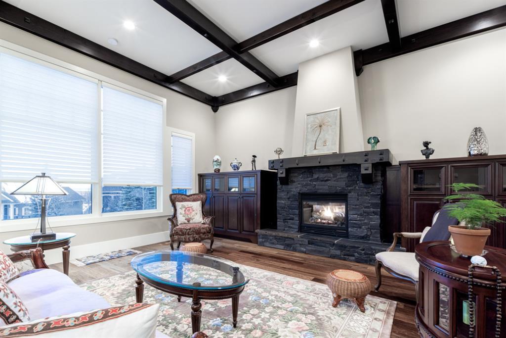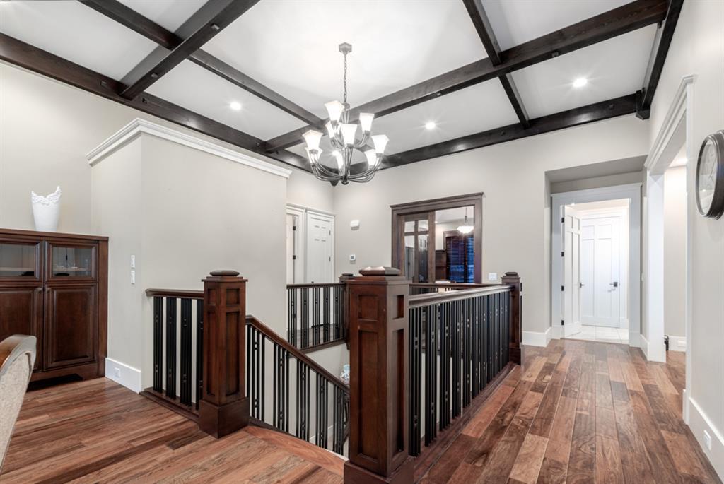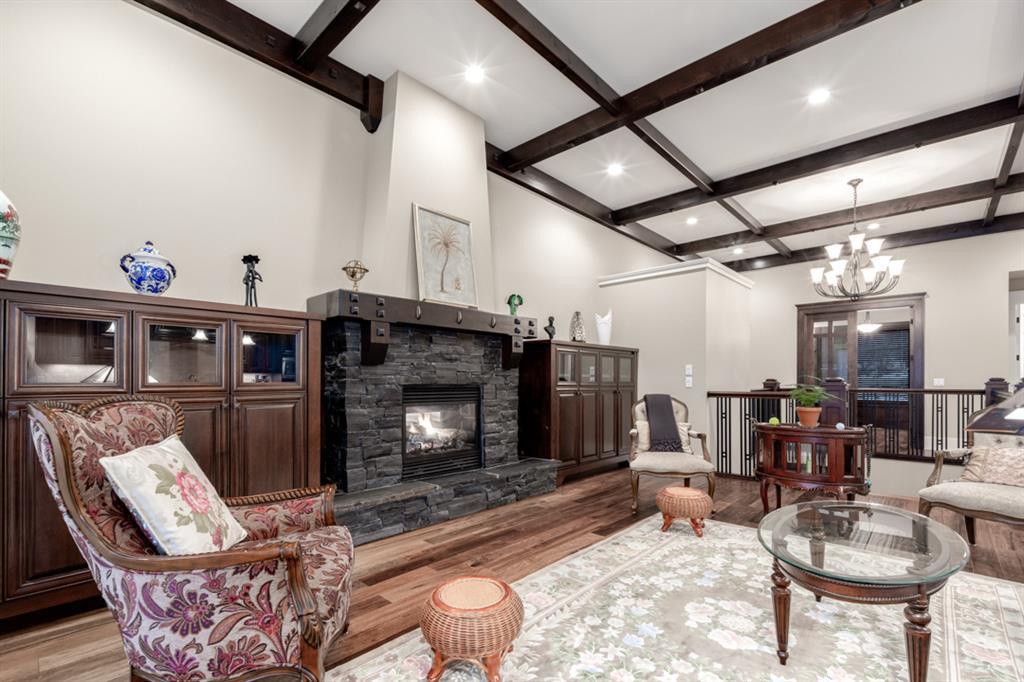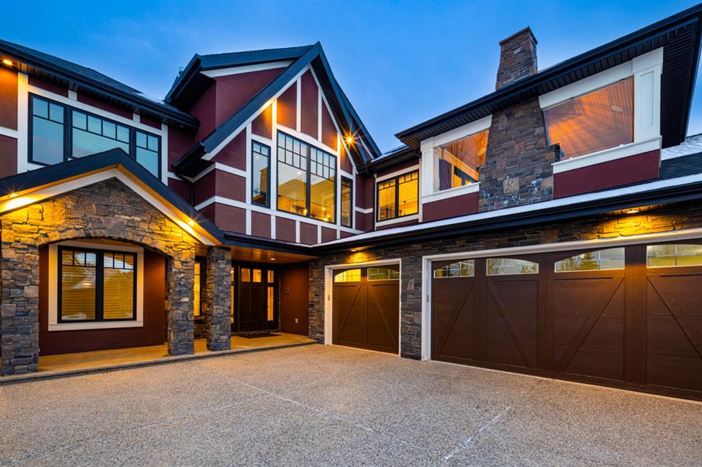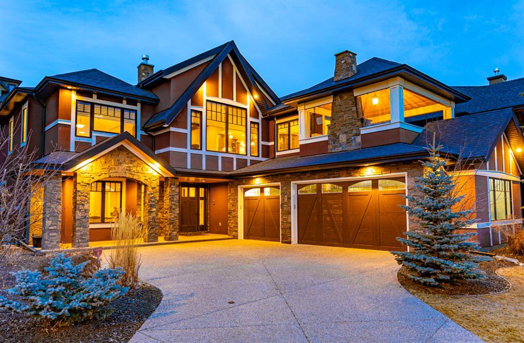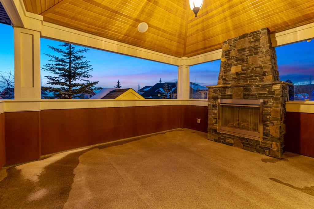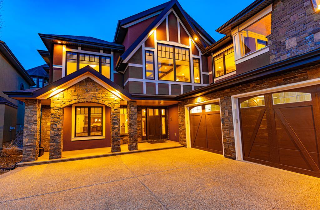 OPEN HOUSE SUNDAY, June 18, 1-2:30pm A sprawling 4300+ sq ft of fully developed living space on 2 levels with an ELEVATOR. Walkout bungalow starts with a side facing, oversized, heated triple attached garage, with barn-style doors, aggregate driveway, and elegant architectural details with stone accents. The impressive walk-out basement level consists of a recreation room with a gas fireplace, rich cherry oak cabinets, and a wet bar complete with a dishwasher, microwave, bar fridge, and pantry. This level also holds three bedrooms, two of which share one Jack & Jill bath, and another has a cheater door to a 4 pc bath, mudroom, storage and entrance to the garage. A grand staircase or a built-in elevator conveniently takes you to the upper level. Light filled second level accentuated by the striking beamed 9 ft ceilings, mahogany wood craftsmanship, and stunning stone fireplace flanked on both sides with built-in cabinets. Gourmet kitchen has rich wood cabinets, granite countertops, huge centre island, integrated refrigerator, dishwasher, and hood fan, 6 burner gas stove, built-in oven and microwave, wine fridge, and a walk-through pantry. A formal dining room, breakfast nook, double french doors to the den/office, and the primary bedroom quarters at the far back of the house. Your private owner’s retreat begins with a spacious bedroom and a tranquil sitting area in front of a gas double sided fireplace, and vaulted ceilings. Set on the other side of a hallway, is your 5 pc ensuite and walk-in closet. Bonus features include central air conditioning, ample storage, a total of 3 fireplaces inside and one outdoor, all on a west facing front home. Enjoy endless summers on the covered balcony with magnificent Rocky mountain views to the west and a cozy outdoor fireplace, gas BBQ hookup is a bonus! The location is home to some of the best and most prestigious schools in Calgary. Your shopping experience amplified with shops at Signal Hill, West Hills Towne Centre, and Aspen Landing. Easy access to Hwy 201 and Sarcee Trail, you are only a short drive to your weekend destination. (id:22211)