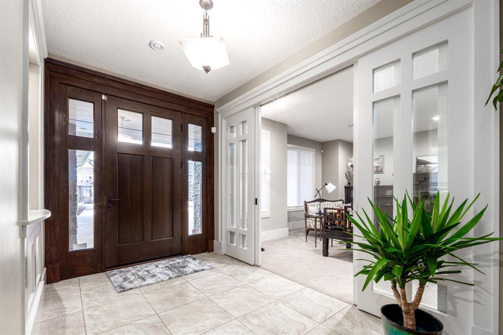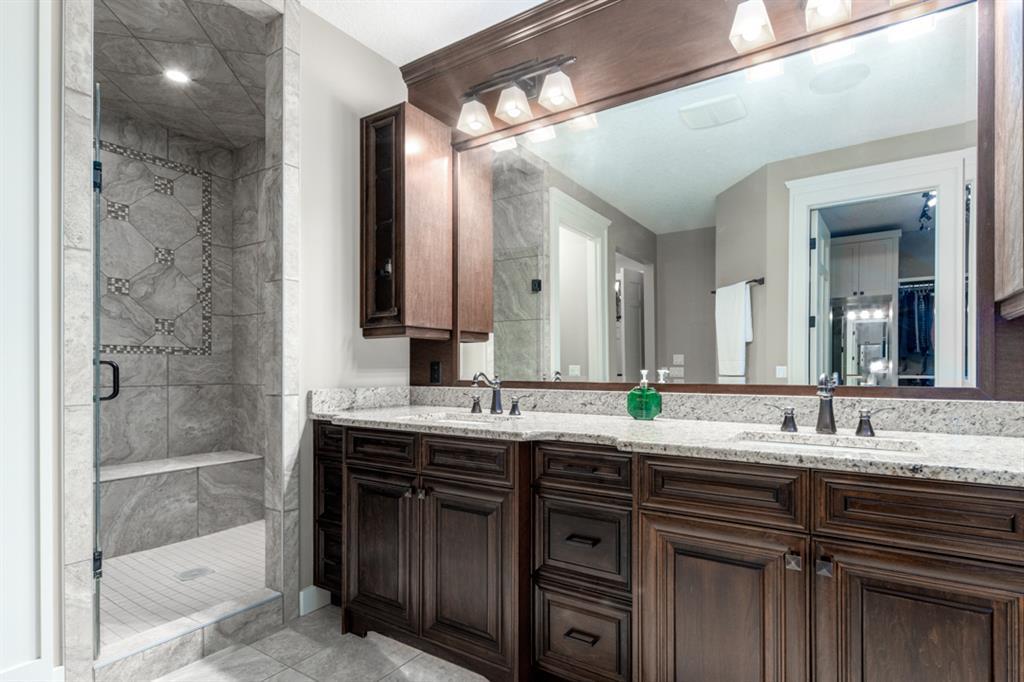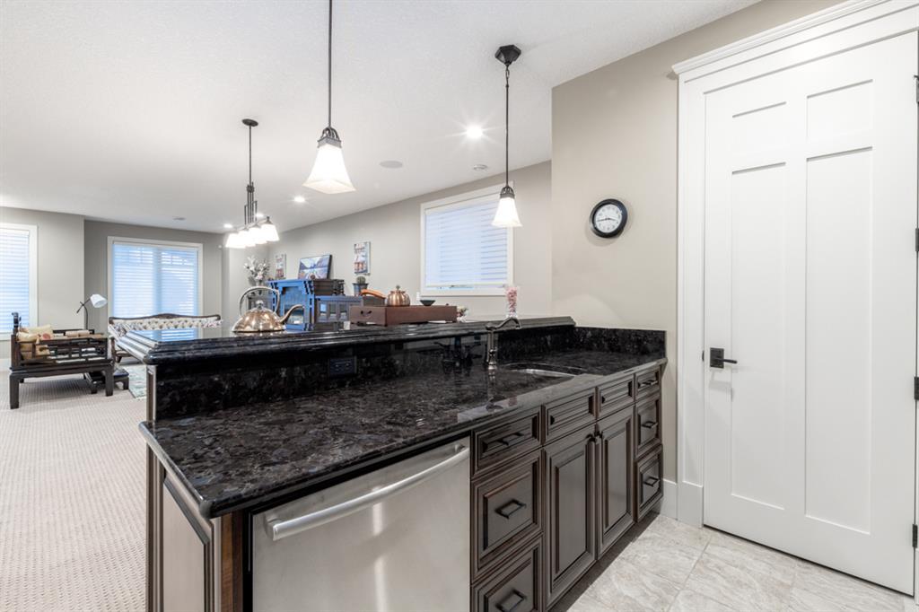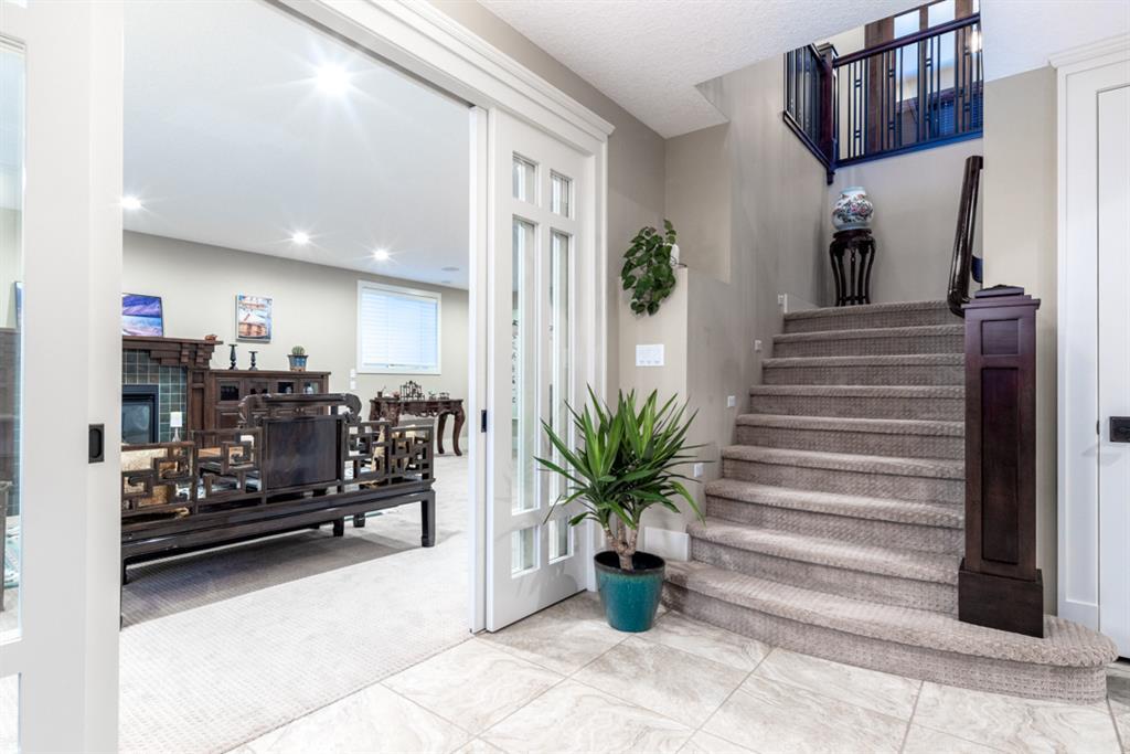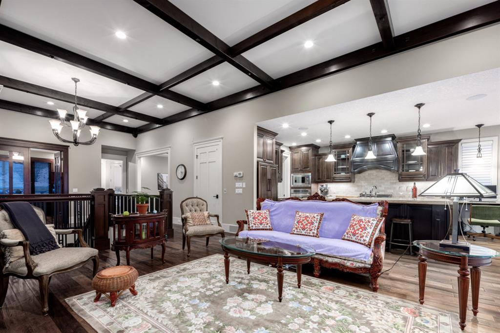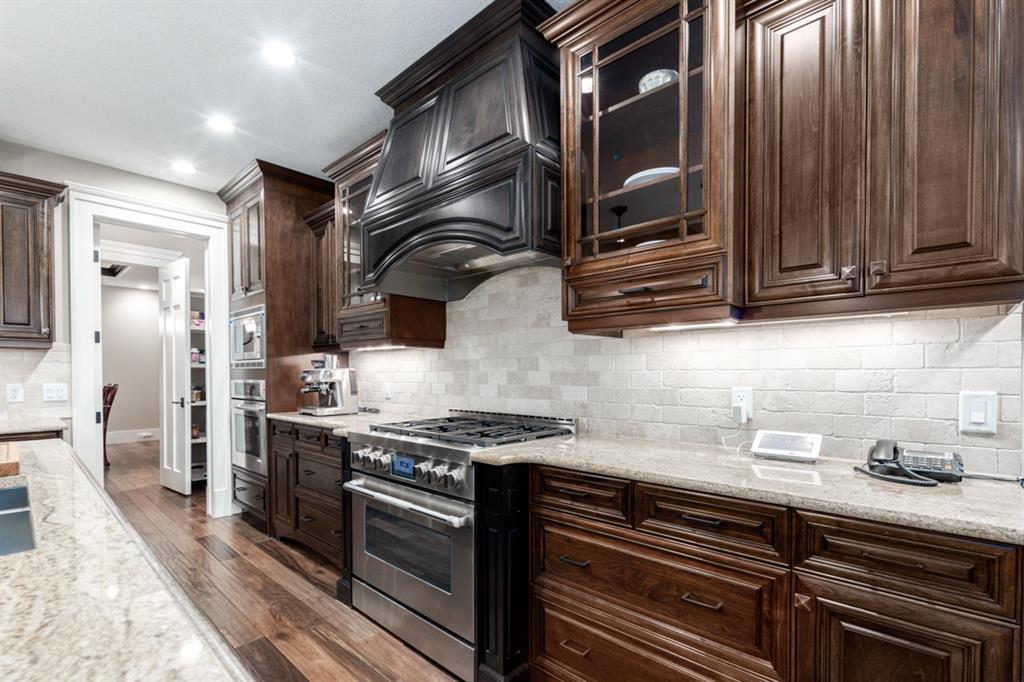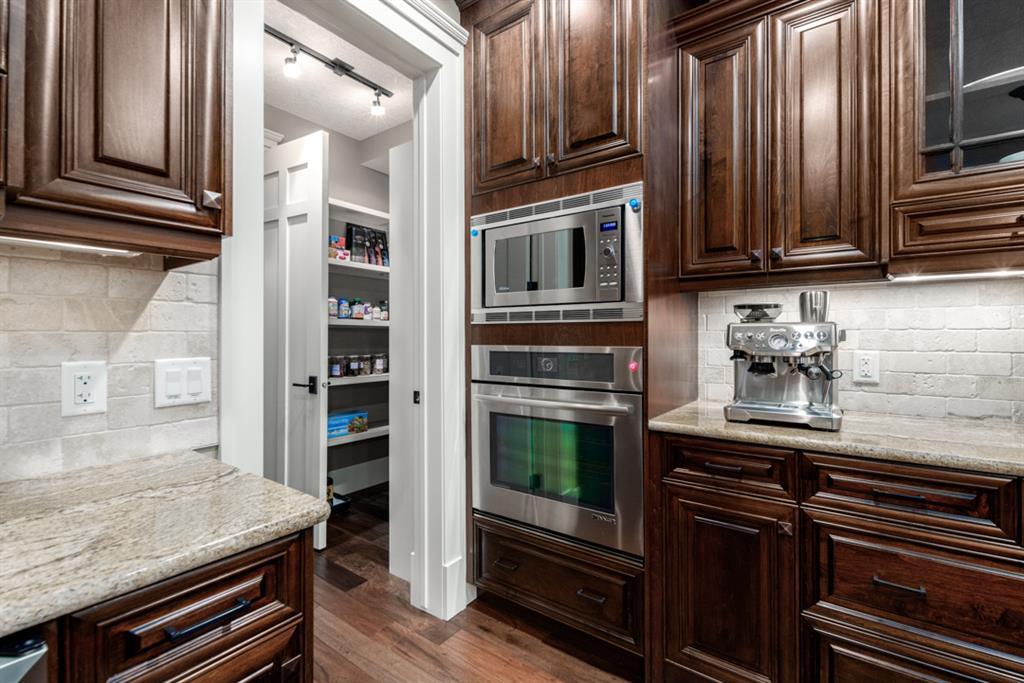 OPEN HOUSE SUNDAY, June 18, 1-2:30pm A sprawling 4300+ sq ft of fully developed living space on 2 levels with an ELEVATOR. Walkout bungalow starts with a side facing, oversized, heated triple attached garage, with barn-style doors, aggregate driveway, and elegant architectural details with stone accents. The impressive walk-out basement level consists of a recreation room with a gas fireplace, rich cherry oak cabinets, and a wet bar complete with a dishwasher, microwave, bar fridge, and pantry. This level also holds three bedrooms, two of which share one Jack & Jill bath, and another has a cheater door to a 4 pc bath, mudroom, storage and entrance to the garage. A grand staircase or a built-in elevator conveniently takes you to the upper level. Light filled second level accentuated by the striking beamed 9 ft ceilings, mahogany wood craftsmanship, and stunning stone fireplace flanked on both sides with built-in cabinets. Gourmet kitchen has rich wood cabinets, granite countertops, huge centre island, integrated refrigerator, dishwasher, and hood fan, 6 burner gas stove, built-in oven and microwave, wine fridge, and a walk-through pantry. A formal dining room, breakfast nook, double french doors to the den/office, and the primary bedroom quarters at the far back of the house. Your private owner’s retreat begins with a spacious bedroom and a tranquil sitting area in front of a gas double sided fireplace, and vaulted ceilings. Set on the other side of a hallway, is your 5 pc ensuite and walk-in closet. Bonus features include central air conditioning, ample storage, a total of 3 fireplaces inside and one outdoor, all on a west facing front home. Enjoy endless summers on the covered balcony with magnificent Rocky mountain views to the west and a cozy outdoor fireplace, gas BBQ hookup is a bonus! The location is home to some of the best and most prestigious schools in Calgary. Your shopping experience amplified with shops at Signal Hill, West Hills Towne Centre, and Aspen Landing. Easy access to Hwy 201 and Sarcee Trail, you are only a short drive to your weekend destination. (id:22211)