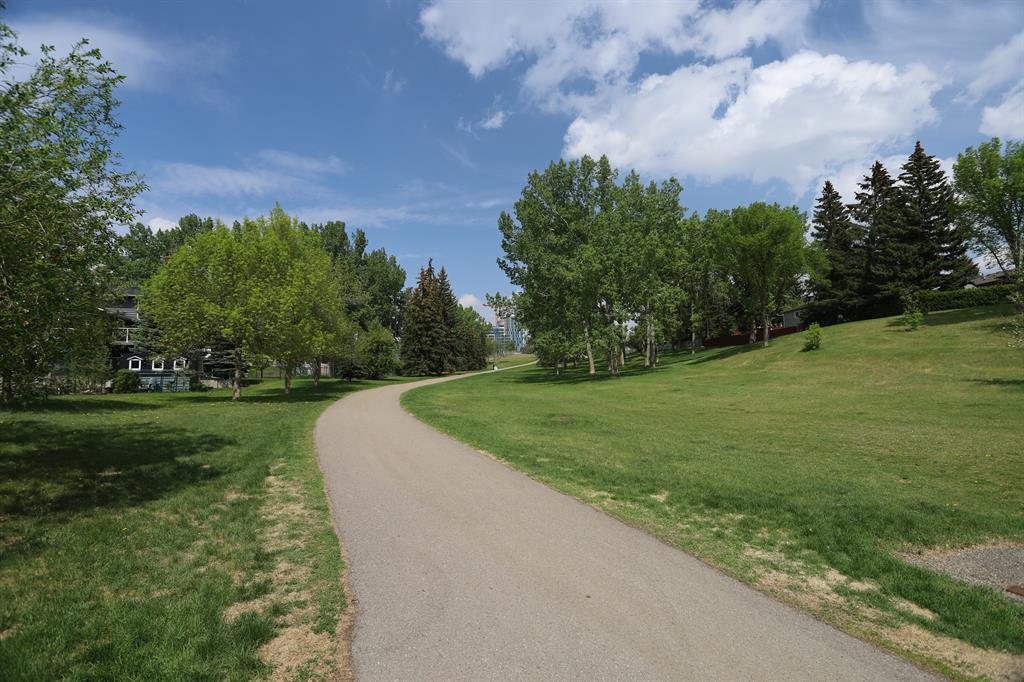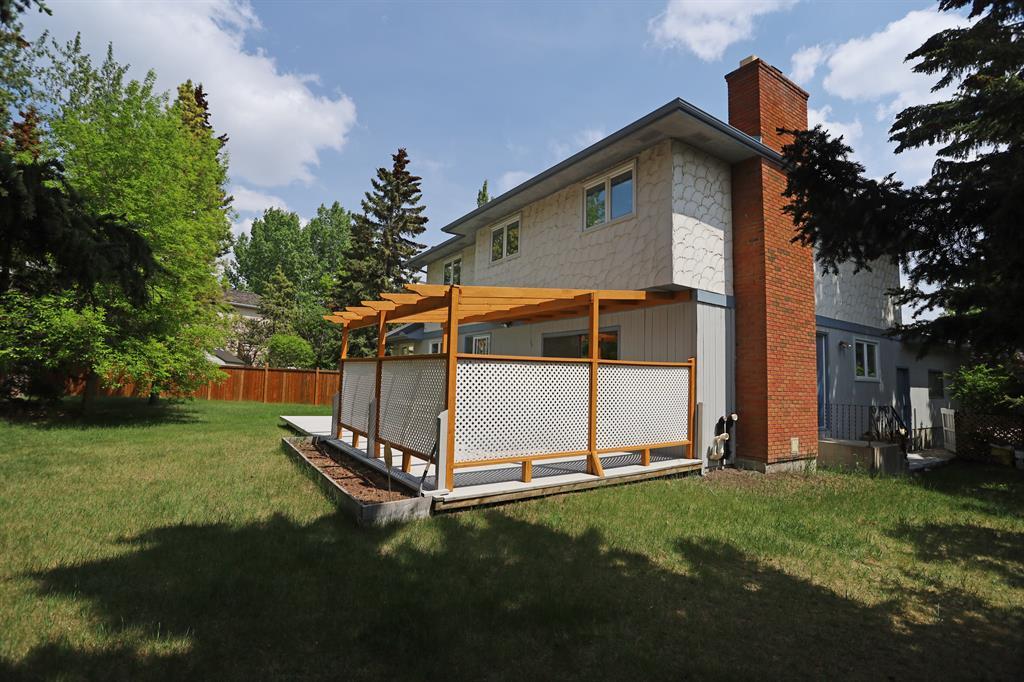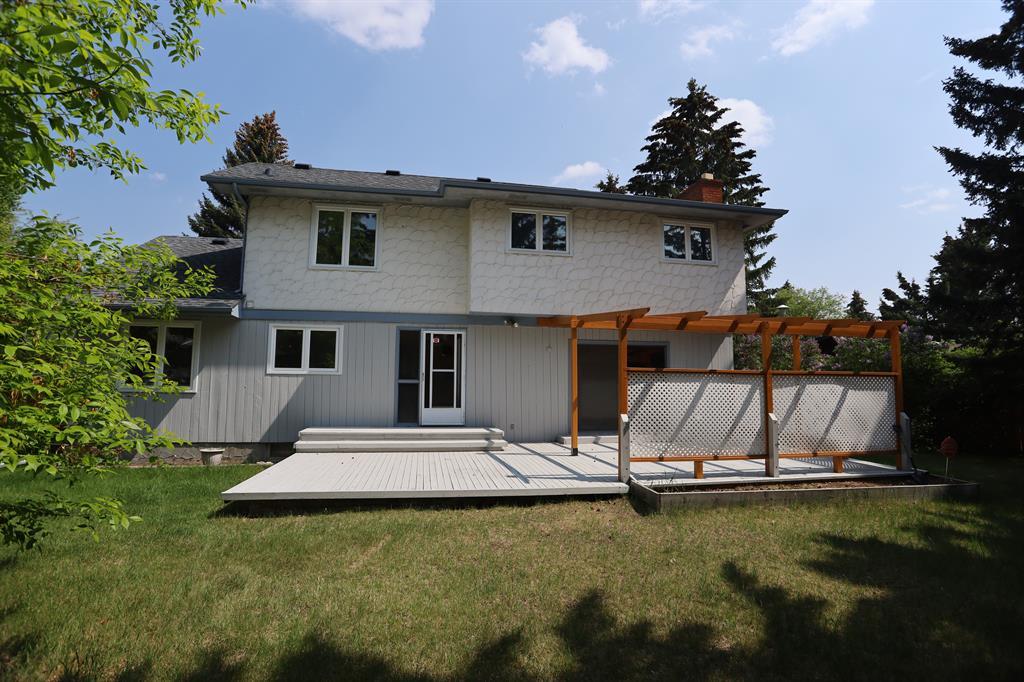 This is your chance to raise your family & make your home in this lovely two storey in one of Northwest Calgary's most desirable communities...welcome to Varsity! Tucked away in this quiet cul-de-sac on this private 1/4 acre pie lot, this fully finished 5 bedroom home enjoys extensive hardwood floors, sunny eat-in kitchen, oversized 2 car garage & sunny West-facing backyard with huge 2-level deck. Wonderful bright & airy floorplan featuring great-sized living room with bow window, leading into the dining room making entertaining & family dinners a breeze. There are lots of cabinets in the kitchen & white/stainless steel appliances including an LG dishwasher. The family room is the perfect place to relax in after a long day, with a wood-burning fireplace & built-in bookcases plus sliding doors to the backyard deck. The main floor den is perfect as your home office & easily doubles as a guest bedroom. Total of 4 bedrooms up highlighted by the master with hardwood floors, walk-in closet & ensuite with shower. The other 3 bedrooms all have large closets & share the family bath which has built-in shelving. Lower level is finished with a 5th bedroom & bathroom with walk-in shower, huge games/rec room plus cold & storage rooms. Main floor laundry has built-in cabinets & front-loading washer & dryer. For your outdoor enjoyment, the fully fenced & landscaped West backyard has a fabulous deck complete with pergola & privacy screens, storage shed & towering mature trees. Among the many improvements over the last 10years: windows, roof (2013), hot water tank & kitchen appliances (fridge, stove, dishwasher). Prime location at the end of this family-friendly cul-de-sac within walking distance to a playground & Varsity Ravine Park with its off-leash area. Just minutes to top-rated neighbourhood schools & the Silver Springs golf course, Market Mall shopping & Dalhousie Station LRT, & quick easy access to University of Calgary, Foothills Medical Centre/Alberta Cancer Centre/Alberta Children's Hospital, University District & downtown. (id:22211)