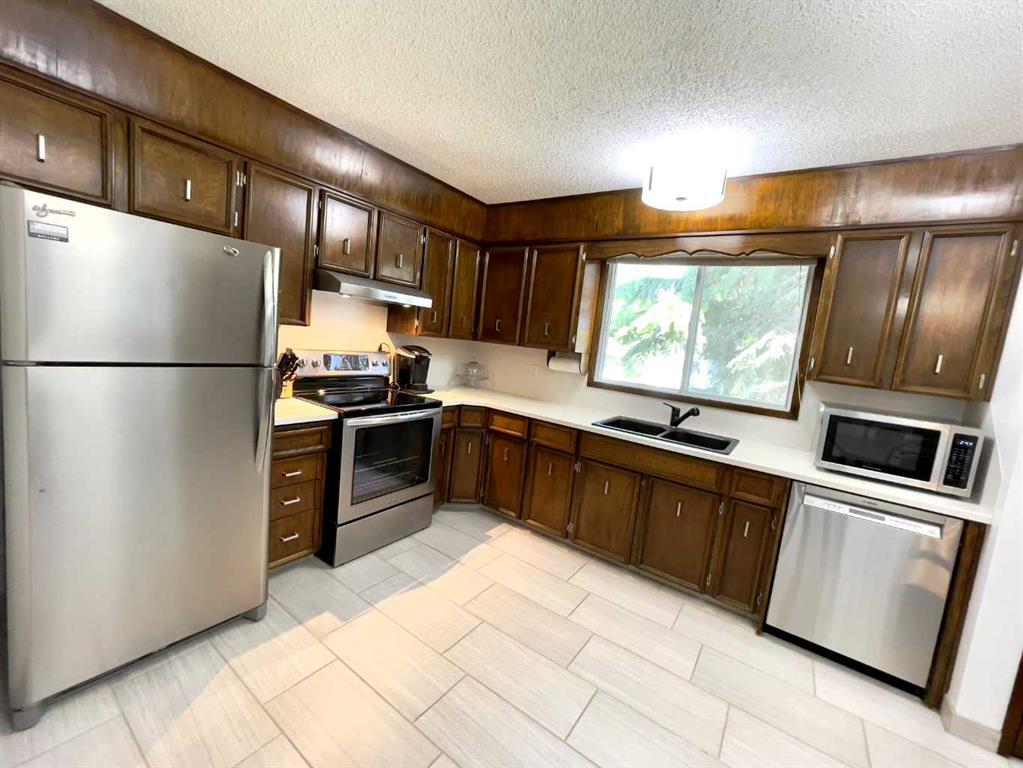 Original Owners and first time offered for sale! Lovingly cared for, expanded Bungalow by Riviera Homes. Very Spacious rooms throughout! Front sunken Living room (one riser only) with a Bow Window and features a Built-in Cabinet. Enjoy the Kitchen that is Open to the Main Floor sunken Family room(one riser only)that Features a wood Burning Brick faced Fireplace with gas Log Liter. The Family room also has Patio door Access to the low maintence Deck. Large Kitchen with Eating Area, a corner pantry Loads of Cabinets and Stainless Steel Appliances! Enjoy the convenience of the Kitchen window over looking the back yard. Three very spacious Bedrooms up, the Primary room featuring a 3 piece bath, mirrored closet doors and Patio Door Access to the deck! Tiled Flooring and Upgraded carpeting throughout the main floor. Numerous Updates including High Eff Furnace, Central Air Conditioning, Plush Carpets, Floor Tiles, Roof Shingles, Poured Concrete Walks, Low Maintence Deck. Basement is Fully developed with Recreation room (with pocket door), a Games room with the second fireplace and a wet bar. 4th Bedroom (window not egress), a large office or den with lots of built-in Storage shelves and workshop area. Also there is a 3 piece bath and the laundry room (also with pocket door). The double rear detached garage is concrete construction with a roof solid enough for an upper deck if desired. Private back yard with some trees and a low maintence deck! Very well located on a low traffic street across the street form a small park. Close to schools, transit, shopping. A perfect place to call home? (id:22211)