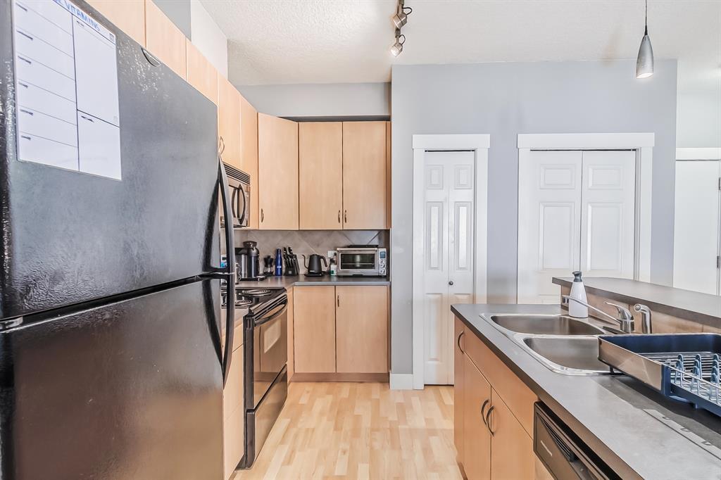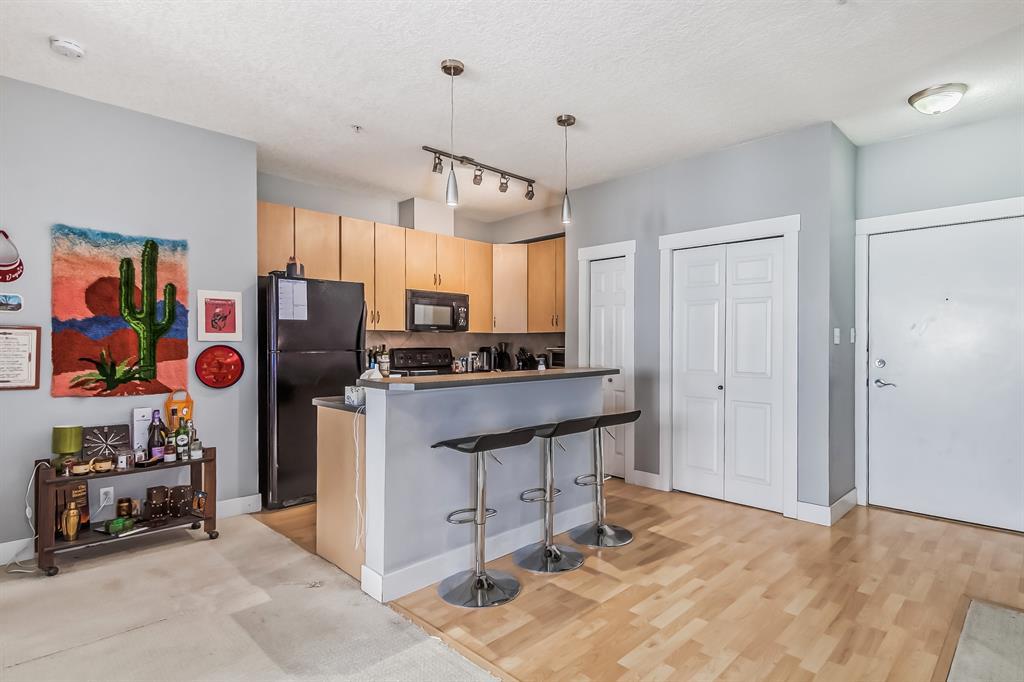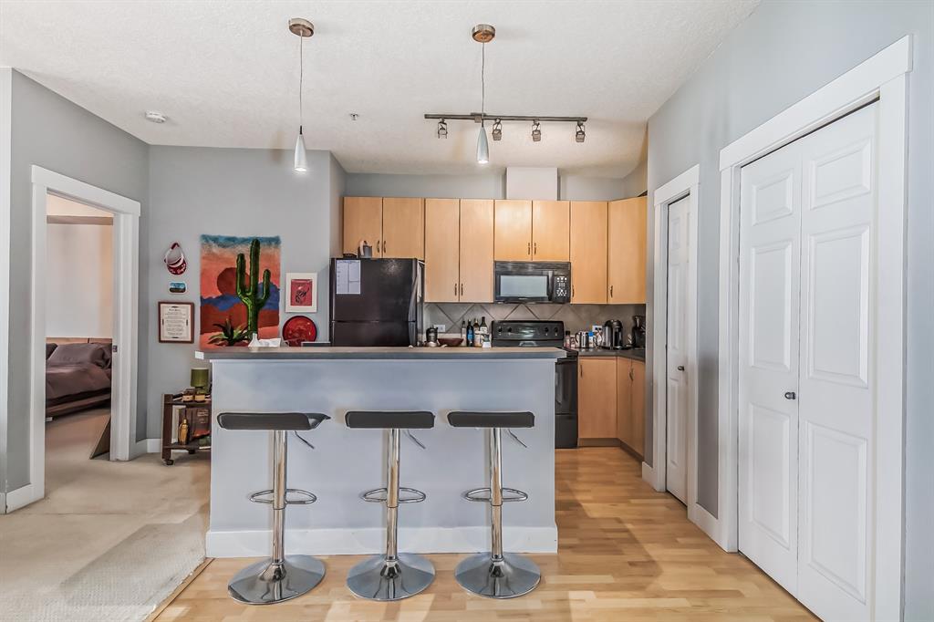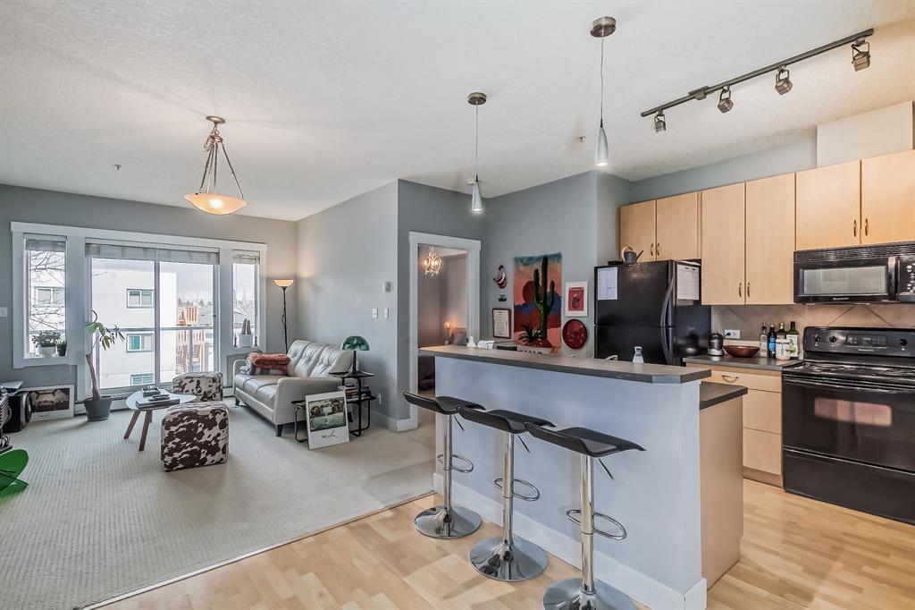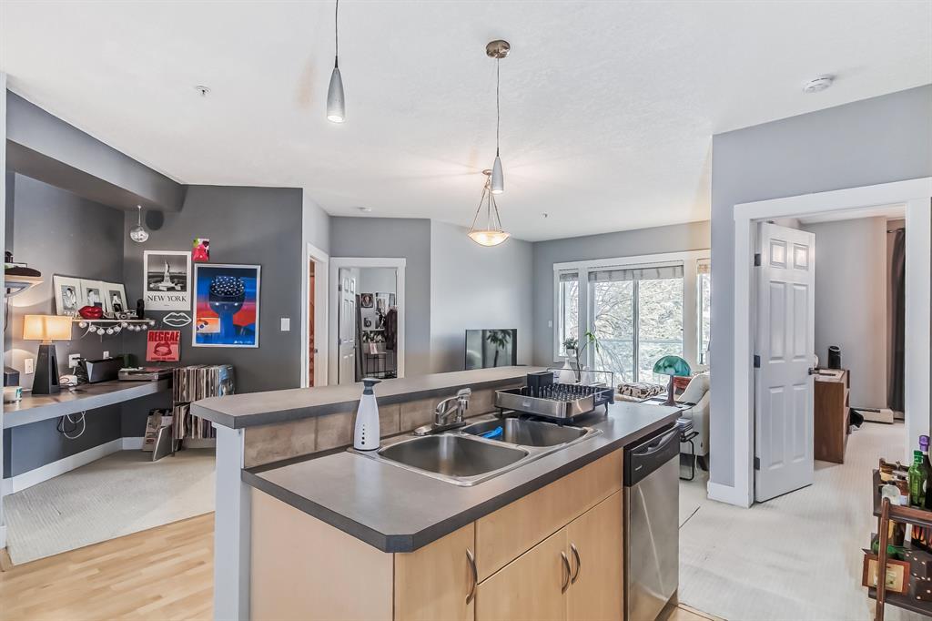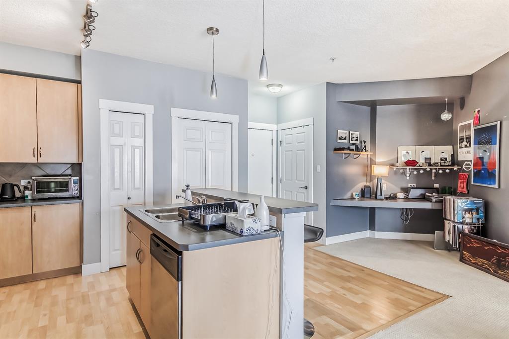 GREAT FOR YOUNG PROFESSIONALS. This 2-bedroom condo is in Altadore close to the trendy Marda Loop neighborhood of Calgary, offering residents access to a range of shops, restaurants, and amenities. Walk to your favorite restaurant or café on the weekends or go for a bike ride to nearby Sandy Beach. The open floor plan is welcoming and lets in tons of light from the large patio windows. The kitchen offers plenty of storage with a pantry and a good size island that has a raised breakfast bar. The living room is well shaped for couch and TV placement with patio doors leading out to your own balcony. There is a built-in study area to finish off the living space for when you need to get some work done or do some studying. The bedrooms are spacious and filled with natural light, making for a comfortable living experience. The master bedroom is large enough to fit a king size bed with a walk-through closet leading into the 4-piece ensuite. The location of the condo is ideal for those who enjoy a city lifestyle, as it is close to public transportation and just a short drive away from downtown. Overall, this condo in Altadore is a great option for anyone looking for a convenient, stylish, and comfortable living space in one of Calgary's most popular neighborhoods. (id:22211)