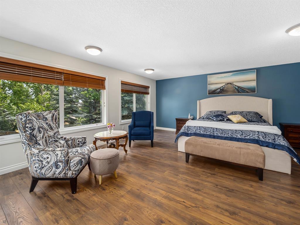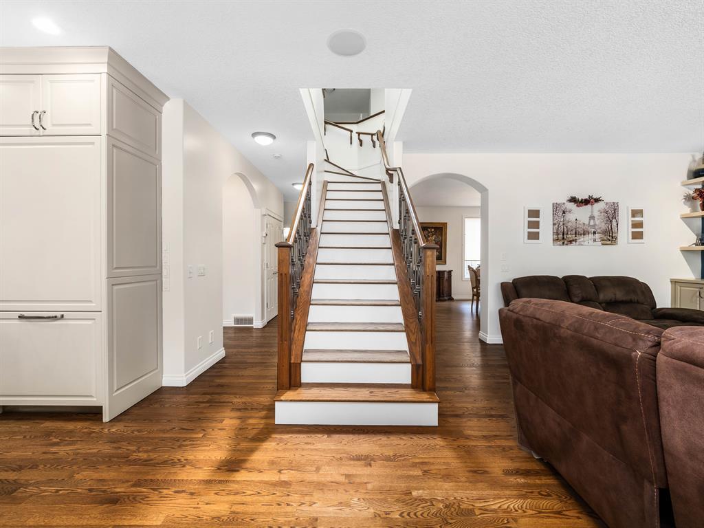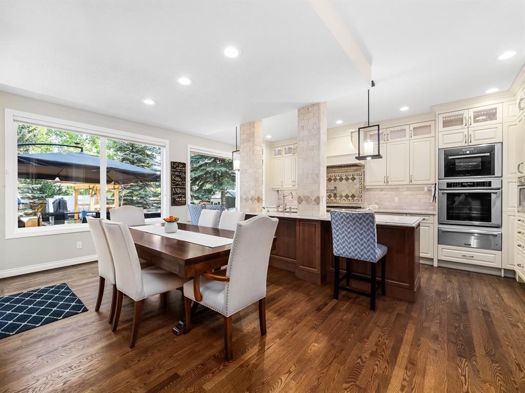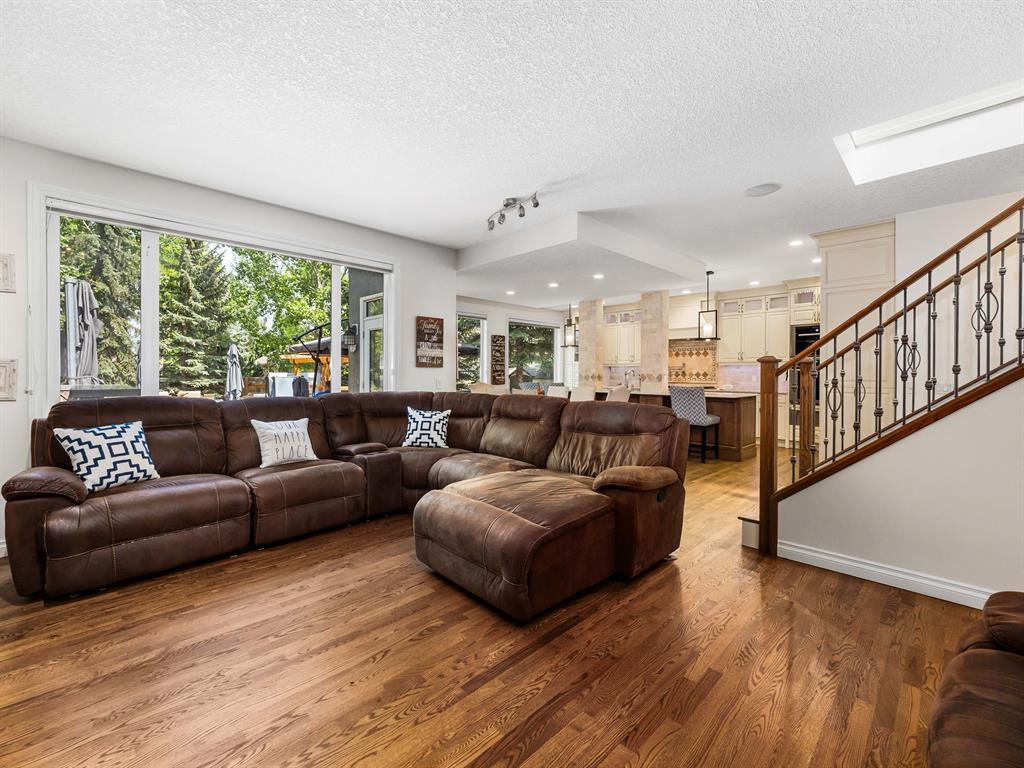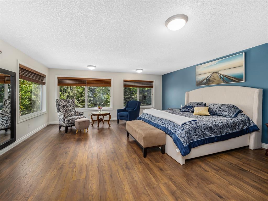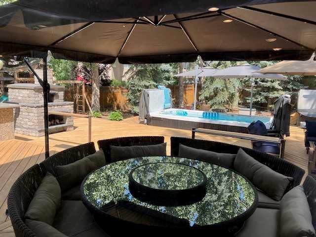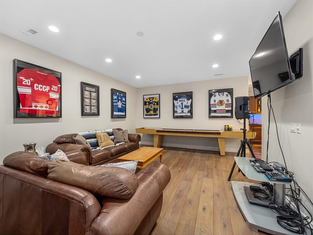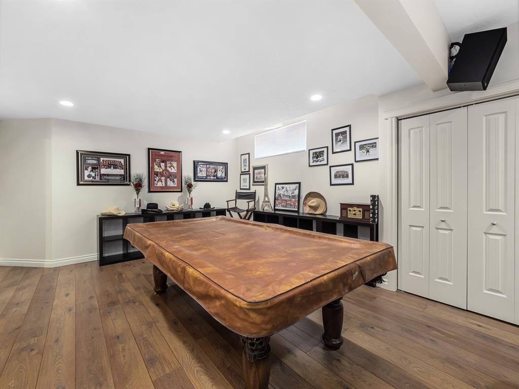 OPEN HOUSE SATURDAY SEPTEMBER 16 1:30 - 4:00. HUGE PRICE REDUCTION!!!. A 500K renovation in 2018 has taken this already beautiful home to the next level of luxury! Seemingly unlimited upgrades, a 3 storey addition and an incredible backyard oasis elevate this home to a timeless classic that will stand the test of time. Ideally situated on a pie-shaped lot within a quiet cul-de-sac, the impressive curb appeal mirrors the attention to detail found throughout. Inside this casually elegant sanctuary is 4,000 sq. ft of thoughtfully developed space. Gleaming hardwood floors are on all 3 levels, no carpet! All 4 bathrooms were lavishly upgraded with travertine tile and quartz countertops. The 100% open concept design is bathed in natural light and kept cool by central air conditioning. The new addition allowed for a huge gourmet kitchen featuring a 10’ centre island, full-height cabinets, quartz countertops and Thermador Professional Series stainless steel appliances that include a gas stove, wall oven, steam oven, warming oven and a built-in espresso machine. Clear sightlines into the living room promote unobstructed conversations while relaxing in front of the gas fireplace. Additional unwinding space is found in the upper level bonus room with a built-in media centre and an expansive 90 degree built-in work/study/gaming area. The primary suite is an indulgent escape, encased in windows that frame the mature landscape and equipped with an opulent ensuite boasting dual sinks, a deep soaker tub, an oversized rain shower and a custom walk-in closet. 3 additional bedrooms on this level ensure plenty of space. Gather in the finished basement with Radiant In-Floor Heating and come together over friendly game nights at the pool table or shuffleboard then grab a snack or refill your drink at the wet bar. A 5th bedroom and another full bathroom, just as stylish as the rest of the home are also on this level. The backyard is simply amazing and will make every day feel like you’re on vacation! French doors off the main floor open to reveal 6,000 sq. ft. of cedar decking leading to an outstanding outdoor kitchen and wood burning pizza oven. Take a dip in the 18’ spa or a relaxing soak in the 8’ x 8’ hot tub. Several umbrellas provide shaded areas followed by a pergola with hammocks. Convene around the built-in firepit on summer evenings. 3 sheds hide away the seasonal clutter – this incredible backyard truly has it all! The oversized garage is insulated and heated with a sink and a huge amount of space for a workshop and storage. Many upgrades were added during the comprehensive renovation including new baseboards, window casings, new roof shingles, new furnaces, air purification, water purification with smart leak detection, direct vent water heaters, neutral paint colour in every interior room, new exterior paint and much, much more! Perfectly located within this family-friendly community close to the resident’s only club, Fish Creek Park, schools, parks, shops and transit! (id:22211)