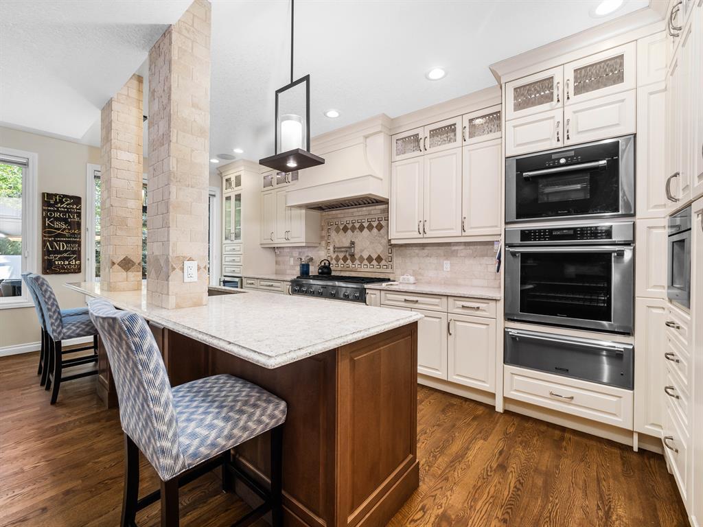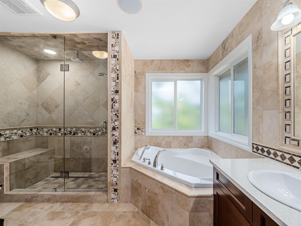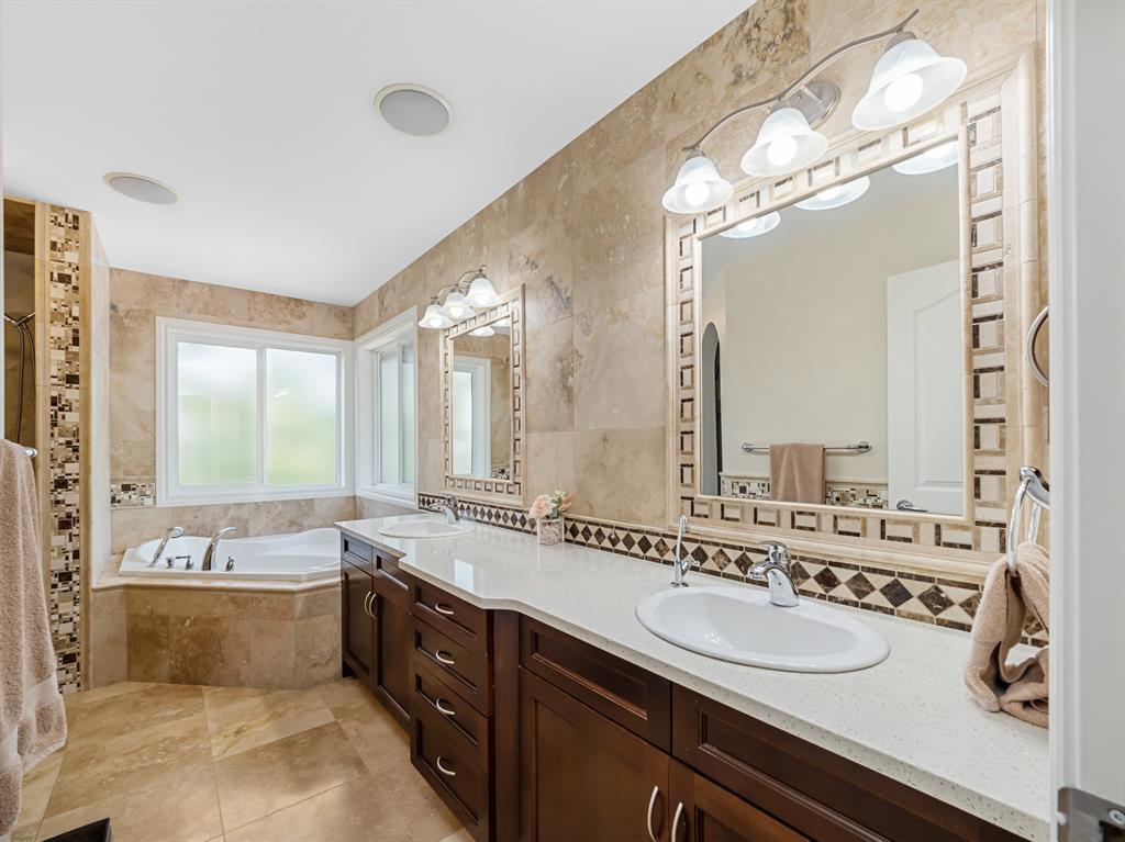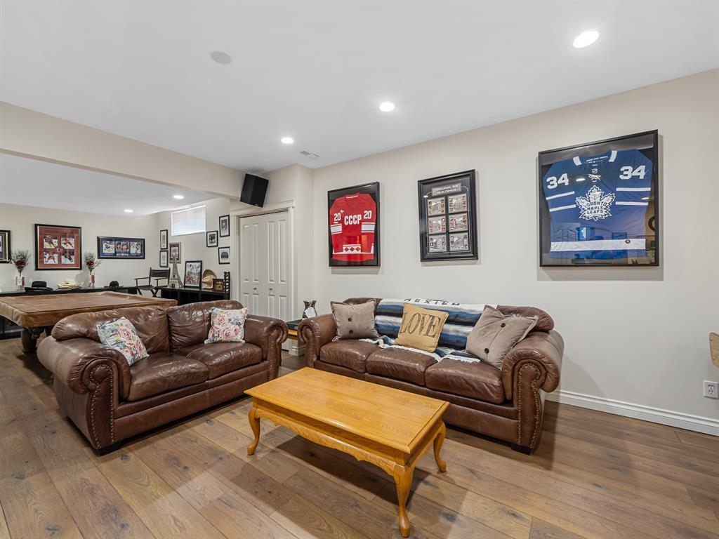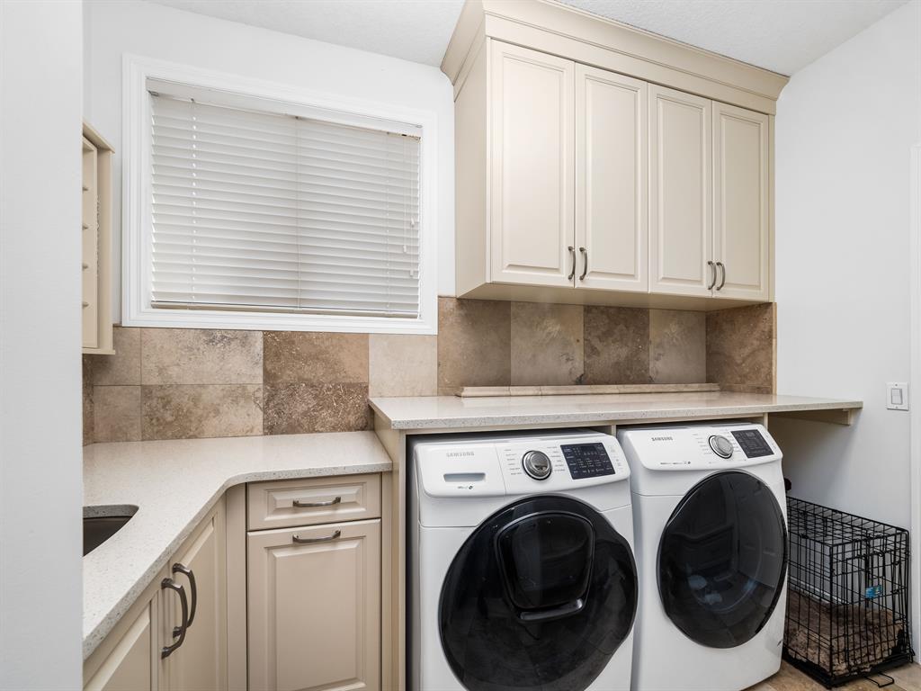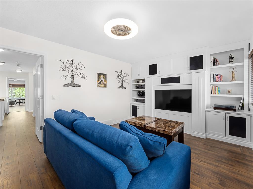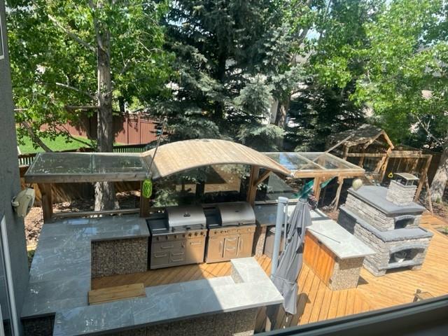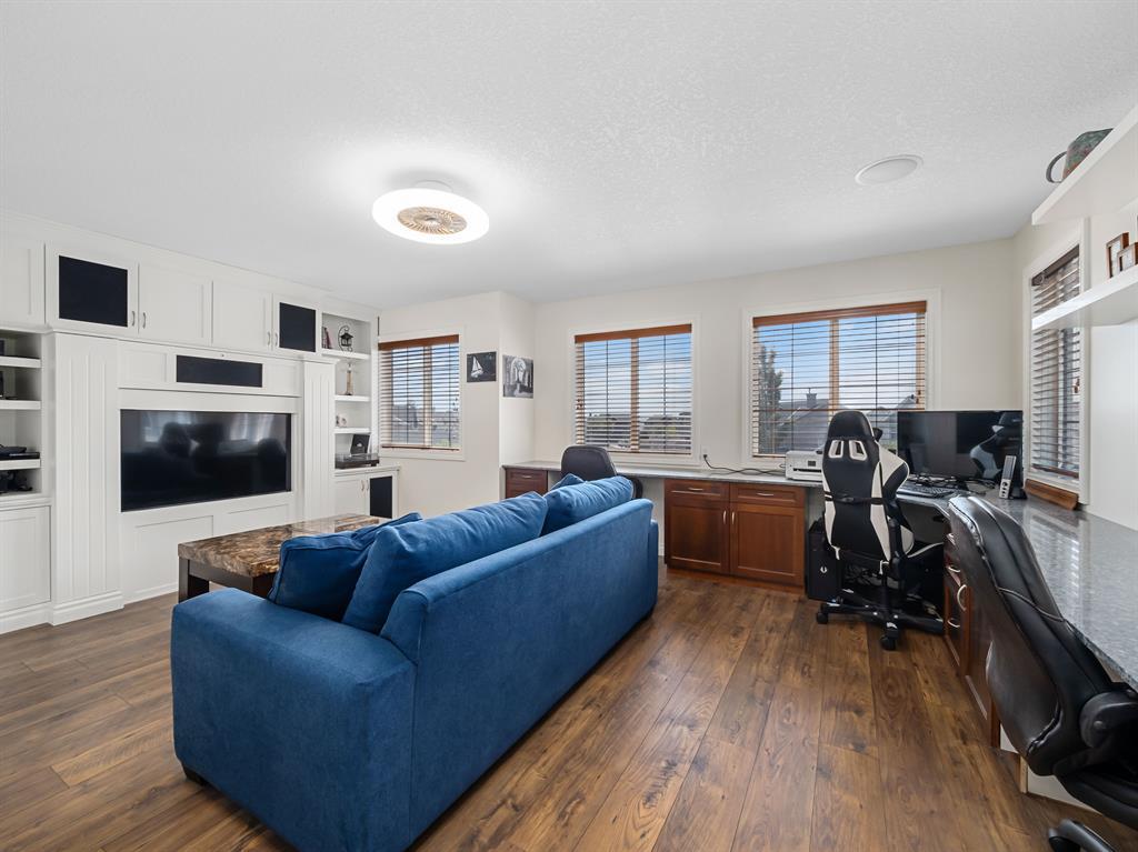 OPEN HOUSE SATURDAY SEPTEMBER 16 1:30 - 4:00. HUGE PRICE REDUCTION!!!. A 500K renovation in 2018 has taken this already beautiful home to the next level of luxury! Seemingly unlimited upgrades, a 3 storey addition and an incredible backyard oasis elevate this home to a timeless classic that will stand the test of time. Ideally situated on a pie-shaped lot within a quiet cul-de-sac, the impressive curb appeal mirrors the attention to detail found throughout. Inside this casually elegant sanctuary is 4,000 sq. ft of thoughtfully developed space. Gleaming hardwood floors are on all 3 levels, no carpet! All 4 bathrooms were lavishly upgraded with travertine tile and quartz countertops. The 100% open concept design is bathed in natural light and kept cool by central air conditioning. The new addition allowed for a huge gourmet kitchen featuring a 10’ centre island, full-height cabinets, quartz countertops and Thermador Professional Series stainless steel appliances that include a gas stove, wall oven, steam oven, warming oven and a built-in espresso machine. Clear sightlines into the living room promote unobstructed conversations while relaxing in front of the gas fireplace. Additional unwinding space is found in the upper level bonus room with a built-in media centre and an expansive 90 degree built-in work/study/gaming area. The primary suite is an indulgent escape, encased in windows that frame the mature landscape and equipped with an opulent ensuite boasting dual sinks, a deep soaker tub, an oversized rain shower and a custom walk-in closet. 3 additional bedrooms on this level ensure plenty of space. Gather in the finished basement with Radiant In-Floor Heating and come together over friendly game nights at the pool table or shuffleboard then grab a snack or refill your drink at the wet bar. A 5th bedroom and another full bathroom, just as stylish as the rest of the home are also on this level. The backyard is simply amazing and will make every day feel like you’re on vacation! French doors off the main floor open to reveal 6,000 sq. ft. of cedar decking leading to an outstanding outdoor kitchen and wood burning pizza oven. Take a dip in the 18’ spa or a relaxing soak in the 8’ x 8’ hot tub. Several umbrellas provide shaded areas followed by a pergola with hammocks. Convene around the built-in firepit on summer evenings. 3 sheds hide away the seasonal clutter – this incredible backyard truly has it all! The oversized garage is insulated and heated with a sink and a huge amount of space for a workshop and storage. Many upgrades were added during the comprehensive renovation including new baseboards, window casings, new roof shingles, new furnaces, air purification, water purification with smart leak detection, direct vent water heaters, neutral paint colour in every interior room, new exterior paint and much, much more! Perfectly located within this family-friendly community close to the resident’s only club, Fish Creek Park, schools, parks, shops and transit! (id:22211)