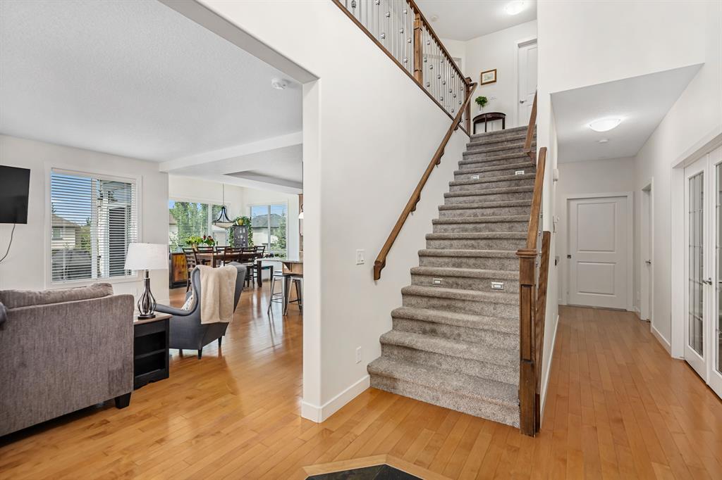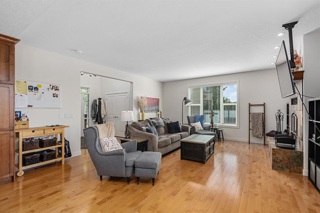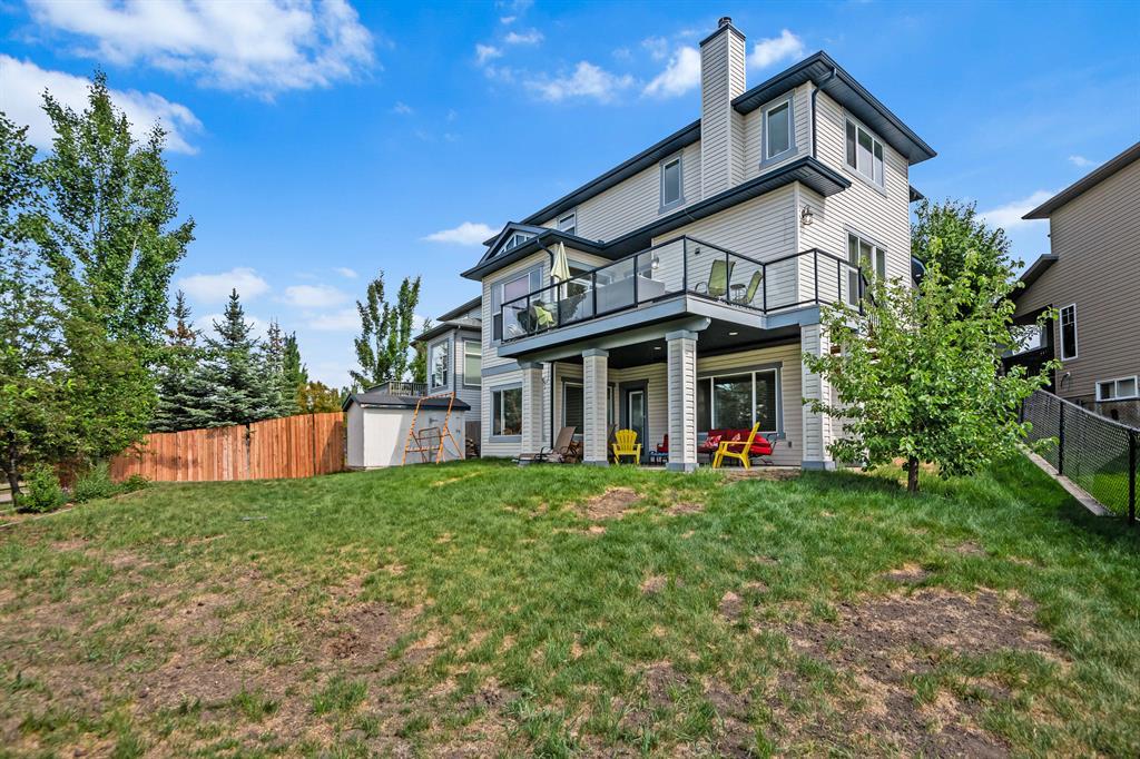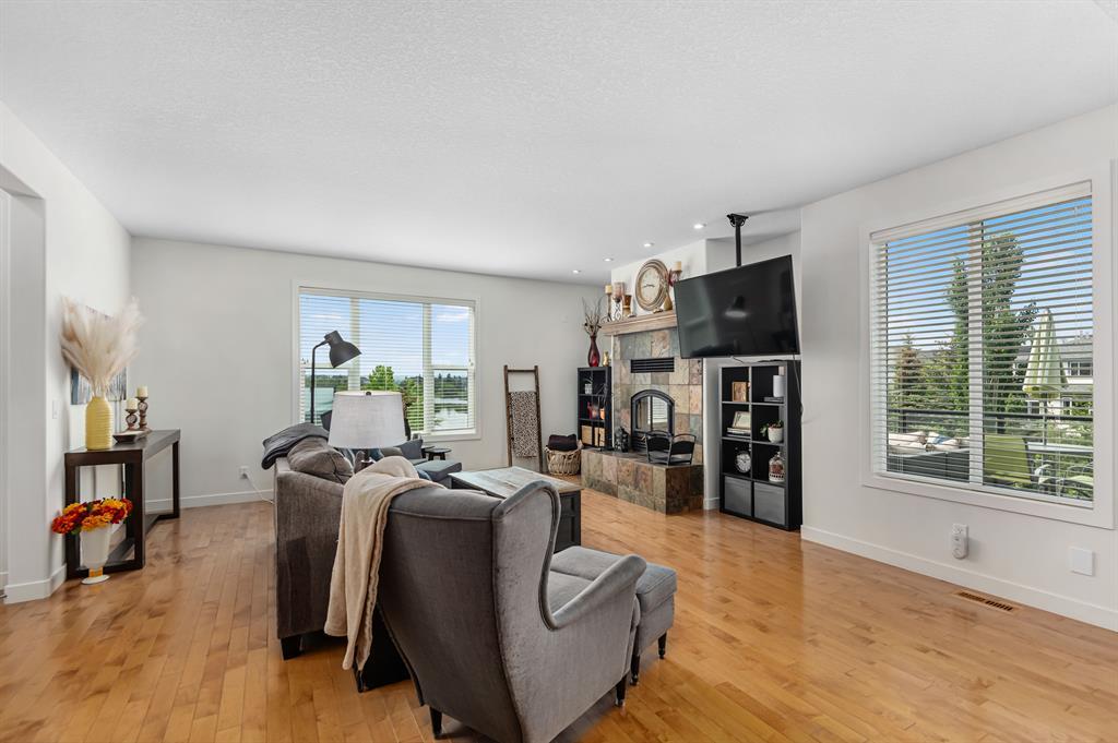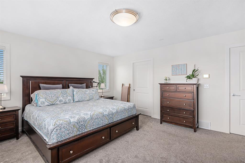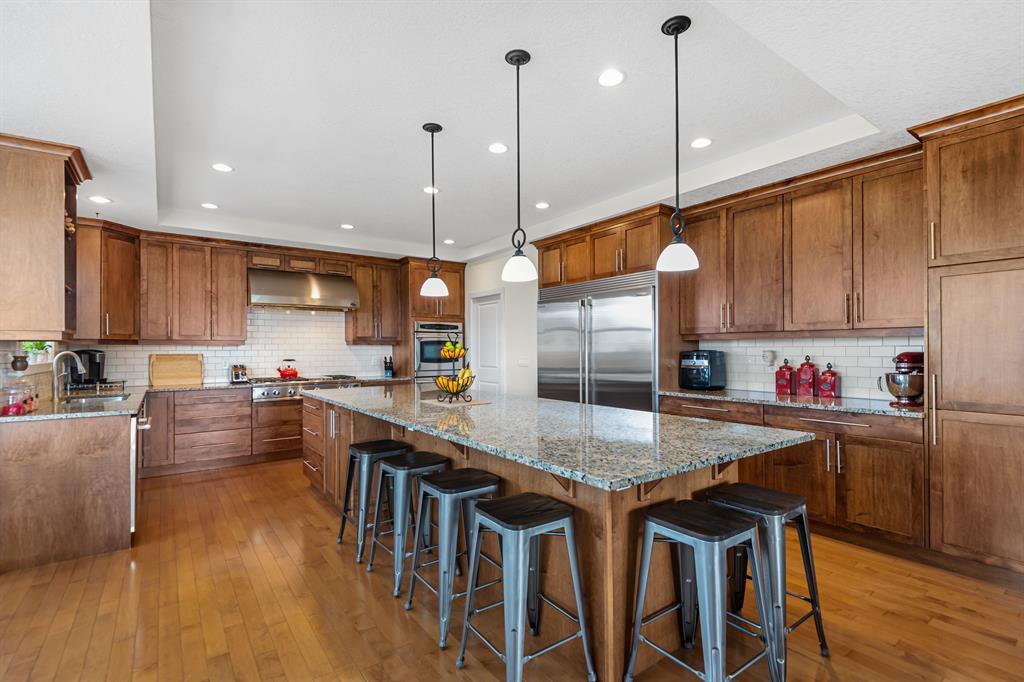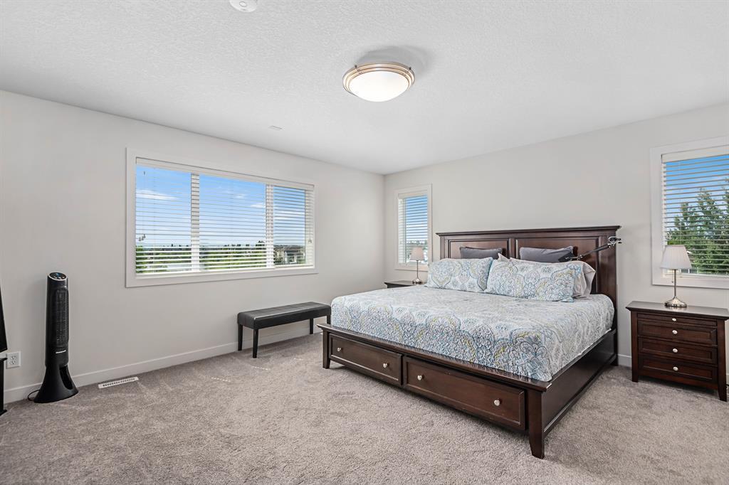 Fully finished WALKOUT home in the desirable community of Cranston! A great family home with over 3800 sqft of developed space, perfectly situated in a CUL-DE-SAC on an enormous PIE LOT with stunning mountain and pond views. This lovingly cared for home includes a dream kitchen with a 13 ft granite island, stainless steel appliances, huge refrigerator, smart layout, large walk through pantry and an open concept main floor – an entertainer’s dream! You’ll have AIR-CONDITIONED hot summers and energy efficient radiant floor heating for our cozy winters. Upstairs new carpet greets you, 4 spacious bedrooms, including a primary bedroom complete with a walk-in closet and ensuite. You'll love the convenience of having a laundry room on the same level as the bedrooms! Lower level with a WALKOUT offers new carpet, a large rec room, 5th bedroom and 4 piece bathroom. Tons of storage space that could be developed into a 6th bedroom if needed. The west facing backyard backs into the pond, giving you direct access to a serene walking/biking path to enjoy! Your spacious yard is perfect for family BBQs, entertaining and enjoying the great outdoors. An OVERSIZED attached double car garage and a paved driveway provide ample space for parking. Steps from Cranston School (K-5), Dr. George Stanley School (6-9), Christ the King Catholic School (K-9), easy access to highway, shopping, transit and parks - all the amenities your growing family needs! schedule a viewing today and make this house your forever home! (id:22211)