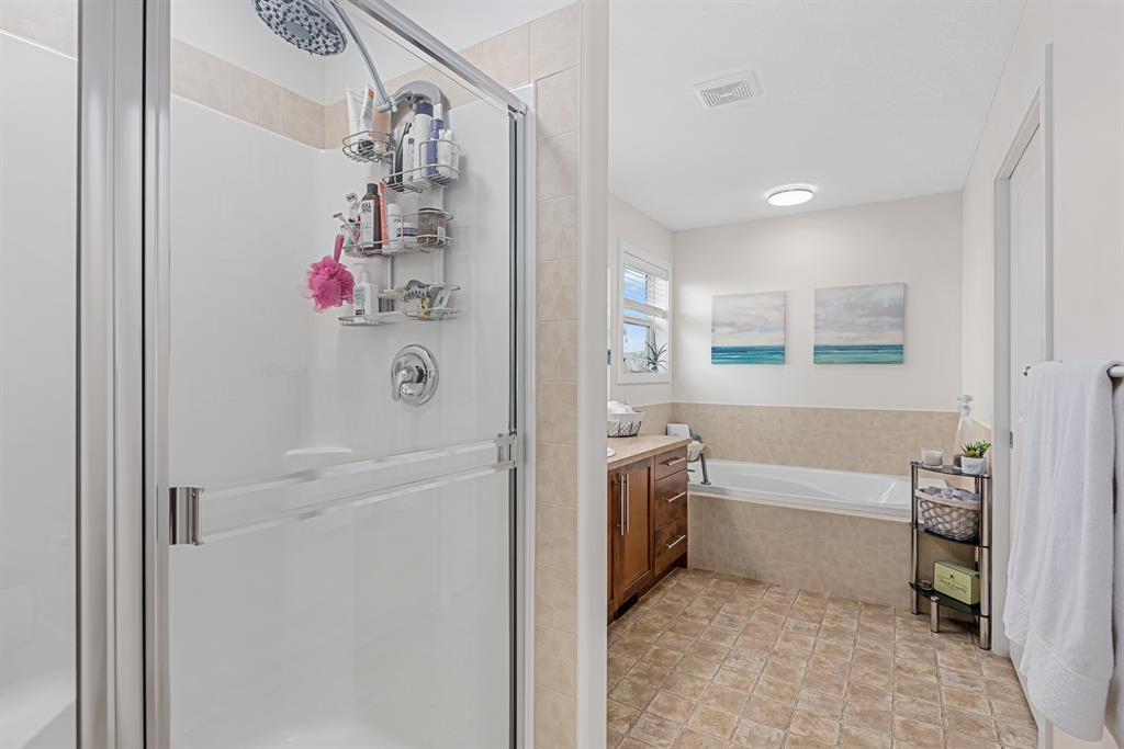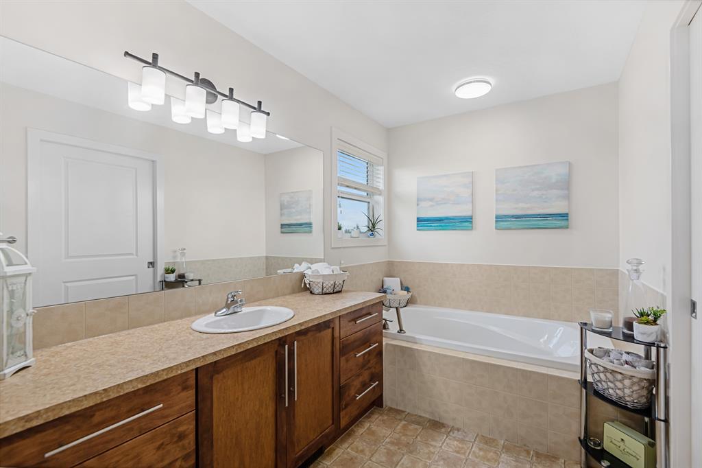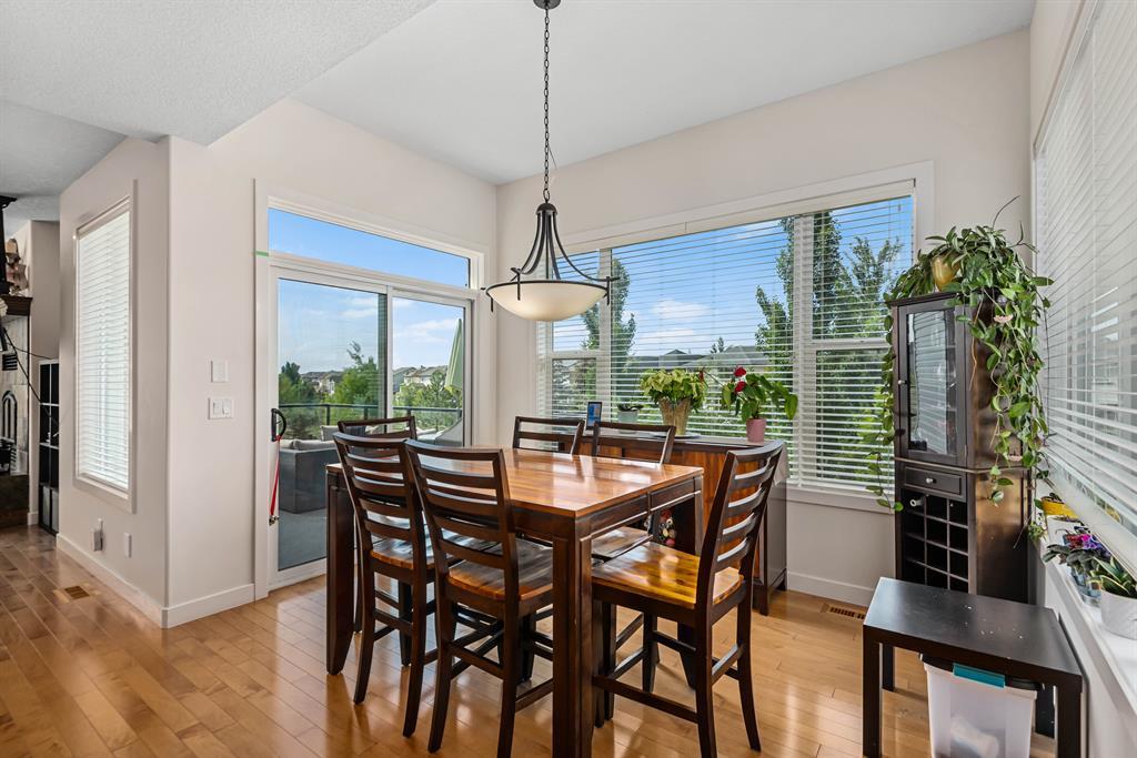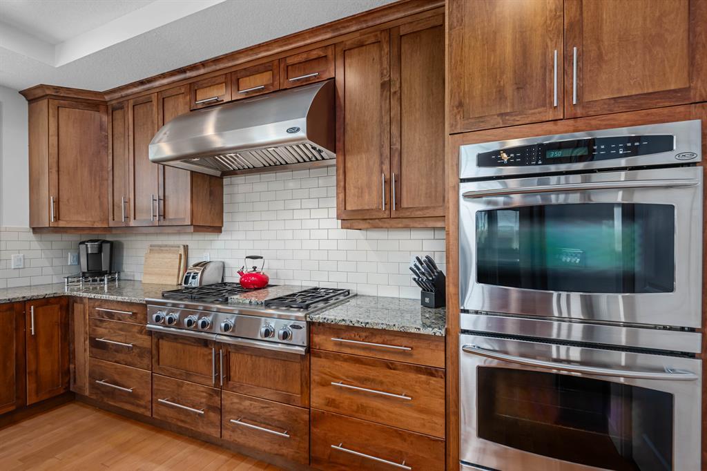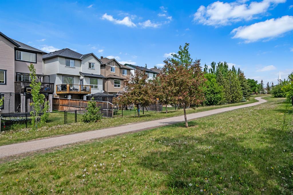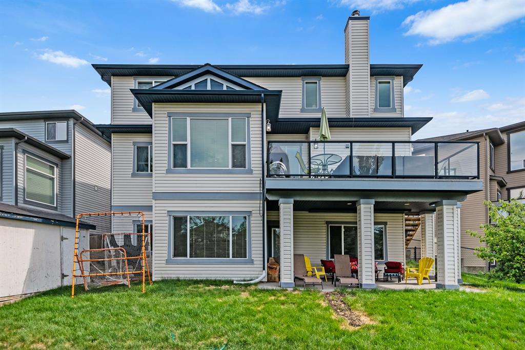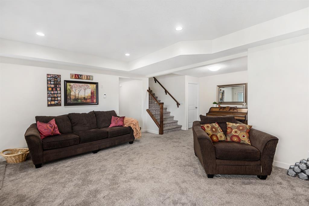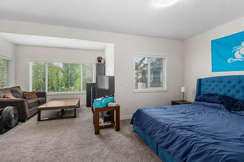 Fully finished WALKOUT home in the desirable community of Cranston! A great family home with over 3800 sqft of developed space, perfectly situated in a CUL-DE-SAC on an enormous PIE LOT with stunning mountain and pond views. This lovingly cared for home includes a dream kitchen with a 13 ft granite island, stainless steel appliances, huge refrigerator, smart layout, large walk through pantry and an open concept main floor – an entertainer’s dream! You’ll have AIR-CONDITIONED hot summers and energy efficient radiant floor heating for our cozy winters. Upstairs new carpet greets you, 4 spacious bedrooms, including a primary bedroom complete with a walk-in closet and ensuite. You'll love the convenience of having a laundry room on the same level as the bedrooms! Lower level with a WALKOUT offers new carpet, a large rec room, 5th bedroom and 4 piece bathroom. Tons of storage space that could be developed into a 6th bedroom if needed. The west facing backyard backs into the pond, giving you direct access to a serene walking/biking path to enjoy! Your spacious yard is perfect for family BBQs, entertaining and enjoying the great outdoors. An OVERSIZED attached double car garage and a paved driveway provide ample space for parking. Steps from Cranston School (K-5), Dr. George Stanley School (6-9), Christ the King Catholic School (K-9), easy access to highway, shopping, transit and parks - all the amenities your growing family needs! schedule a viewing today and make this house your forever home! (id:22211)