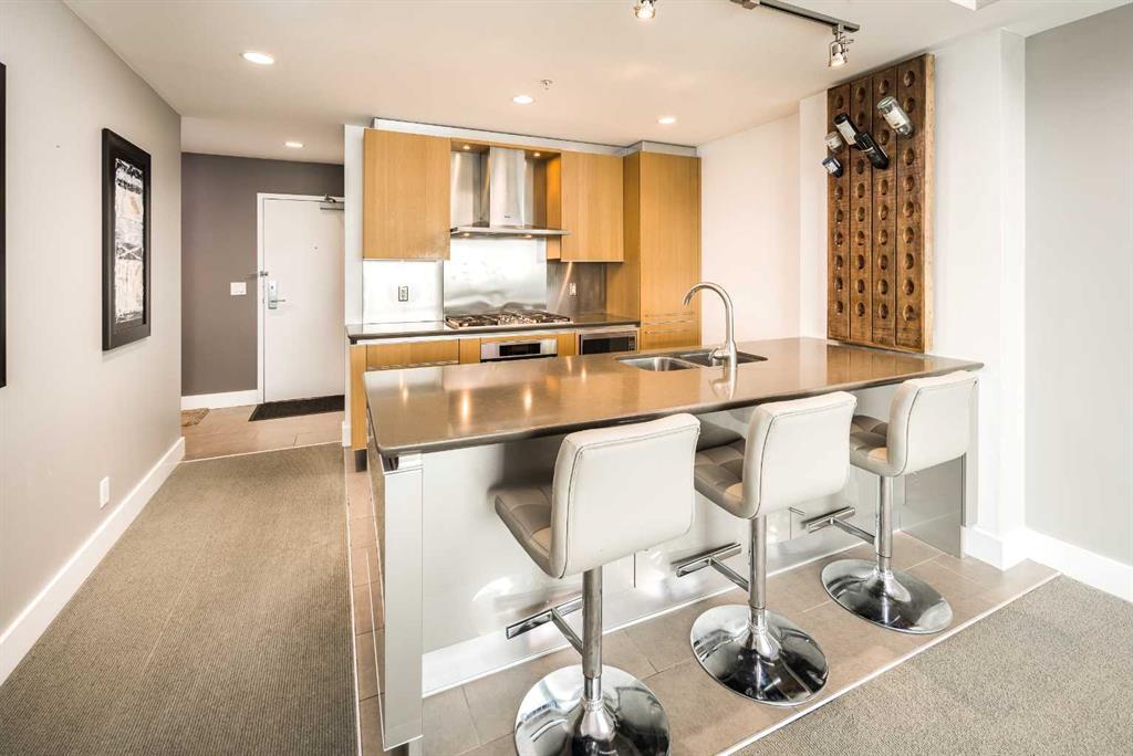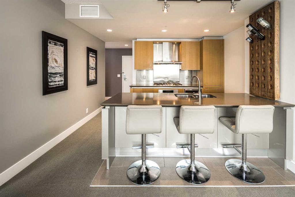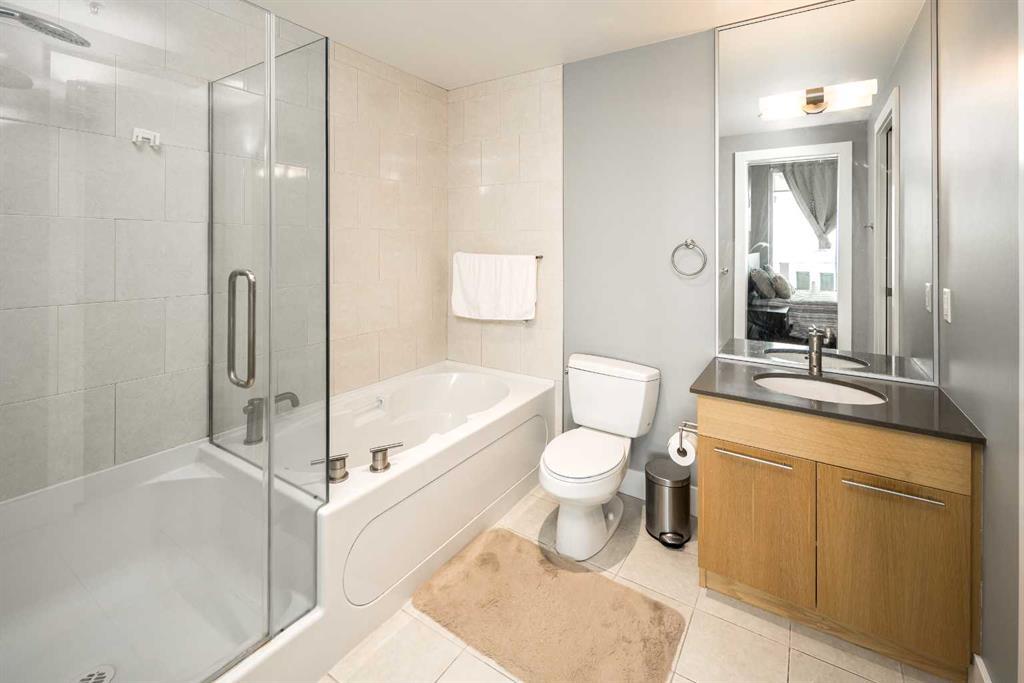 Welcome to ARRIVA in Beltline! This spectacular 1 bed + 1 full & 1 half bath condo features an open concept space; 9-foot ceiling, central air conditioning, and lots of natural light from the floor to ceiling windows which shows great views of the city and Stampede park. Off the entrance, there is a great office /den area, as well as a large storage/ laundry room. The Italian Snaidero kitchen features Miele appliance, wood cabinetry and quartz countertops. The master bedroom boasts a large walk-in closet & a 4-piece ensuite with a soaker tub. Titled underground parking & a storage locker to accompany this unit. This building provides 24 hours concierge / security personnel, two guest suites and guest parking. Walking distance to downtown, east village, LRT, stampede park, some of Calgary's best restaurants. (id:22211)