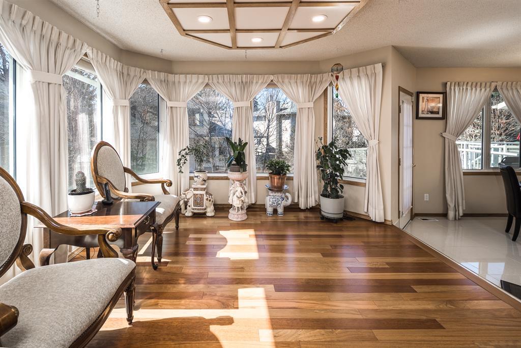 Price Reduced! Welcome to this Lovely bungalow with over 100k updates, seating in desirable family community of Silver Springs. Sitting on a huge lot of 7890 sqft, this truly stunning home provides over 3,700 sqft of developed living space. The open-concept main floor features bright family room with a brick fireplace. Kitchen offers kitchen island, refaced cabinets, granite countertops, stainless steel appliances, and a large bright eating nook. Spacious Living room completes with bay windows allowing natural light shining through your main living area. The large master bedroom has a walk-in closet and renovated ensuite bath in 2022. Brazilian Chestnut hardwood runs through the main floor. Professionally developed walk-out basement has under slab heating. Huge Rec room, good working condition sauna bathroom as well as as three good size bedrooms (one of which with ensuite bathroom) completes the basement. Laminate flooring in whole basement. Sunny South-Facing backyard features delightful landscape and a deck with glass railing. Many upgrades in this house. New Japanese Air Conditioner. Long lasting, maintenance-free PVC Windows Frames. All the window glass had been replaced. The old poly B water pipes had been replaced by PEX pipes in whole house. Close to school, city park, and Bow River. Book your private showing today! (id:22211)