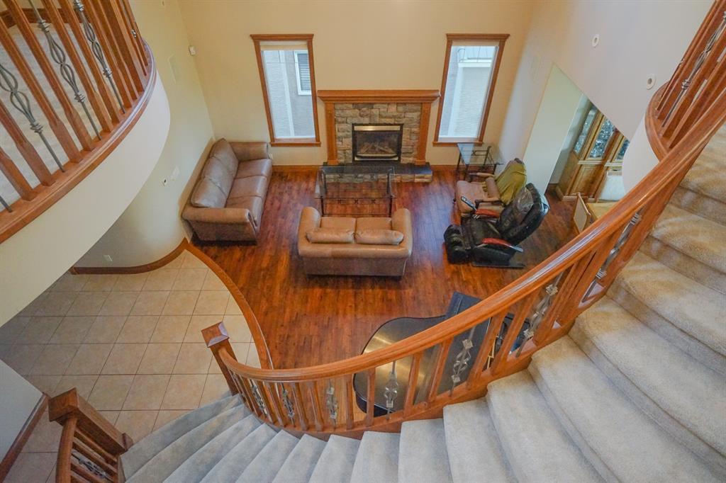 2 stories walk-out situated in one of the finest lots that back onto the Hamptons Golf Course, giving you exceptional panoramic view for all seasons! This one-of-a-kind estate home features 6 bedrooms, 4.5 baths, 3 cars garage, triple pane windows, in-floor heating with over 4600 Sq. Ft. of total living space. A large foyer leads you to a spacious living room with a fireplace; it overlooks the dining room and the kitchen. Perfect setup for entertaining guests. Efficient U-shaped kitchen with gas cooktop, granite countertop, a newer fridge and dishwasher (purchased less than one year old), and numerous cupboards and drawers. Along with the abundance storage in the kitchen, the main floor also includes two 5’ coat closets and 2 floor-to-ceiling pantries. An office is at the front with a built-in wall shelf. On the 2nd floor you’ll find 3 bedrooms, 3 full baths, and a huge bonus room. The Master bedroom features a beautiful view, a 5-piece ensuite including a steam shower, a jetted tub, and a spacious walk-in closet. A fully furnished walk-out basement includes 3 more bedrooms, all with closets and egress windows. Other features include newer laminate flooring and upgraded newer carpet (installed Aug, 2020), gas connection for your gas BBQ at the back, aggregated concrete driveway at the front, an underground sprinkler system, and a central vacuum system. Overall, a great home on a great lot with lots of space for a big family. (id:22211)