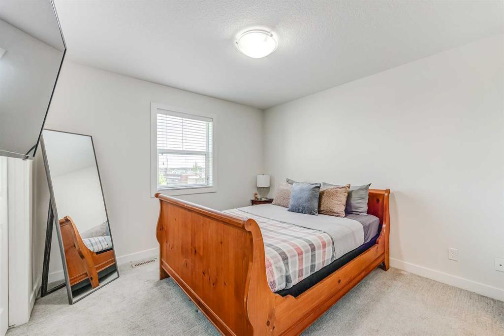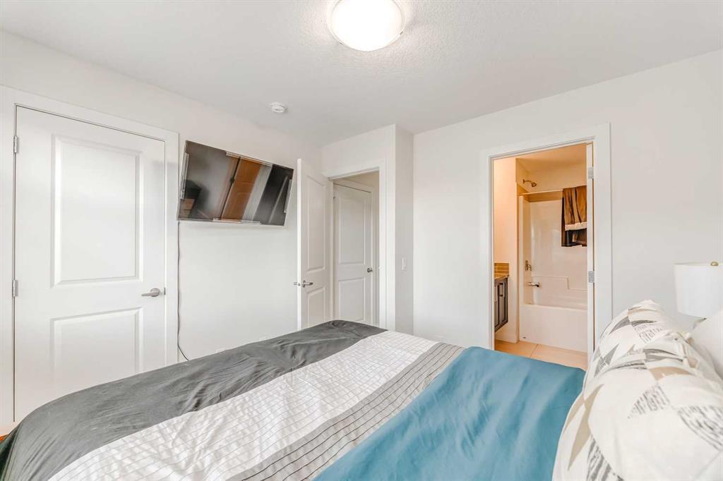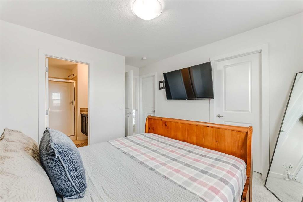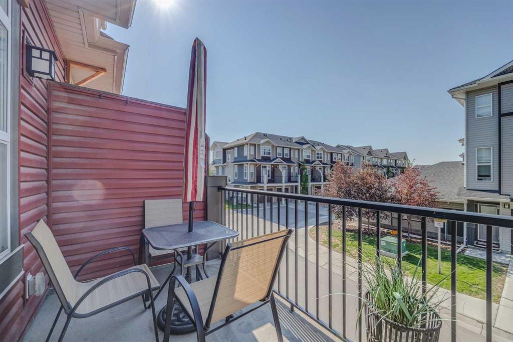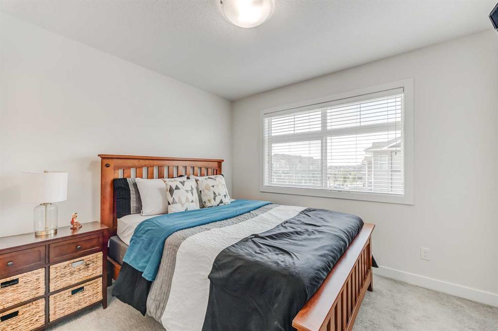 Welcome to this beautiful corner-unit townhouse, Legacy Commons, built by Trico Homes, located in the heart of one of the newest top communities in Calgary! Original Owner home, this traditional townhouse with double master suites (two bedrooms on the upper floor) offers a convenient, maintenance-free lifestyle with an attached garage! This immaculate corner unit is in brand-new condition and move-in ready, freshly painted, and professionally cleaned, and the carpets are in great condition! Starting at the main floor, as you walk into your main entrance, the single attached garage is good sized with ample room for storage for your winter tires and outdoor accessories. Behind the garage will have a finished flex room that has its own exterior entrance, this room can be used as an additional family room, office/flex room, or a completed storage room. This space can be easily removed to convert the garage back to a double tandem garage if you need extra parking. As you walk up the stairs to the 2nd level, you'll be greeted by 9' ceilings and an open-concept living room, dining room, kitchen, and 2-pc bathroom. The kitchen boasts ample storage, full-height cabinets, stainless steel appliances (fridge with waterline), and stone countertops. As you make your way to the upper floor, there are two good-sized double master bedrooms (each with its own ensuite bathroom), and the stacked laundry machine. Legacy is a great community that is close to all amenities within walking distance of the home. Easy Access into and out of the community with easy access to Macleod Trail AKA Highway 2A. (id:22211)