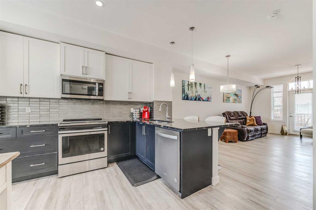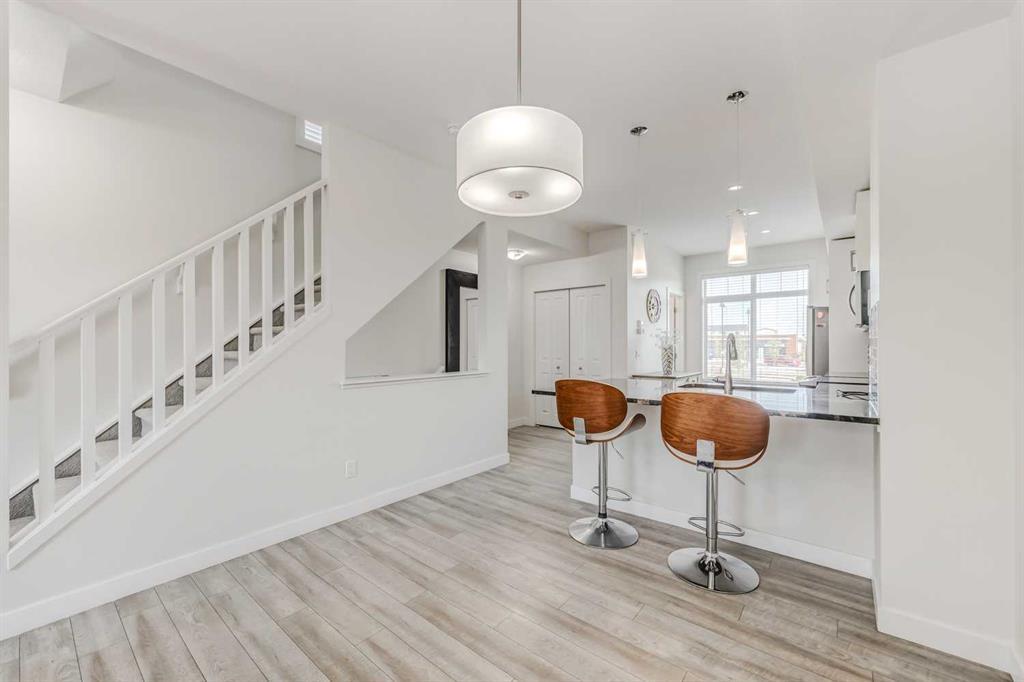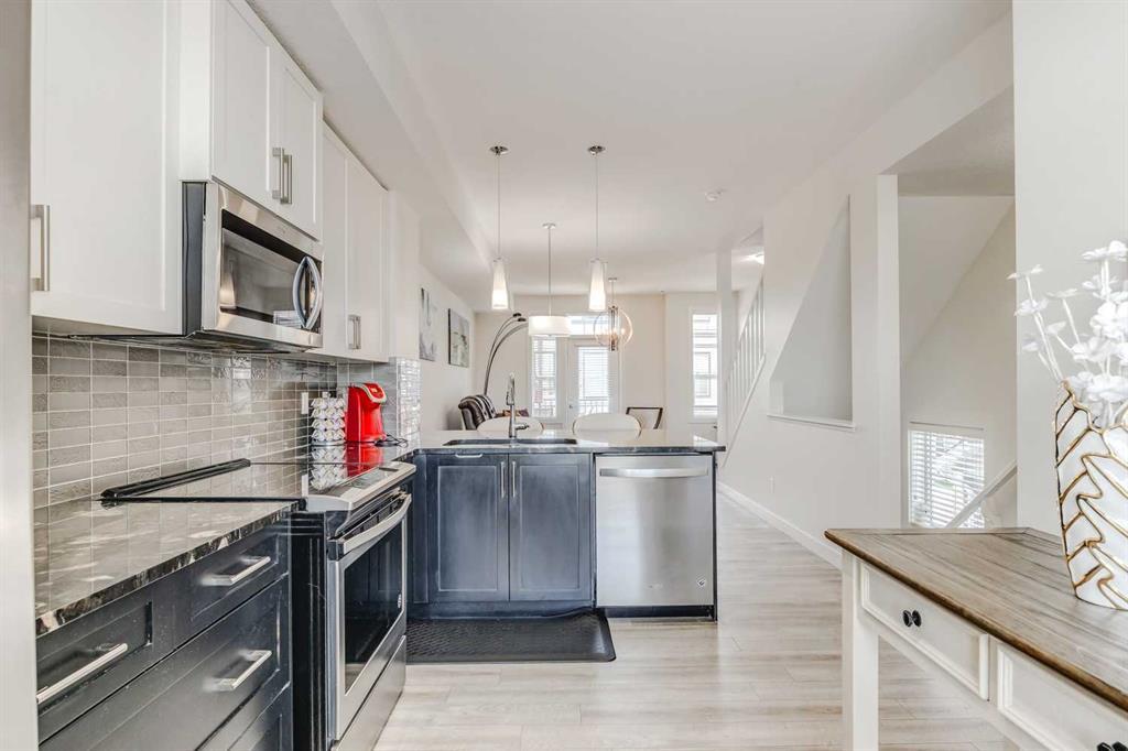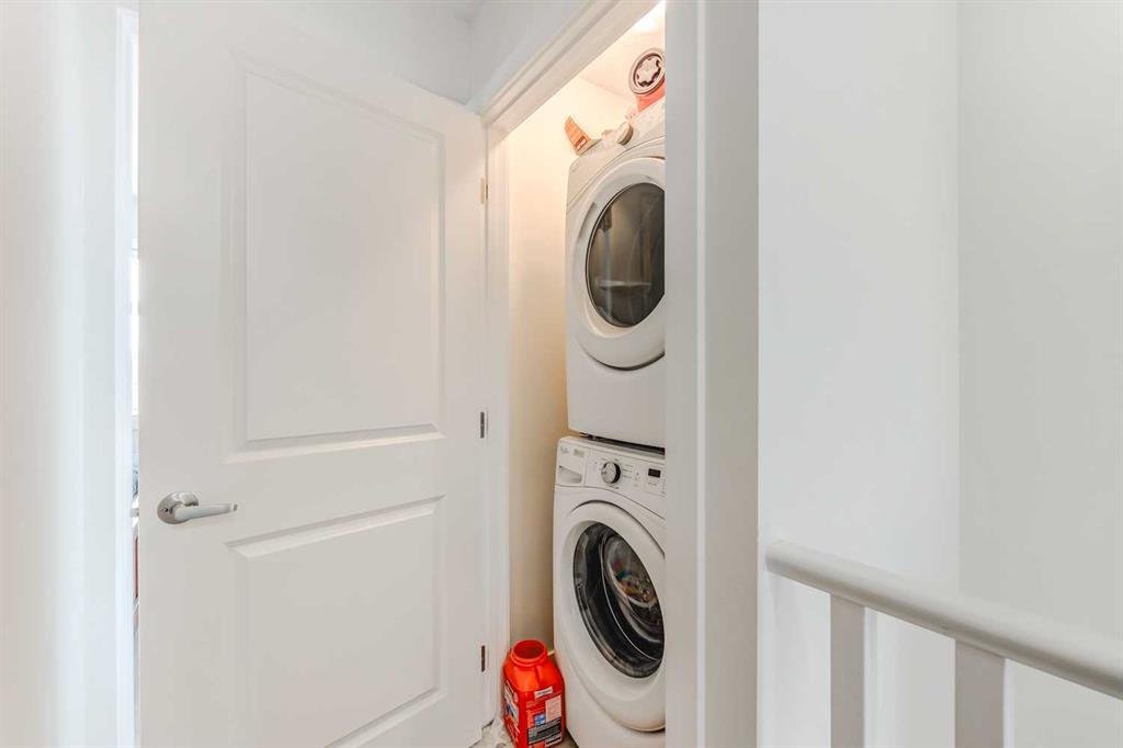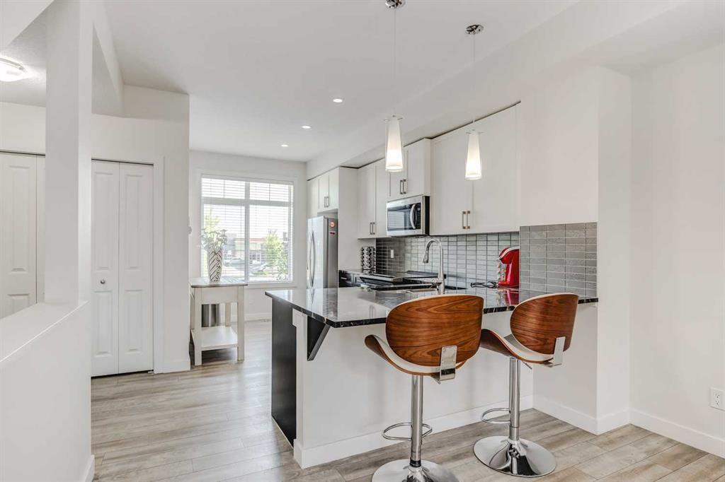 Welcome to this beautiful corner-unit townhouse, Legacy Commons, built by Trico Homes, located in the heart of one of the newest top communities in Calgary! Original Owner home, this traditional townhouse with double master suites (two bedrooms on the upper floor) offers a convenient, maintenance-free lifestyle with an attached garage! This immaculate corner unit is in brand-new condition and move-in ready, freshly painted, and professionally cleaned, and the carpets are in great condition! Starting at the main floor, as you walk into your main entrance, the single attached garage is good sized with ample room for storage for your winter tires and outdoor accessories. Behind the garage will have a finished flex room that has its own exterior entrance, this room can be used as an additional family room, office/flex room, or a completed storage room. This space can be easily removed to convert the garage back to a double tandem garage if you need extra parking. As you walk up the stairs to the 2nd level, you'll be greeted by 9' ceilings and an open-concept living room, dining room, kitchen, and 2-pc bathroom. The kitchen boasts ample storage, full-height cabinets, stainless steel appliances (fridge with waterline), and stone countertops. As you make your way to the upper floor, there are two good-sized double master bedrooms (each with its own ensuite bathroom), and the stacked laundry machine. Legacy is a great community that is close to all amenities within walking distance of the home. Easy Access into and out of the community with easy access to Macleod Trail AKA Highway 2A. (id:22211)