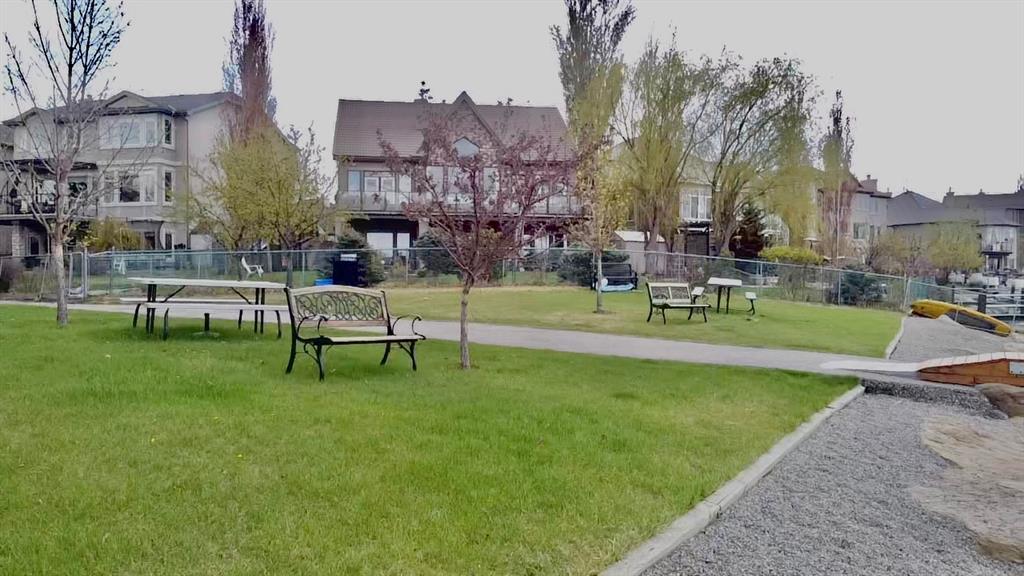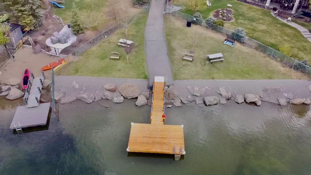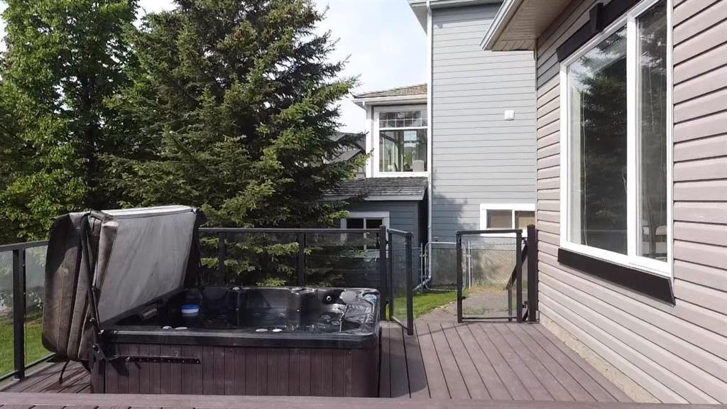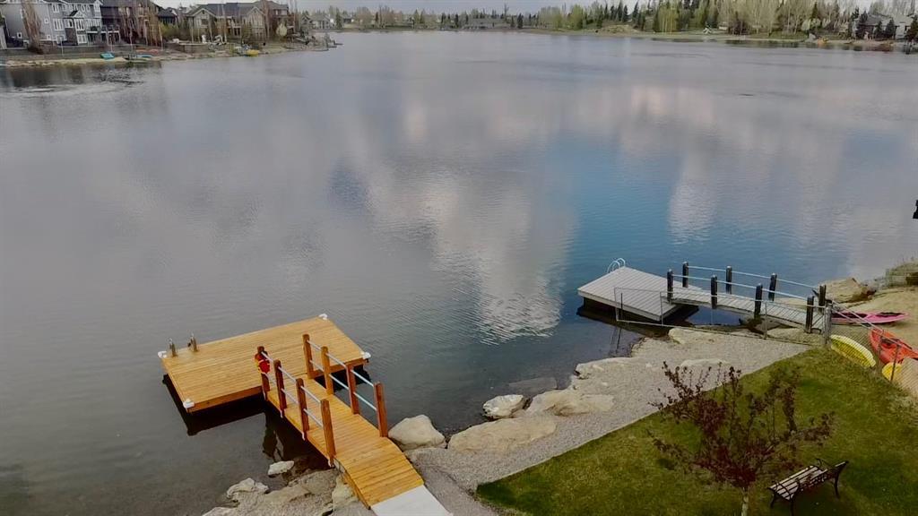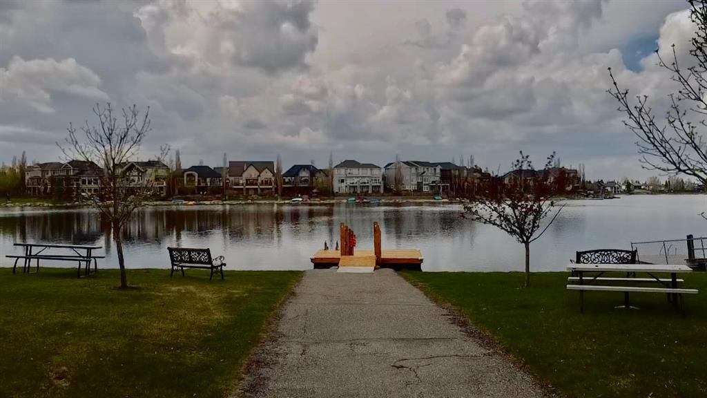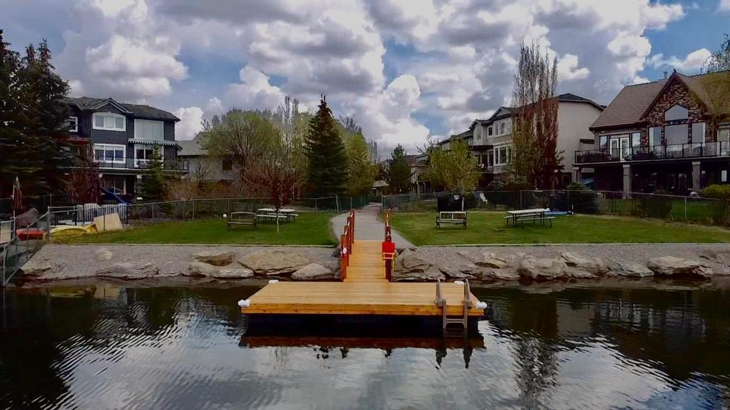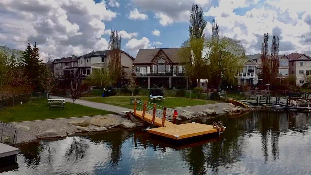 **Make your First Visit through the 3D tour** Rare opportunity to own this large and beautiful Lake Access home that is just 3 homes away from the shared dock in the heart of Lake Chaparral. This home has gone through quality renovations and has many upgrades throughout. Decorated in neutral colours, this home is sure to appeal to various decorating styles. Upon entry you will discover sanded and re-stained hardwood floors that carry you throughout the main floor along with 9 ft ceilings. In the front room there are opportunities that await the needs of your family, be it a front office, a dining room, a private sitting room, or a music room, the choice is yours! Continue to the back of the home where you will find the large kitchen with white cabinets, white quartz countertops, tiled backsplash, stately hood fan, stainless steel appliances and an enormous island with breakfast bar seating. The dining area is opened onto the kitchen allowing for countertop to table meals. Take the door outside to find a sunny south pie shaped backyard with huge deck, built in hot tub and private lake access to Lake Chaparral. Not only do you have your own exclusive lake access but you also get a nice park area between you and the other homes for that extra privacy unlike other lake access homes in Chaparral. Back inside, you can enjoy your time in the family room, which has a centered fireplace, loads of light from its large window and additional windows on either side of the fireplace. There is a main floor den that is spacious and allows for both a desk and multiple storage units. The main floor mud room is ready to handle a large family as there is a bench for seating, multiple storage spaces, and hooks for jackets or backpacks. Take the carpeted stairs up to find three bedrooms, including a primary bedroom with double French door entry. In the primary bedroom, you will be delighted to find large windows, a walk-through closet with a hidden laundry room that allows for the co nvenience of that chore to be on the upper level, as well as a renovated ensuite that has heated floors, a large glass shower, a soaker tub and a private toilet. The two kids room are a good size and share another renovated 4 pce bathroom. Downstairs there is an additional bedroom as well as two large lifestyle rooms, currently being used for a workout room and an awesome Movie room with a cozy fireplace . This home provides comfortable living for all, has been well taken care of and is located in a distinguished part of Lake Chaparral. The front driveway is oversized and can fit 4 cars, your boat or RV. It has ON demand hot water, fresh painting and AC. Close to the schools, stores, Fish Creek Park, major roadways and the hospital. Lake access homes don't come up very often in this price range. Do this for the family, you won't regret it! (id:22211)
