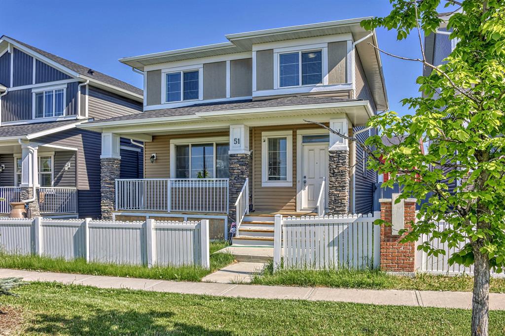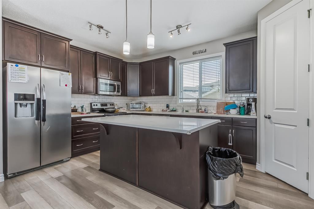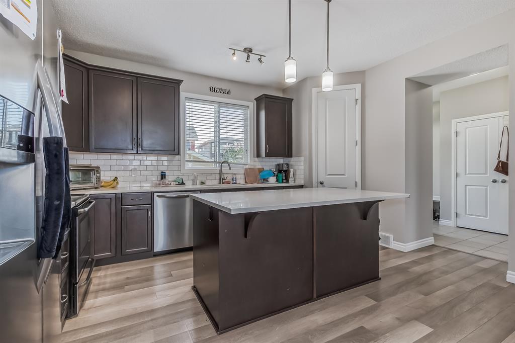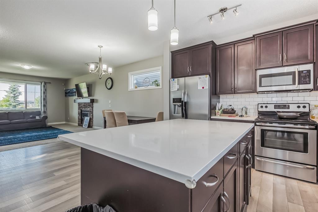 Welcome to the desire community of Redstone, features 2 storey home with over 2100 SQFT of total UPGRADED space As you enter this home, you have a large foyer w/ storage closet & built-in bench, great for tucking away outerwear! The foyer opens into the cozy living room finished with plush carpet & centered around a stunning grey stone gas fireplace with custom mantel and large window overlooking the front yard! Just off the living room, you have a home office that includes a large window, brightening the space. The main living space of this home is designed with an open floorplan, faux luxury flooring and neutral tones, elevating the space! The dining room is spacious and inviting for family meals. The kitchen has been fully upgraded with pristine white stone countertops, shaker style dark cabinetry w/silver hardware, stylish white tile backsplash, dual basin undermount sink, feature pendant lighting, walk-in pantry, stand-alone kitchen island w/breakfast bar for informal meals and a stainless steel appliance package including french door refrigerator w/freezer /ice maker, built-in dishwasher, electric cook top, & over the range microwave – amazing for any home chef! The main floor is complete with a tiled mudroom leading through a door onto the back deck & guest 2pc bathroom, nicely tucked away! The upper level of this home is finished with plush grey carpet and offers a great bonus room, customizable to your liking! The primary master is good sized and has a huge dual walk-in closet along with a private 5pc ensuite with dual sink vanity, great soaker tub with tile surround, tile flooring, stand-alone glass shower & private water closet! The additional 2 bedrooms are great sized and each offer great windows & closets! A shared 4pc bathroom with tub/shower combo and separate laundry room with side-by-side washer and dryer & built-in MDF wiring racks nicely round off the upper level! The basement of this home is unfinished with open concept spaces and completely cus tomizable to your liking! The South facing backyard is fully fenced and landscaped with a raised deck, concrete walkway & access to the detached garage! Located in the vibrant community of Redstone & just minutes from various parks, amenities & easy access to Stoney Trail, this home is a MUST SEE!!! (id:22211)