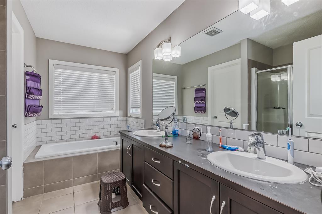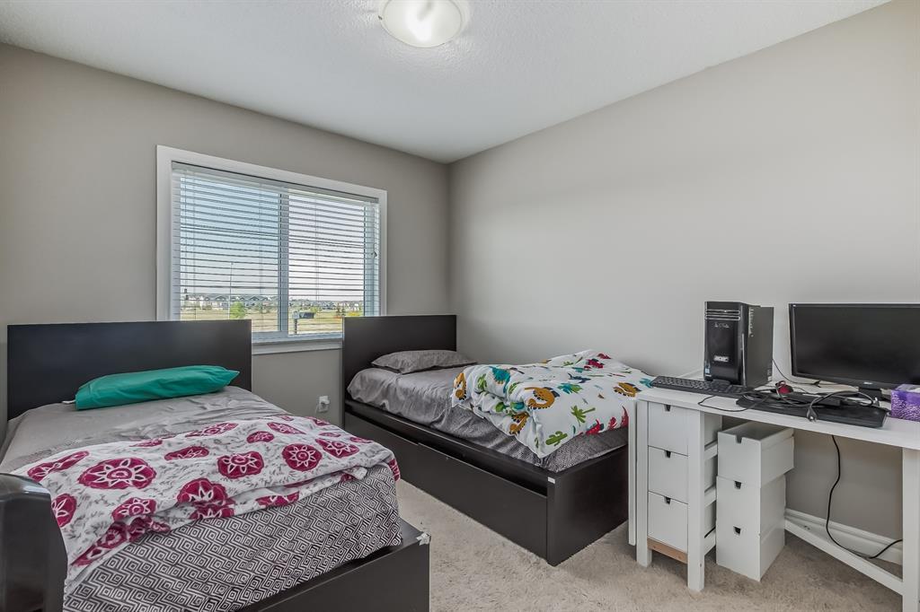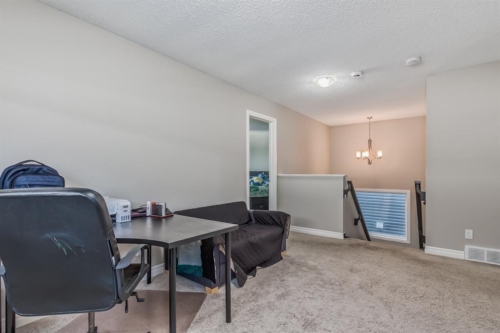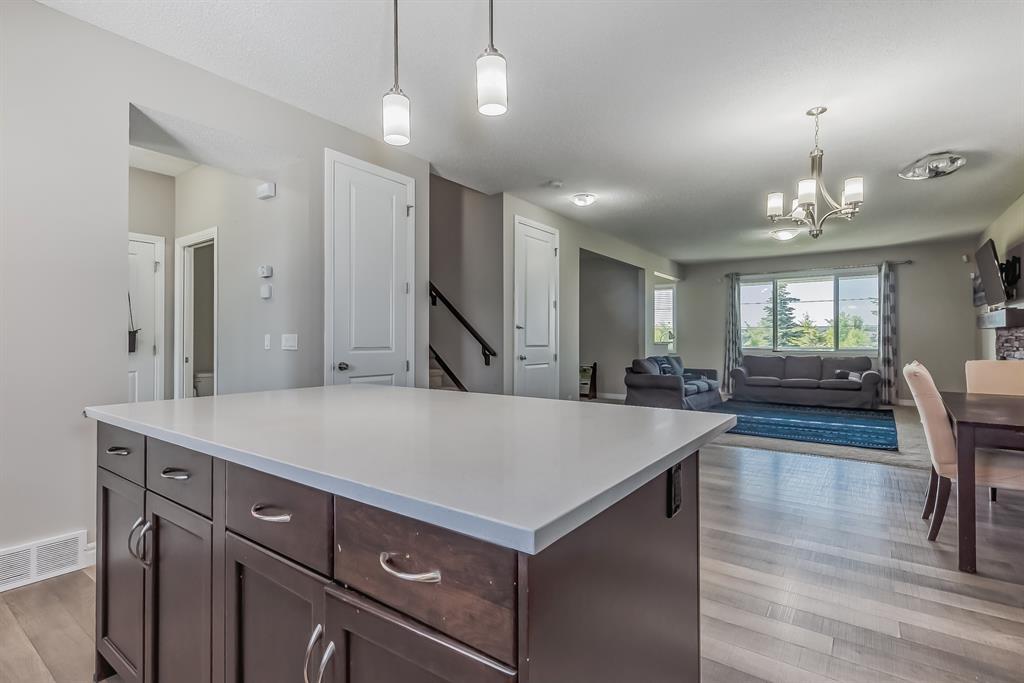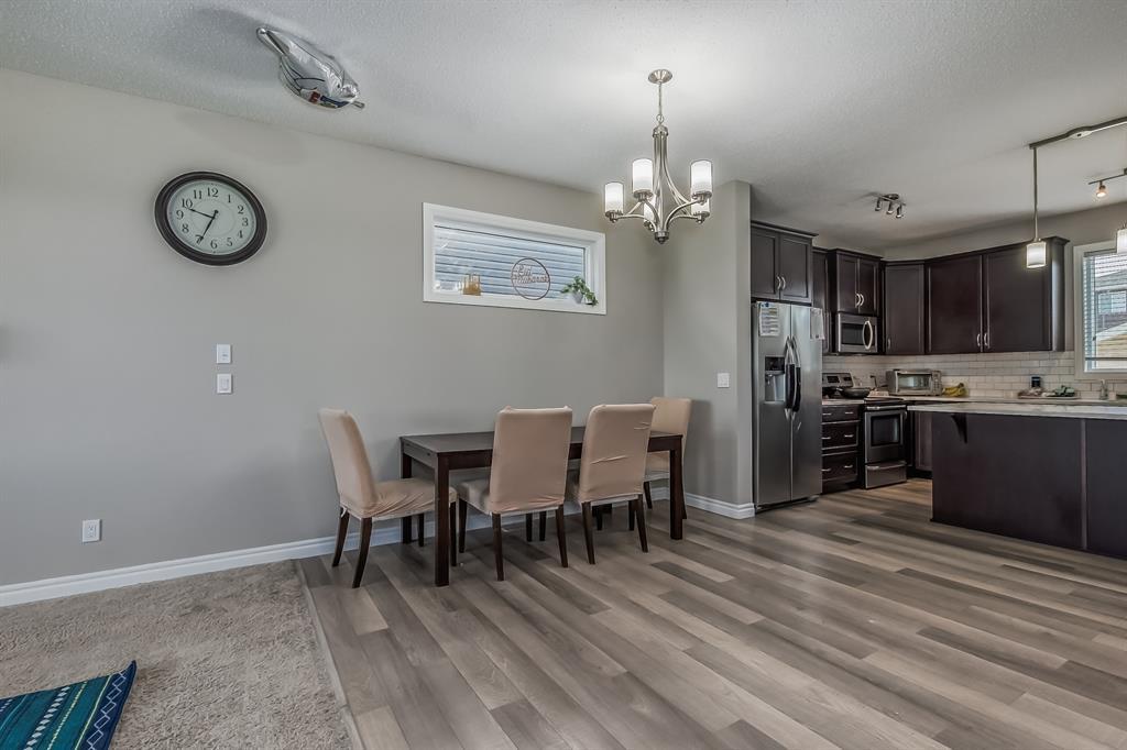 Welcome to the desire community of Redstone, features 2 storey home with over 2100 SQFT of total UPGRADED space As you enter this home, you have a large foyer w/ storage closet & built-in bench, great for tucking away outerwear! The foyer opens into the cozy living room finished with plush carpet & centered around a stunning grey stone gas fireplace with custom mantel and large window overlooking the front yard! Just off the living room, you have a home office that includes a large window, brightening the space. The main living space of this home is designed with an open floorplan, faux luxury flooring and neutral tones, elevating the space! The dining room is spacious and inviting for family meals. The kitchen has been fully upgraded with pristine white stone countertops, shaker style dark cabinetry w/silver hardware, stylish white tile backsplash, dual basin undermount sink, feature pendant lighting, walk-in pantry, stand-alone kitchen island w/breakfast bar for informal meals and a stainless steel appliance package including french door refrigerator w/freezer /ice maker, built-in dishwasher, electric cook top, & over the range microwave – amazing for any home chef! The main floor is complete with a tiled mudroom leading through a door onto the back deck & guest 2pc bathroom, nicely tucked away! The upper level of this home is finished with plush grey carpet and offers a great bonus room, customizable to your liking! The primary master is good sized and has a huge dual walk-in closet along with a private 5pc ensuite with dual sink vanity, great soaker tub with tile surround, tile flooring, stand-alone glass shower & private water closet! The additional 2 bedrooms are great sized and each offer great windows & closets! A shared 4pc bathroom with tub/shower combo and separate laundry room with side-by-side washer and dryer & built-in MDF wiring racks nicely round off the upper level! The basement of this home is unfinished with open concept spaces and completely cus tomizable to your liking! The South facing backyard is fully fenced and landscaped with a raised deck, concrete walkway & access to the detached garage! Located in the vibrant community of Redstone & just minutes from various parks, amenities & easy access to Stoney Trail, this home is a MUST SEE!!! (id:22211)