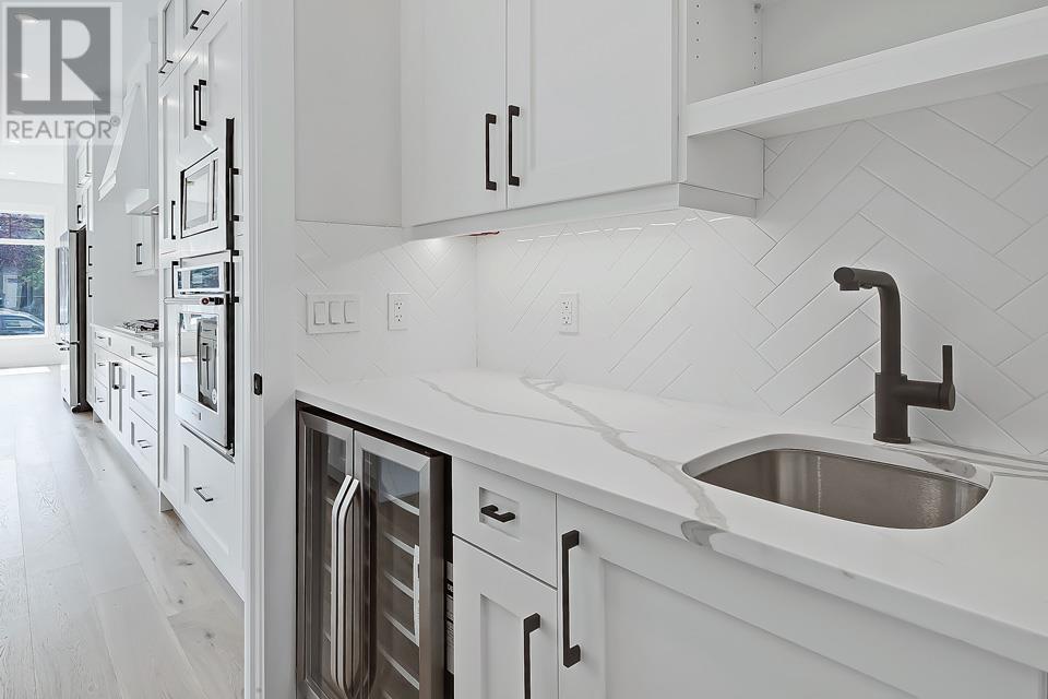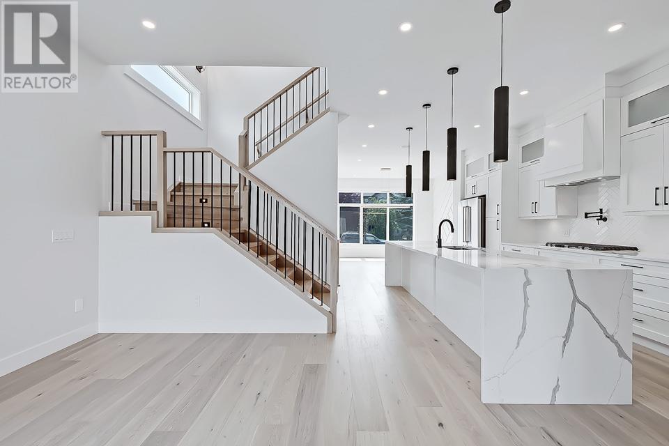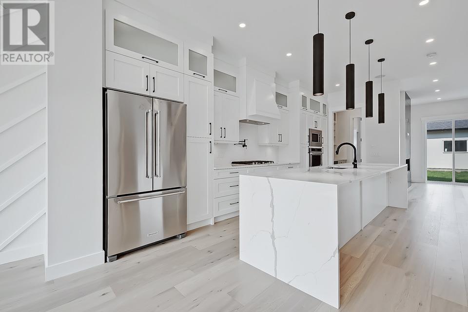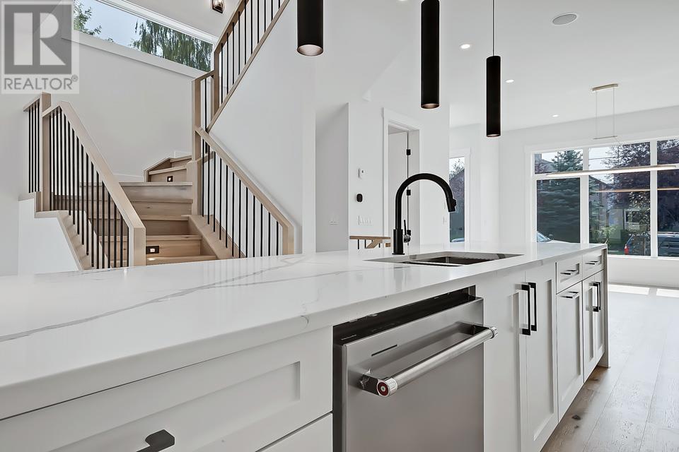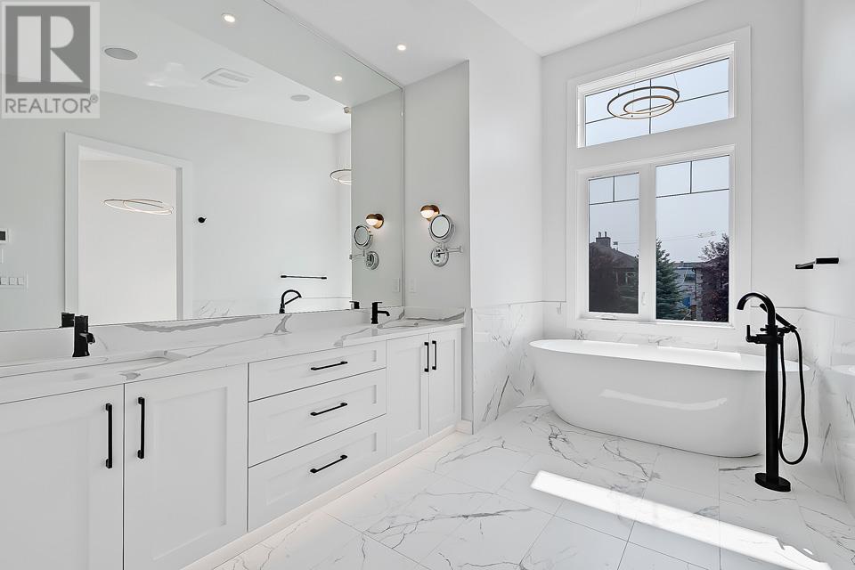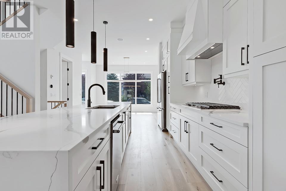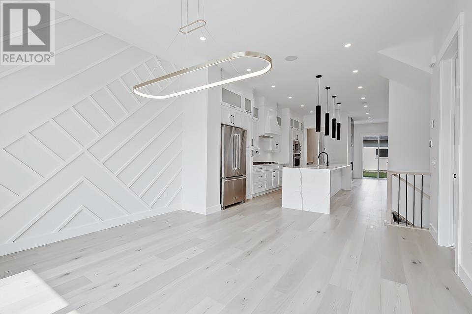 SEMI-DETACHED INFILL WITH 2 BEDROOM LEGAL BASEMENT SUITE IN WINSTON HEIGHTS | Built on a quiet street with a SOUTH backyard, this BRAND-NEW semi-detached infill by Ace Homes is currently under construction and offers top-notch finishes & features over 2740 sq ft of developed living space across 5 beds, 3.5 baths, and a highly desirable TWO BED LEGAL BASEMENT SUITE (subject to permits & approval by city). Winston Heights is the ideal inner-city community for any active family surrounded by parks, running/biking paths, The Winston golf course, and the Winston Heights Off Leash area is at the end of the street so your furry friends can stay active too! The open-concept main floor features a chef's inspired kitchen with ceiling-height custom cabinetry, a modern tile backsplash, full pantry wall, designer pendant lights, and a huge island with ample bar seating, plus under counter feature lighting and a walkthrough butler's pantry for an ultra-lux aesthetic. The spacious living room centres on a stunning gas fireplace feature wall with a full-height tile surround & built-in cabinetry. Off this space, you have easy access to the rear deck and backyard through dual glass sliding doors, nicely combining your indoor/outdoor living spaces. Finishing off this level, the large dining room offers a custom feature wall and oversized windows, allowing lots of natural light into the home. Upstairs the elegant master suite features soaring vaulted ceilings, oversized windows, and a walk-in closet with ample storage so no fighting over closet space! The spa inspired master en-suite is elegantly finished with heated tile floors, quartz countertops, dual undermount sinks, a stand alone soaker tub, and a stunning glass shower with built-in bench. Two additional good sized bedrooms open onto a large BONUS ROOM with custom built-ins, perfect for an additional office or flex space for the family. Nicely finishing off the upper floor is a 4-piece bathroom with tile floors, a modern vanity and a fully-tiled tub/shower combo. With its own private, secure side entrance, the legal basement suite (subject to permits & approval by the city) is an excellent mortgage helper or mother-in-law suite! This open concept space features a kitchen w/custom cabinetry, quartz countertops, lots of upper & lower cabinets, and an island and a good sized living room. Two bedrooms are on opposite sides of the suite and are ideal for roommates! Winston Heights is a lovely family community w/ lots of new developments, making the area an excellent choice for young families or professionals looking for a convenient location to fit into their lifestyle. Local amenities include Lina’s Italian Market & Café, Rosso Coffee Roasters, the Italian market & CO-OP for day to day shopping. There are many other options a short walk, bike, or drive along 16th Ave or down Edmonton Trail, which will also take you over to Deerfoot, Crowchild, or DT for a quick commute. This home is under construction & can be fully customized! (id:22211)