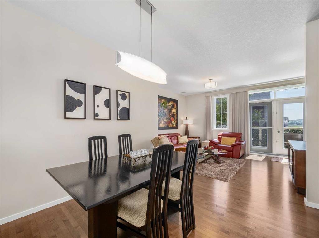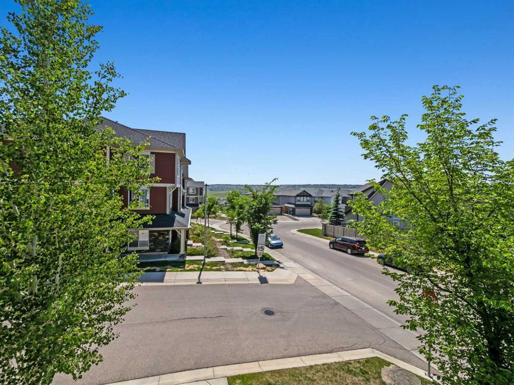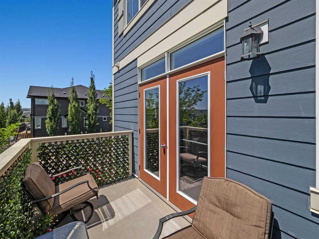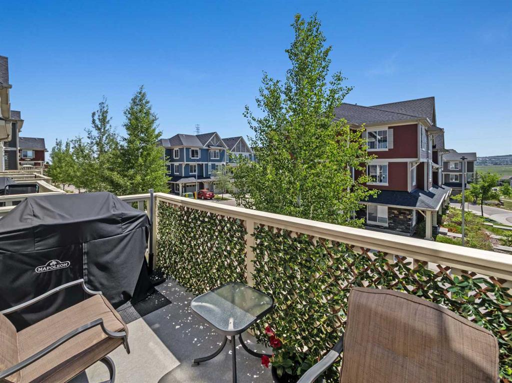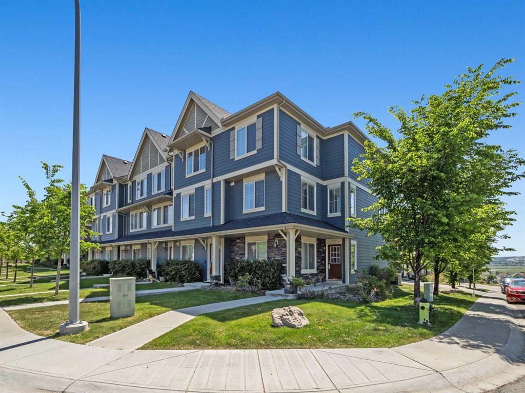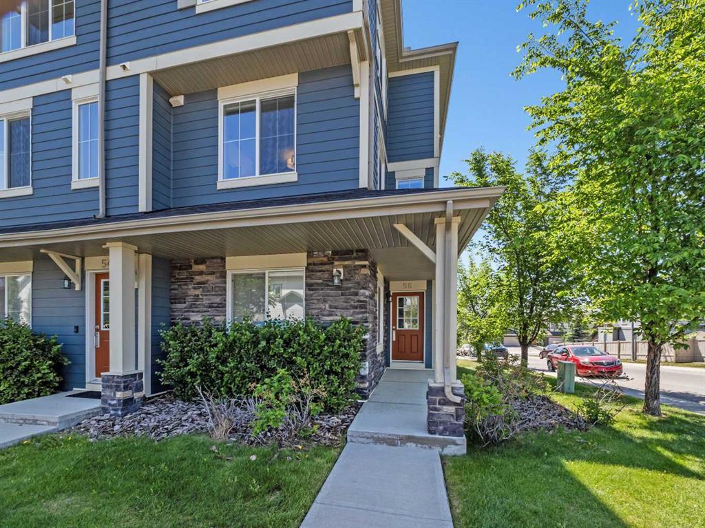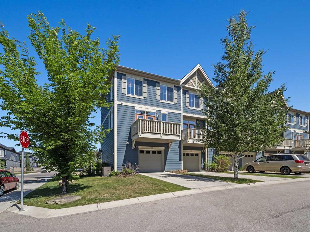 Welcome to 56 Evansview Rd NW. This corner unit townhome has only had one owner and the pride of ownership is evident. This townhome epitomizes elegance, sophistication, and contemporary living. This property offers a host of exceptional features, including 3 bedrooms and 2.5 bathrooms, a double tandem garage, stainless steel appliances, and breathtaking views. Additional features include custom surround sound speakers in the living room, Upgraded lighting throughout the house and Central A/C and VAC. The open kitchen boasts a custom built-in island as well as a breakfast bar, good cabinet storage, a pantry and beautiful Caesar stone countertops. Enjoy the adjacent dining area and large, bright living room on the main floor with built-in custom surround sound speakers, as well as well-kept hardwood floors. This leads to a south facing balcony that has always been well maintained with exceptional views and a convenient gas line for a BBQ. 9 ft ceilings and a half bath complete this level. Upstairs you will find three good sized bedrooms with large windows to take in the amazing views, one of which has an upgraded Murphy bed. Also included are two full bathrooms. One being the ensuite of the master bedroom which is accompanied with a walk in closet. The hallway has convenient laundry with high end LG steam washer and dryer and linen/storage closets. The heated double tandem garage is fully drywalled and has plenty of built in storage as well as an extra wide nook. You will also find a full size driveway and additional off-street parking, perfect for guests! Enjoy the green space close by, with easy access to pathways, and a short walk to shopping, schools, and transit. All amenities, shopping/grocery stores, parks/greenspace are within walking distance. Quick access to major roads, including Stoney Trail, Deerfoot Trail, Country Hills Blvd, and Beddington Trail, complete this desirable property. This one is a must see! Don't miss out on the chance to make this amazing property your own, book your showing today! (id:22211)