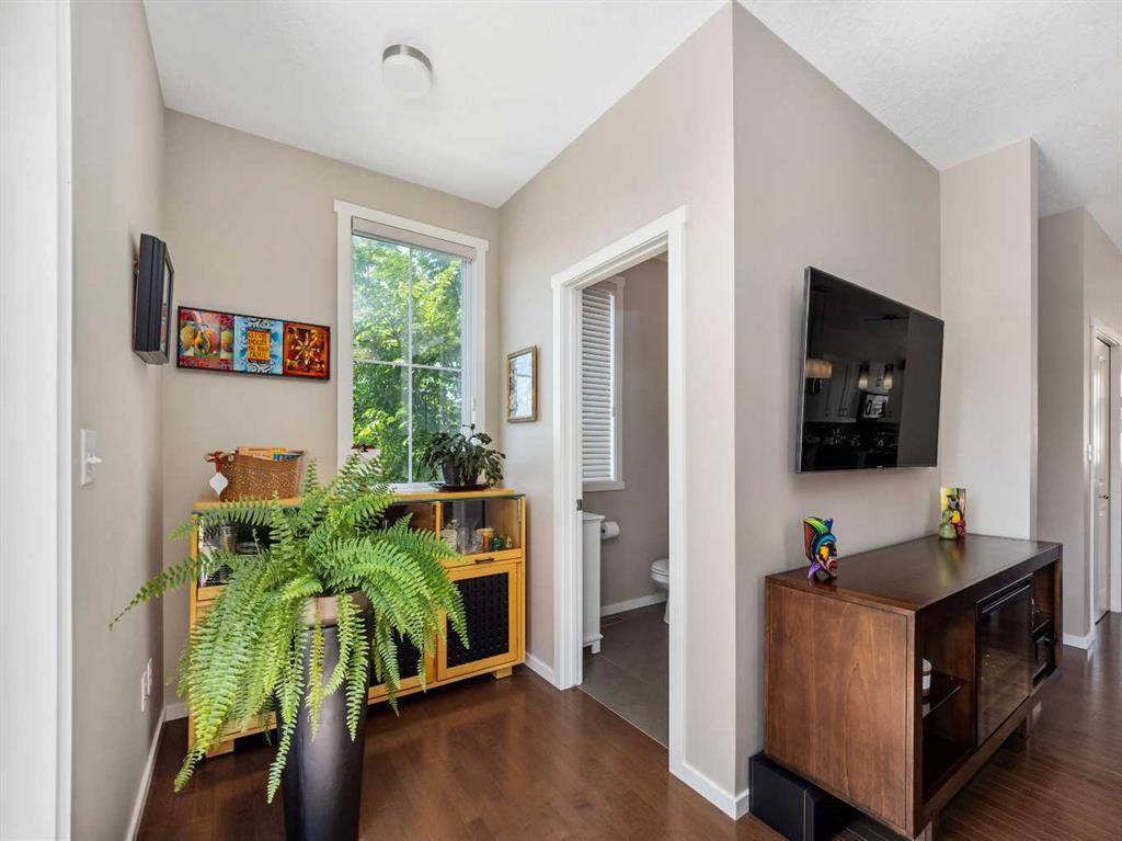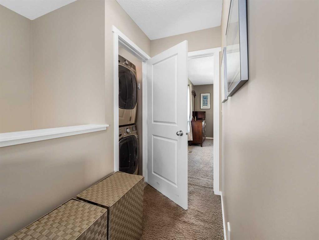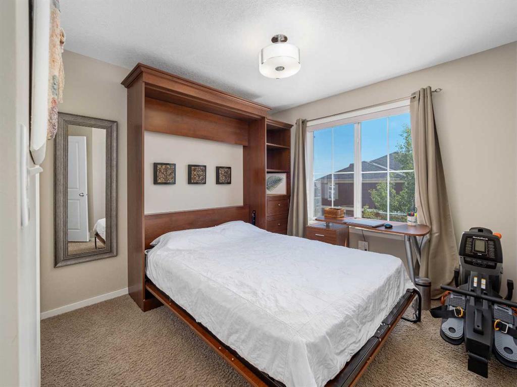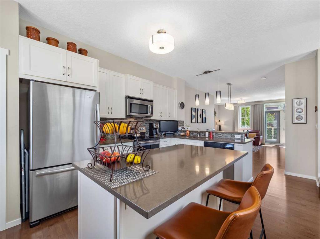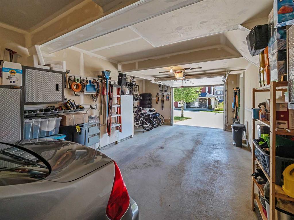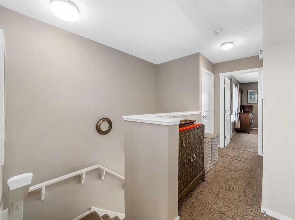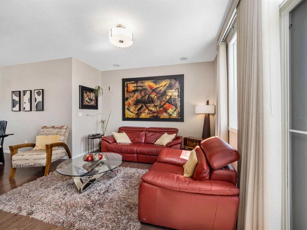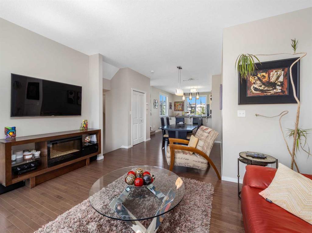 Welcome to 56 Evansview Rd NW. This corner unit townhome has only had one owner and the pride of ownership is evident. This townhome epitomizes elegance, sophistication, and contemporary living. This property offers a host of exceptional features, including 3 bedrooms and 2.5 bathrooms, a double tandem garage, stainless steel appliances, and breathtaking views. Additional features include custom surround sound speakers in the living room, Upgraded lighting throughout the house and Central A/C and VAC. The open kitchen boasts a custom built-in island as well as a breakfast bar, good cabinet storage, a pantry and beautiful Caesar stone countertops. Enjoy the adjacent dining area and large, bright living room on the main floor with built-in custom surround sound speakers, as well as well-kept hardwood floors. This leads to a south facing balcony that has always been well maintained with exceptional views and a convenient gas line for a BBQ. 9 ft ceilings and a half bath complete this level. Upstairs you will find three good sized bedrooms with large windows to take in the amazing views, one of which has an upgraded Murphy bed. Also included are two full bathrooms. One being the ensuite of the master bedroom which is accompanied with a walk in closet. The hallway has convenient laundry with high end LG steam washer and dryer and linen/storage closets. The heated double tandem garage is fully drywalled and has plenty of built in storage as well as an extra wide nook. You will also find a full size driveway and additional off-street parking, perfect for guests! Enjoy the green space close by, with easy access to pathways, and a short walk to shopping, schools, and transit. All amenities, shopping/grocery stores, parks/greenspace are within walking distance. Quick access to major roads, including Stoney Trail, Deerfoot Trail, Country Hills Blvd, and Beddington Trail, complete this desirable property. This one is a must see! Don't miss out on the chance to make this amazing property your own, book your showing today! (id:22211)