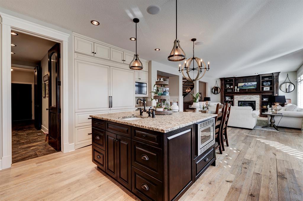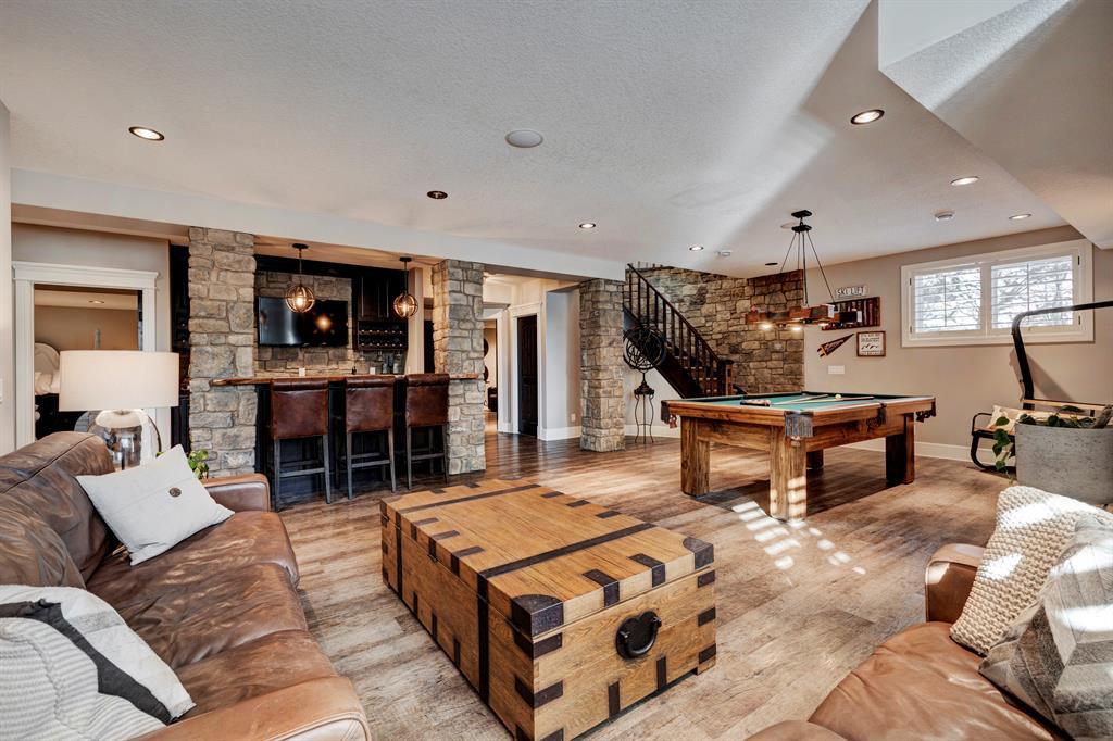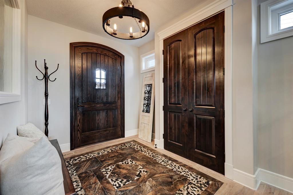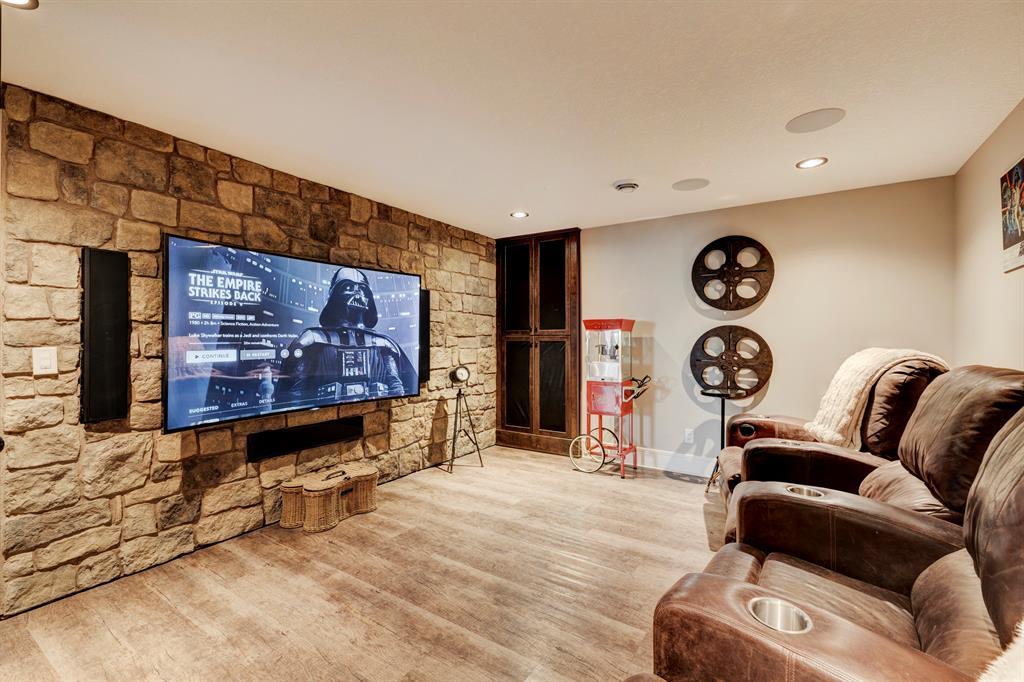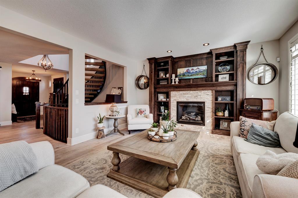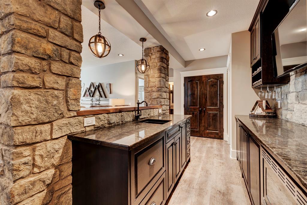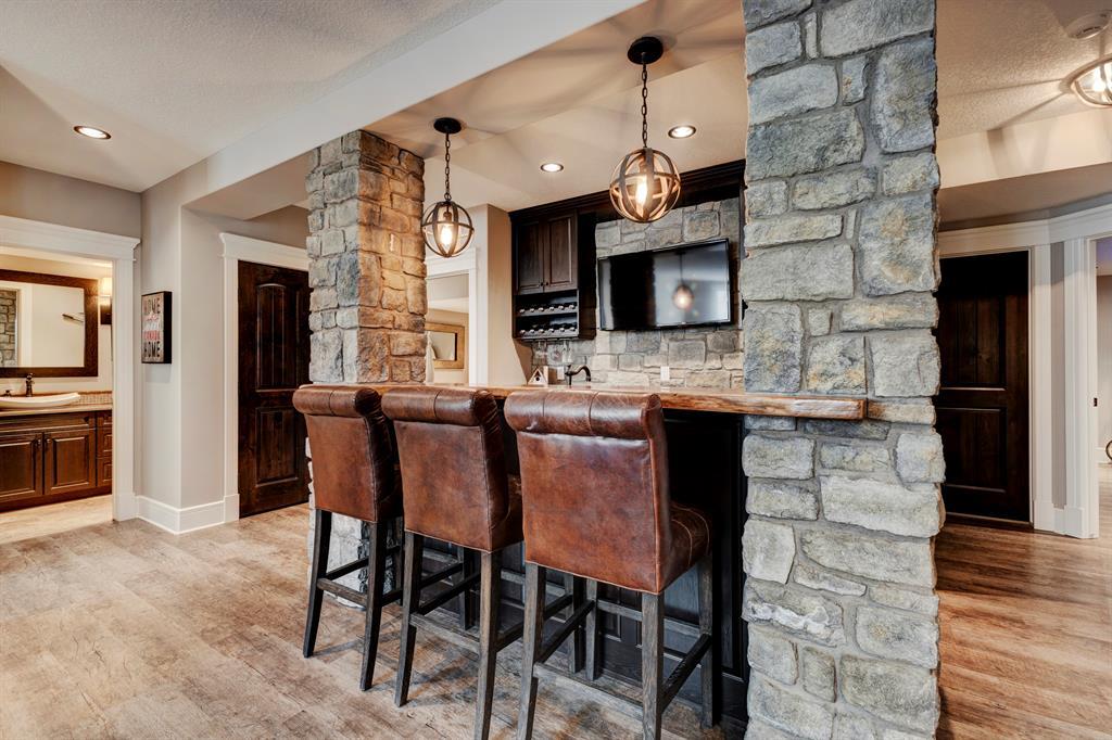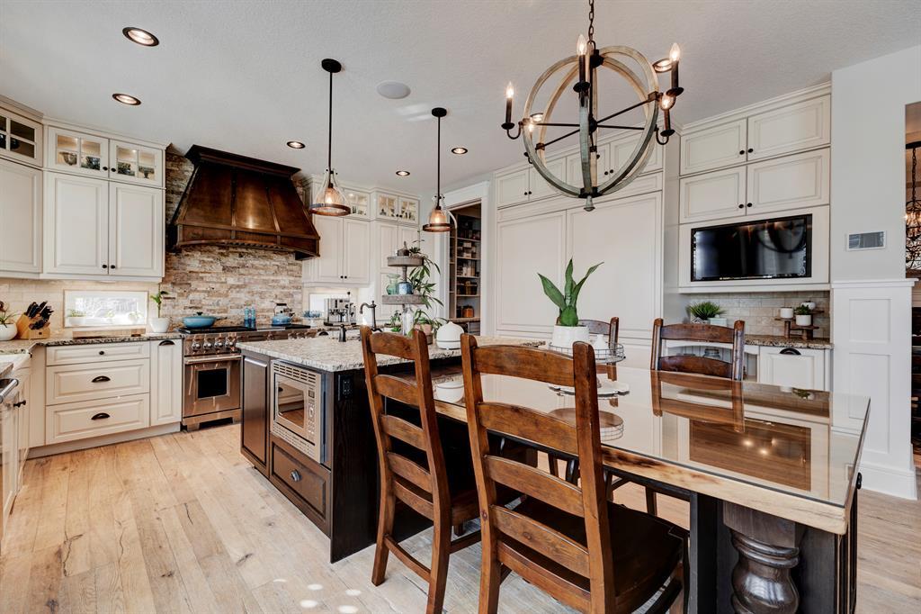 Proudly presenting this incredibly upgraded traditional style home built by Augusta Fine Homes. Perfectly located on a 7800 square foot pie shaped lot in West Grove Estates, this estate home offers nearly 5000 square feet of living space. The stone exterior and custom maple front door built by Black Forest Wood Co. set the tone for the interior of the home. The main level features Du-Chateau heritage timber hardwood floors throughout including tile inlays in the entrance foyer and formal dining room. Wood beams and built-ins as well as upgraded lighting accent the main floor den and formal dining room. The chef’s kitchen has an incredible appliance package including the 6 burner Wolf stove with dual convection ovens and open flame grill station, dual Sub Zero refrigerator and freezer with cabinet matching panel faces, Sub Zero wine fridge and an urban cultivator in the butlers pantry. The live edge built in table and 8’ solid core knotty alder doors were custom made for the home by Black Forest Wood Co. Just off the kitchen is a spacious family room with beautiful built-ins and a gas burning fireplace. The primary retreat has 10’ ceilings, 2-sided gas fireplace with a stone mantle and ceiling hung pendant lights with bedside switches. The luxurious 5-piece ensuite has a large shower with multiple shower heads that can be digitally set to multiple users. Relax and enjoy the two-sided gas fireplace from the spacious bathtub. Conveniently located off the ensuite bath is the laundry room with pull out racks, ironing board and a sink. The second and third bedrooms both have walk-in closets and 4-piece ensuite bathrooms. The upper level is rounded out by a beautiful bonus room with a custom wood built in bookshelf and entertainment center. Head down the stone facing curved staircase to the incredible fully developed basement. Entertain guests at the wet bar that has a bar fridge, ice maker, dishwasher, microwave and an adjustable TV. Family movie nights can be enjoyed in the theatre room. The balance of the basement are two bedrooms, a full bathroom and plenty of storage space. The huge, low maintenance backyard has a custom stone fireplace with slate mantle, irrigation system, under deck storage area and is all done in patio pavers. The triple over-sized, heated garage has epoxy flooring, built-in storage and a dog wash. Located on a quiet estate street and just a short drive to Weber Academy, Calgary Academy, Rundle College and the French International School your children will have no shortage of school options. This home has too many upgrades to list and must be seen in person to appreciate. Call today for your own private viewing. (id:22211)