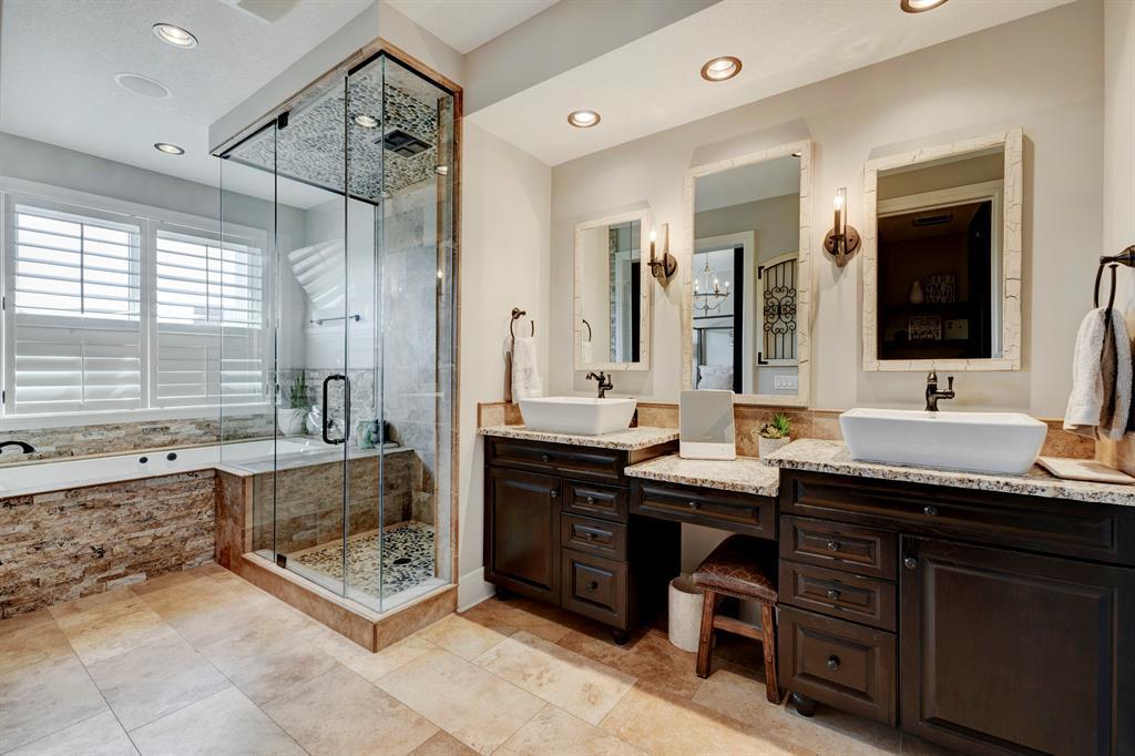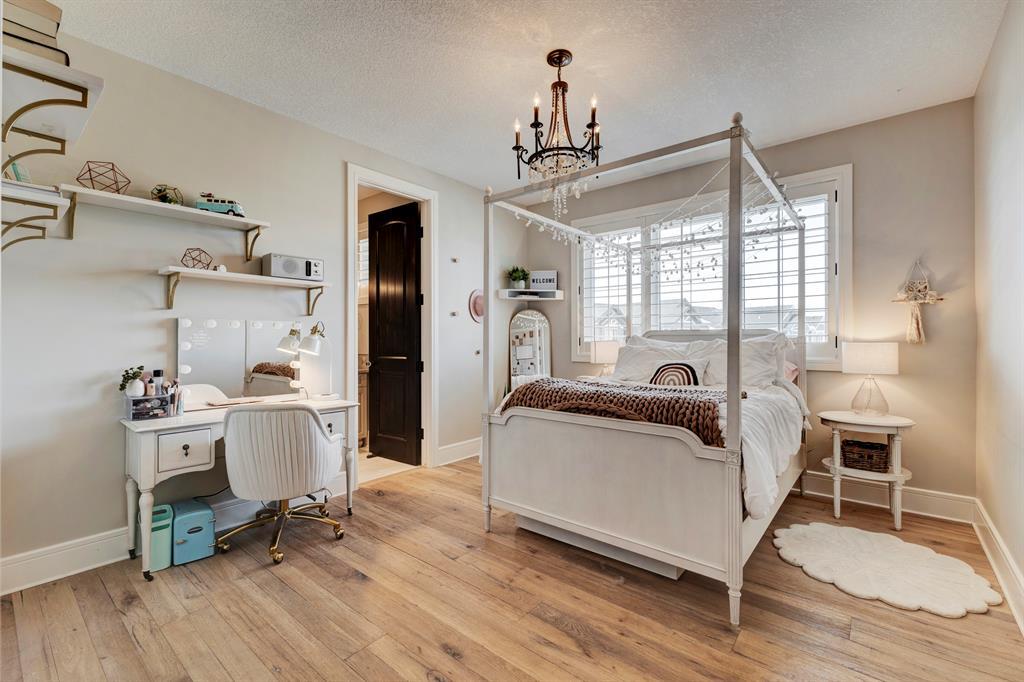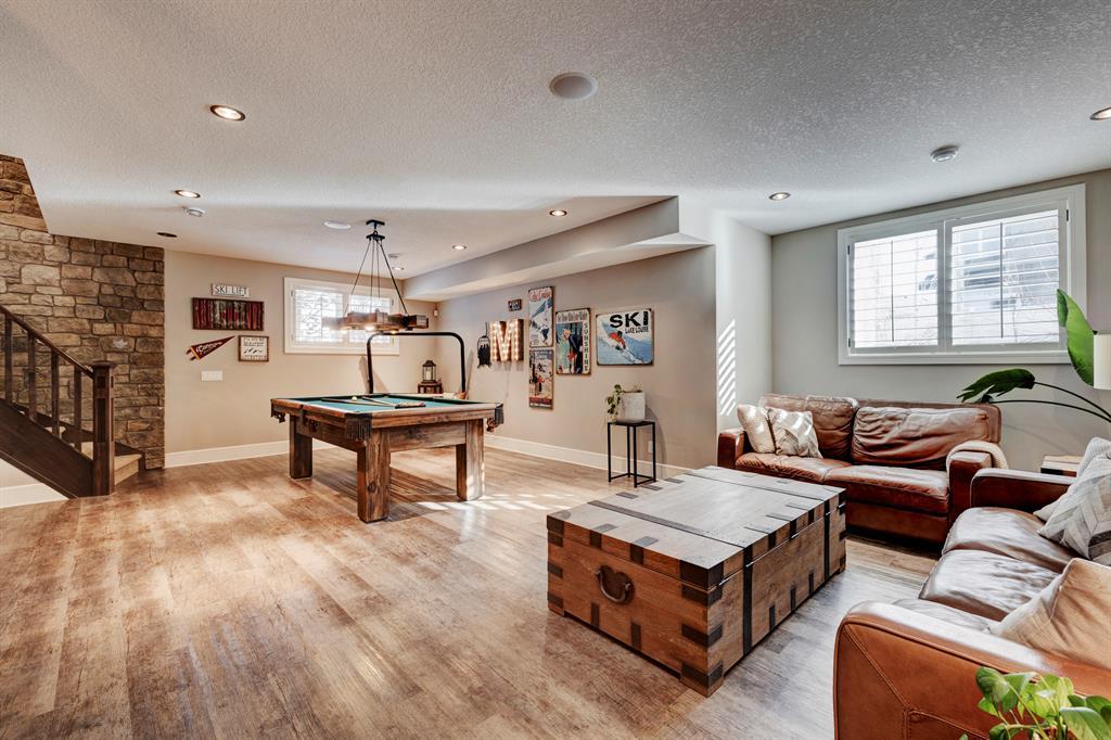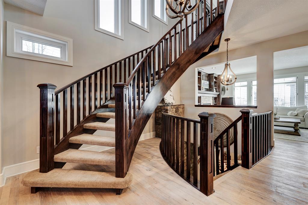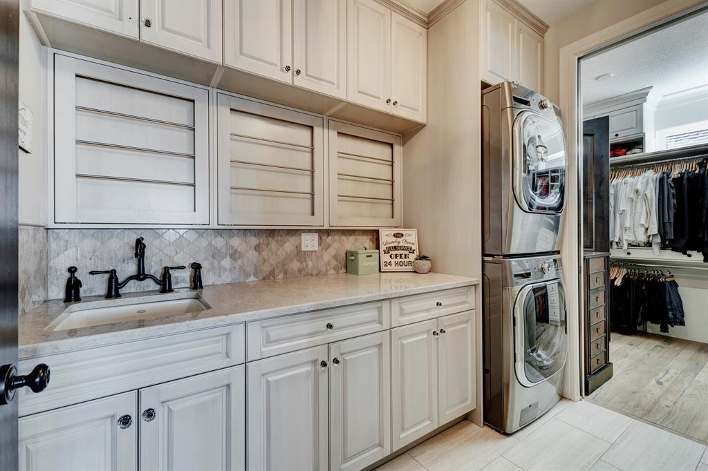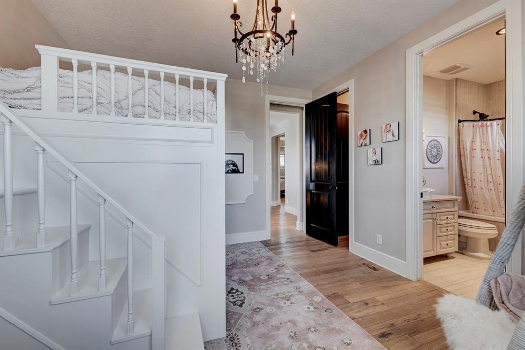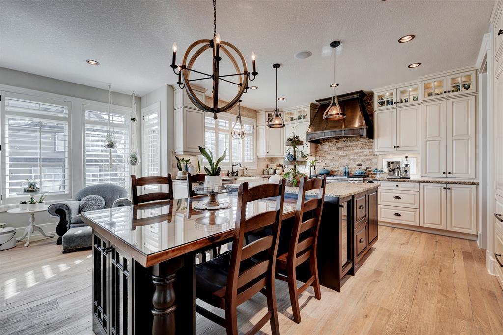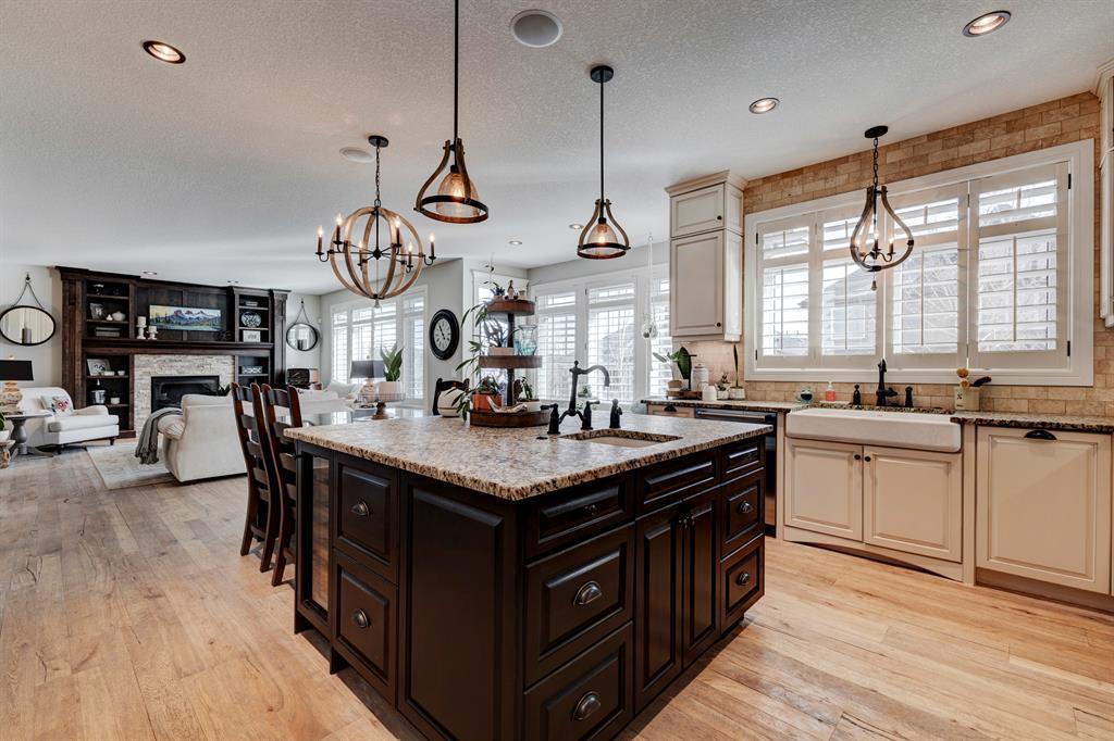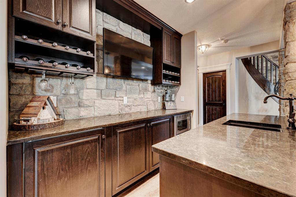 Proudly presenting this incredibly upgraded traditional style home built by Augusta Fine Homes. Perfectly located on a 7800 square foot pie shaped lot in West Grove Estates, this estate home offers nearly 5000 square feet of living space. The stone exterior and custom maple front door built by Black Forest Wood Co. set the tone for the interior of the home. The main level features Du-Chateau heritage timber hardwood floors throughout including tile inlays in the entrance foyer and formal dining room. Wood beams and built-ins as well as upgraded lighting accent the main floor den and formal dining room. The chef’s kitchen has an incredible appliance package including the 6 burner Wolf stove with dual convection ovens and open flame grill station, dual Sub Zero refrigerator and freezer with cabinet matching panel faces, Sub Zero wine fridge and an urban cultivator in the butlers pantry. The live edge built in table and 8’ solid core knotty alder doors were custom made for the home by Black Forest Wood Co. Just off the kitchen is a spacious family room with beautiful built-ins and a gas burning fireplace. The primary retreat has 10’ ceilings, 2-sided gas fireplace with a stone mantle and ceiling hung pendant lights with bedside switches. The luxurious 5-piece ensuite has a large shower with multiple shower heads that can be digitally set to multiple users. Relax and enjoy the two-sided gas fireplace from the spacious bathtub. Conveniently located off the ensuite bath is the laundry room with pull out racks, ironing board and a sink. The second and third bedrooms both have walk-in closets and 4-piece ensuite bathrooms. The upper level is rounded out by a beautiful bonus room with a custom wood built in bookshelf and entertainment center. Head down the stone facing curved staircase to the incredible fully developed basement. Entertain guests at the wet bar that has a bar fridge, ice maker, dishwasher, microwave and an adjustable TV. Family movie nights can be enjoyed in the theatre room. The balance of the basement are two bedrooms, a full bathroom and plenty of storage space. The huge, low maintenance backyard has a custom stone fireplace with slate mantle, irrigation system, under deck storage area and is all done in patio pavers. The triple over-sized, heated garage has epoxy flooring, built-in storage and a dog wash. Located on a quiet estate street and just a short drive to Weber Academy, Calgary Academy, Rundle College and the French International School your children will have no shortage of school options. This home has too many upgrades to list and must be seen in person to appreciate. Call today for your own private viewing. (id:22211)