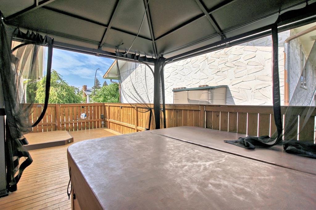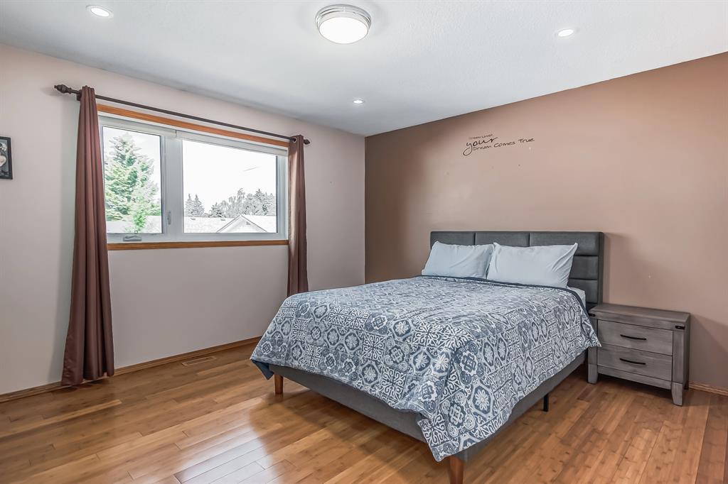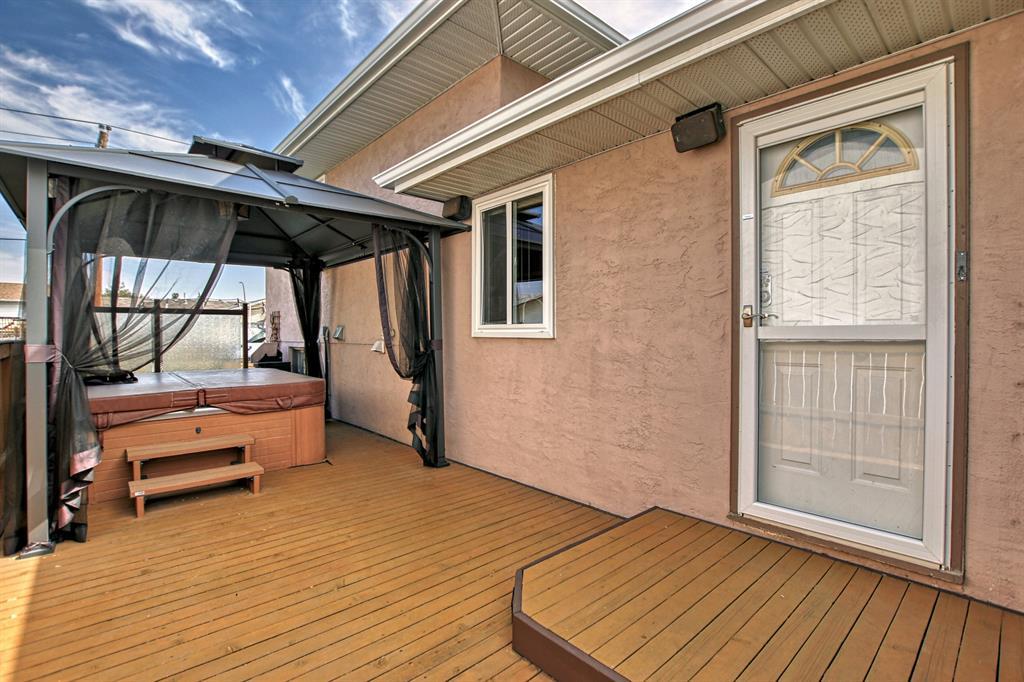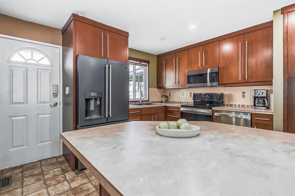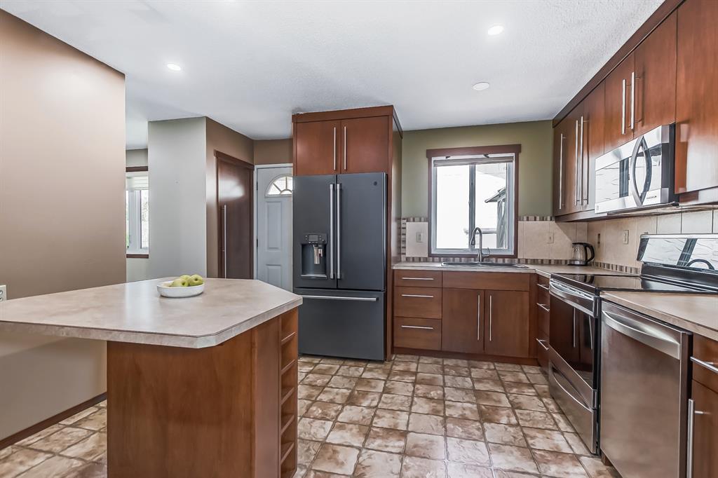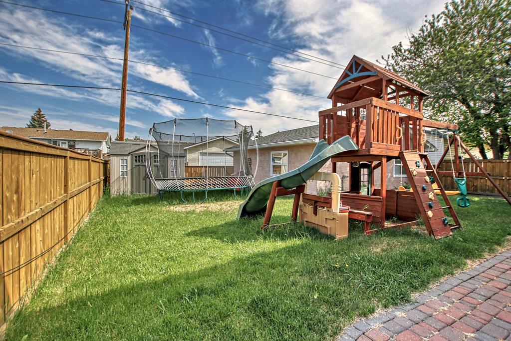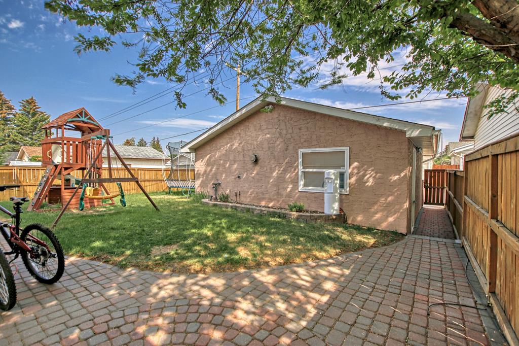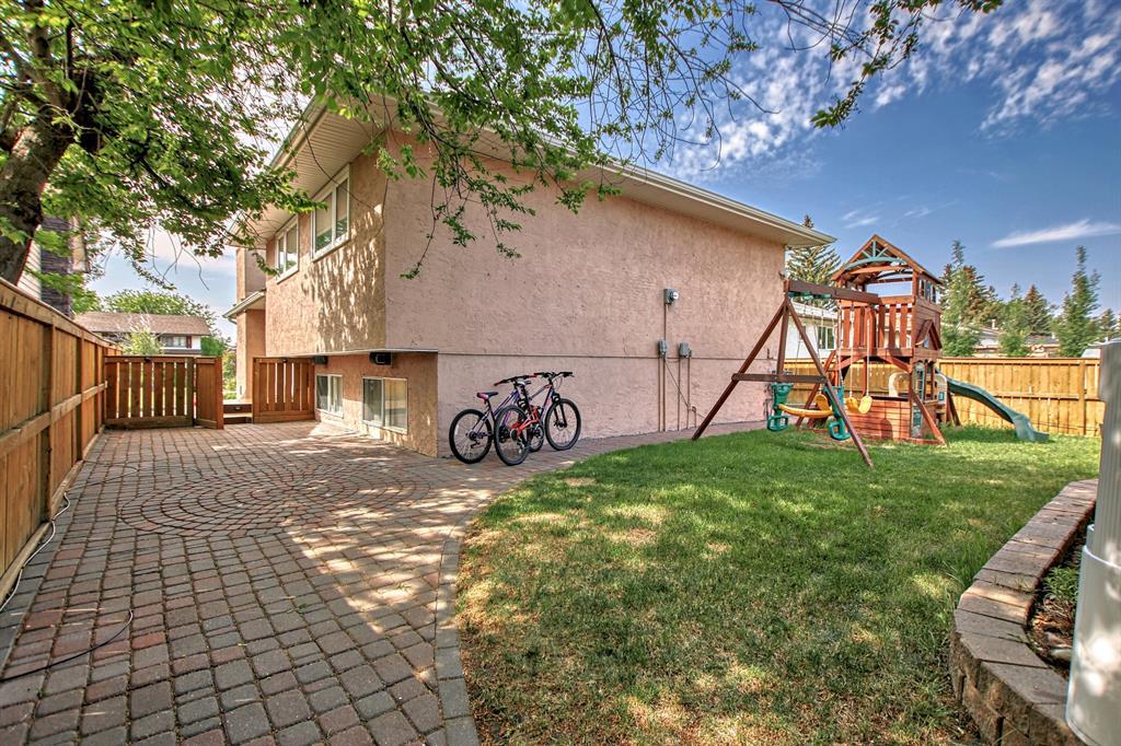 This meticulously maintained and beautifully updated home is a true gem! With 4 bedrooms and 2 baths, it offers a spacious and inviting living space of 1579 sqft. As you enter through the front door, you'll be greeted by a bright and open floor plan that caters to both formal and informal gatherings, making it perfect for entertaining. One of the highlights of the living room is a stunning brick wood-burning fireplace, creating a cozy atmosphere for making cherished memories with loved ones. The gourmet kitchen is a chef's dream, featuring premium "Elite" grade kitchen appliances, custom-built maple cabinets and drawers with soft-close mechanisms, ample counter space including two pantries, and an island for added convenience. The lower level of the home has been thoughtfully designed and includes a laundry room, a spacious family room with high-quality laminate flooring and an insulated sub-floor to keep the space warm and cozy. Additionally, there is a good-sized bedroom and full bath. Stepping outside, you'll discover a large backyard that serves as your private oasis. It features a fantastic patio for outdoor relaxation and entertainment, complete with a built-in 5-7 person hot tub enclosed by a glass privacy screen. The landscaping is tastefully done with paving stones, poured walkways, and flower beds, all of which are beautifully illuminated at night by landscape lighting on timers. For added convenience, the property includes a double detached insulated and wired garage with a paved back lane. Other notable features of this move-in ready home include new carpet in the living room, dining room, and hallway, a new hot water tank, a newer furnace, newer central AC, newer roof, premium windows, a 10-foot gate for future RV pad consideration, a shed on a solid wooden base, and more. Located in an amazing neighborhood, this home offers easy access to various amenities, shopping centers, and the Village Square Leisure Centre, all just minutes away. It is also withi n walking distance of playgrounds and four schools, making it a convenient choice for families. Don't miss the opportunity to make this outstanding property your own—it's sure to captivate you from the moment you step inside! (id:22211)