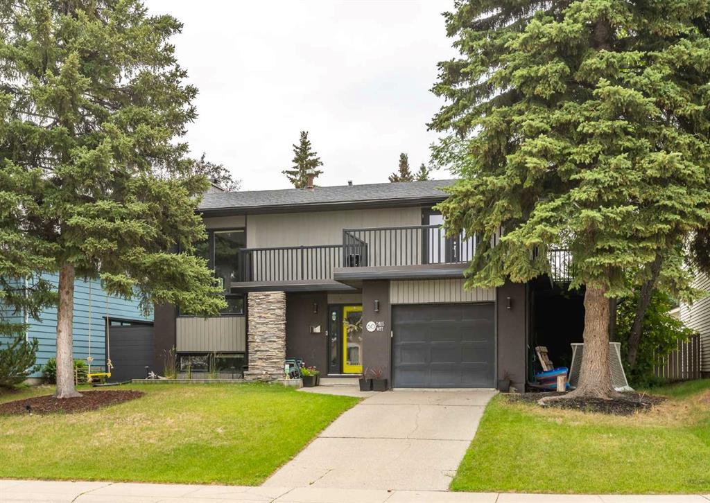 A prime Palliser location with an oversized south rear yard! This fabulous contemporary home still requires some TLC, yet it is still tastefully upgraded with sleek modern finishes throughout. A spacious front entry leads into an inviting combined dining room and kitchen with direct access to a sunny rear yard patio. Adjacent to the kitchen is an exercise or bonus room with a sauna - perfect for those looking to incorporate a fitness routine into their daily lives. This area can also serve as a home office or recreational space, adding versatility to the property. The second-level living room offers high ceilings and a wood-burning fireplace, creating a cozy and inviting atmosphere with plenty of options for furniture placement. Large picture windows allow for an abundance of natural light, further enhancing the overall ambiance of the space. The upper level features 3 bedrooms, including the primary bedroom with a 2 pc ensuite and its own balcony - a parents' private retreat. One of the upper secondary bedrooms also has access to a balcony, providing additional outdoor space. Completing the home is the lower level which highlights a bedroom and a cozy family room. This unique property also boasts a single front attached garage and a double rear heated detached garage - ample indoor parking space or additional storage options. Well-loved and tastefully upgraded, Come and discover living in this family-friendly community and within walking distance to excellent public schools, Glenmore Reservoir, public parks and all major amenities. (id:22211)