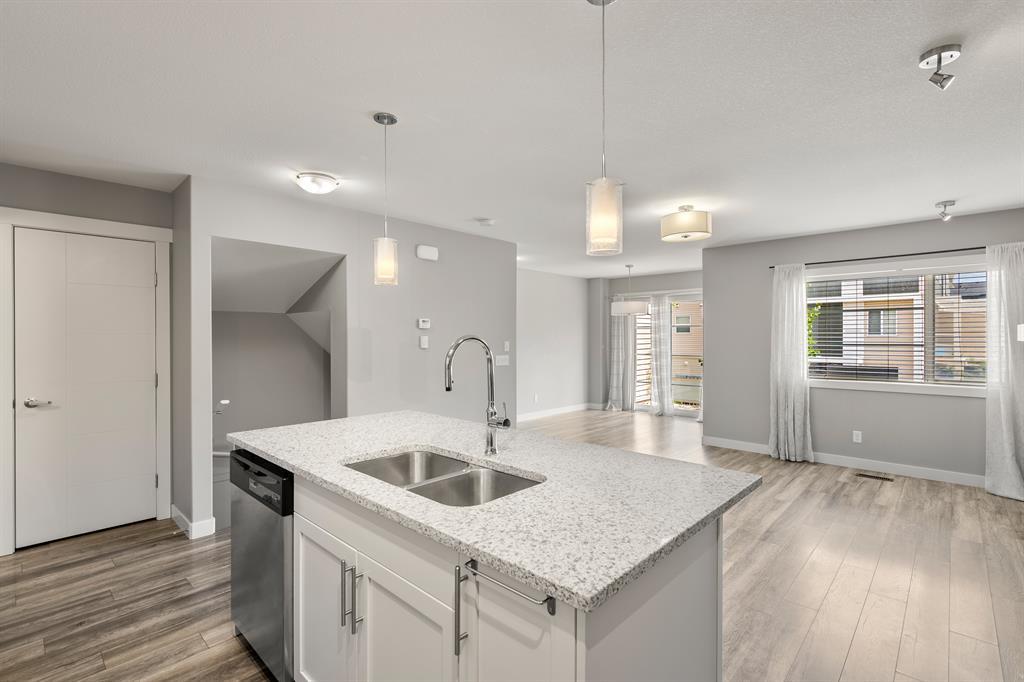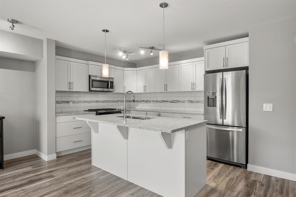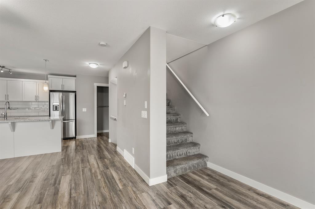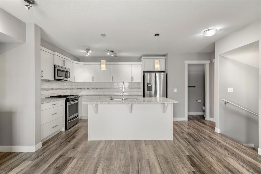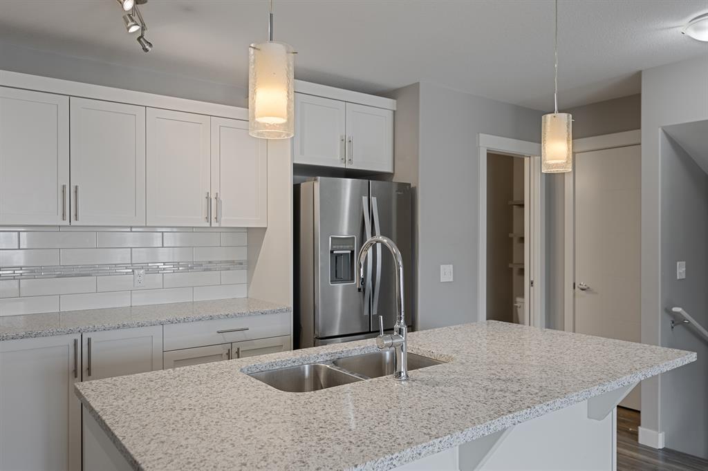 Attention all prospective homebuyers and savvy investors! Are you in search of a charming townhouse in Redstone that boasts an array of desirable features? Look no further, as we have just the gem for you! This exquisite townhome is an ideal choice for first-time buyers and seasoned investors alike, offering an impressive 1249 square feet of living space, 9-foot ceilings, and a single attached garage. Upon entry, you will be greeted by a warm and inviting foyer, complete with ample closet space. Ascending the stairs, you will discover a convenient half bath and beautifully crafted laminate flooring throughout the main floor. The kitchen is a dream come true, complete with quartz countertops, a spacious island, top-of-the-line stainless steel appliances, including an efficient gas stove, all complemented by ample cabinet space. The living room is perfectly situated adjacent to the kitchen, providing an optimal location for relaxation and entertainment. For those in need of a designated workspace or dining area, a generous space adjacent to the living room can be utilized for either purpose. Additionally, you will appreciate the bright and sunny east-facing balcony and windows that allow for natural light. The upper level features a luxurious primary bedroom, complete with a walk-in closet and a conveniently located 3-piece ensuite. On the opposite side of the upper level, you will find a 4-piece bathroom and another generously sized bedroom. Finally, up and to the right of the stairs, you will discover a separate laundry area and additional closet space to round out this exceptional townhome. The surrounding area has undergone significant development, providing access to the latest amenities without the headache of construction. Furthermore, there are even discussions of extending the train up to 128th Ave, making this home within walking distance! All necessary amenities, such as gyms, restaurants, and coffee shops, are conveniently located nearby. Do not miss out o n this exceptional opportunity. Schedule your showing today! (id:22211)