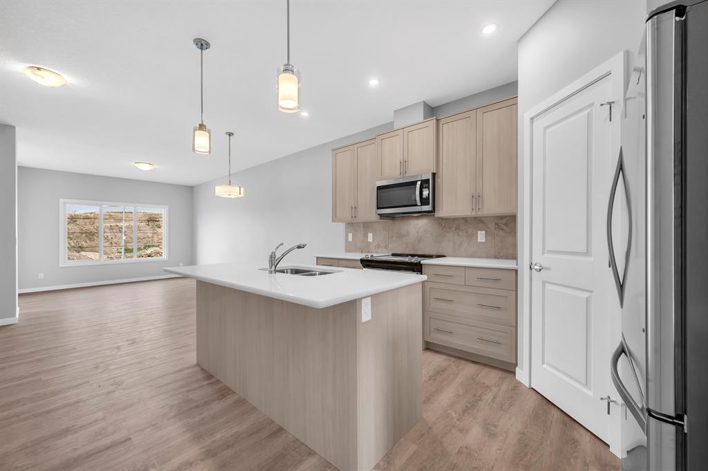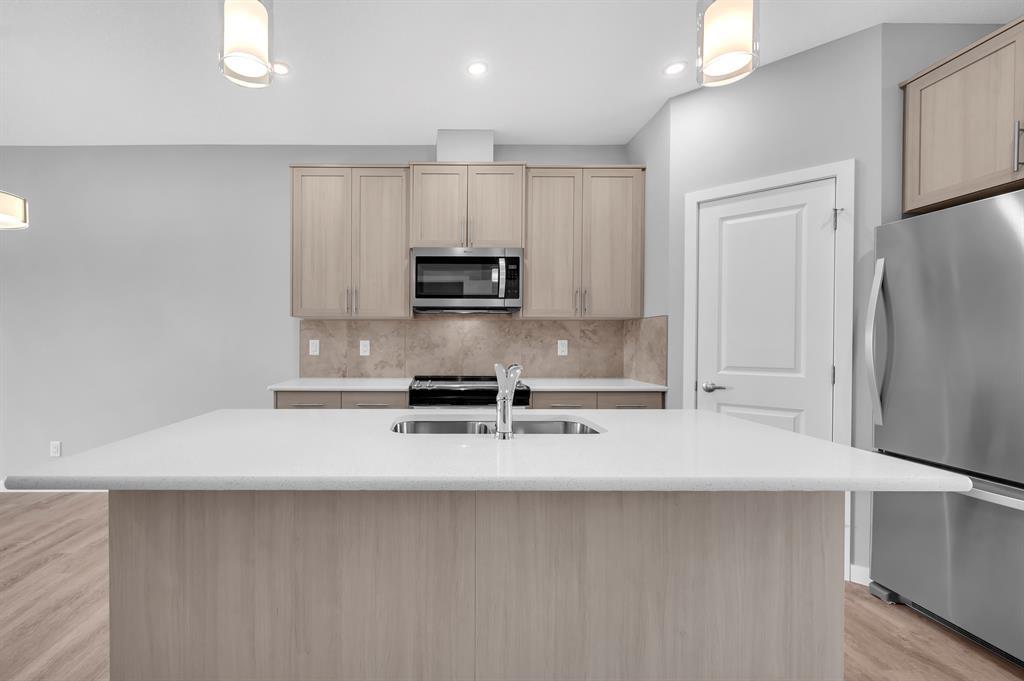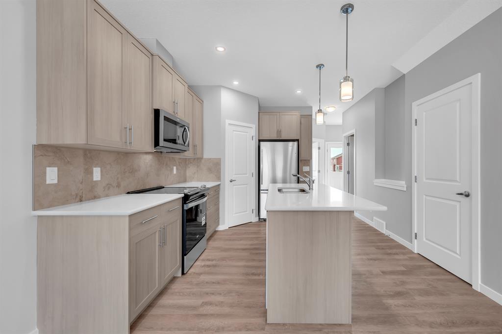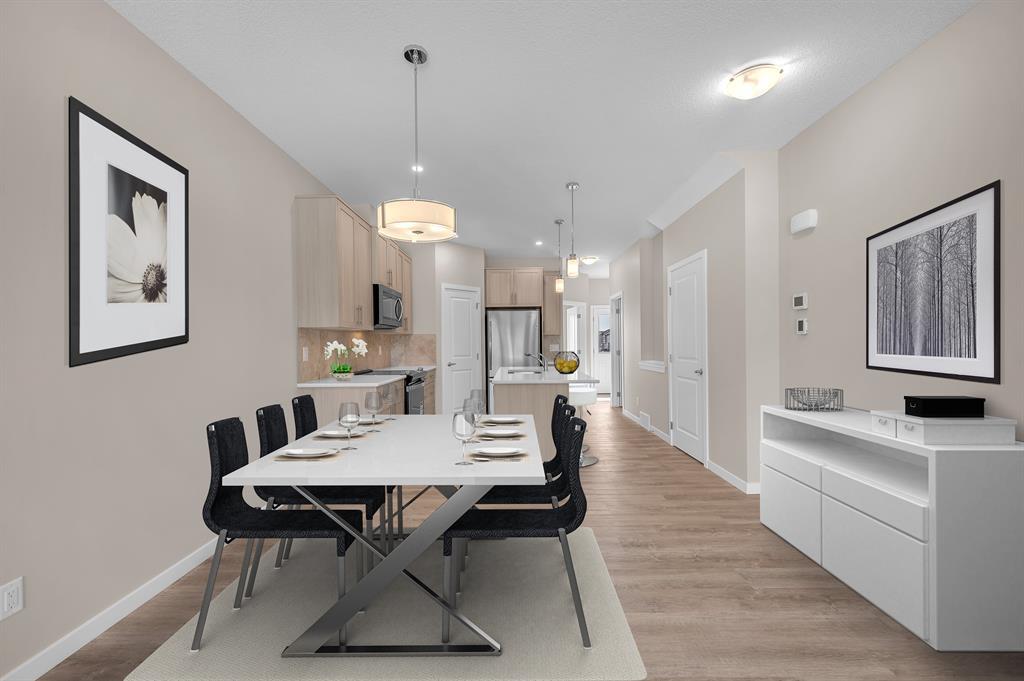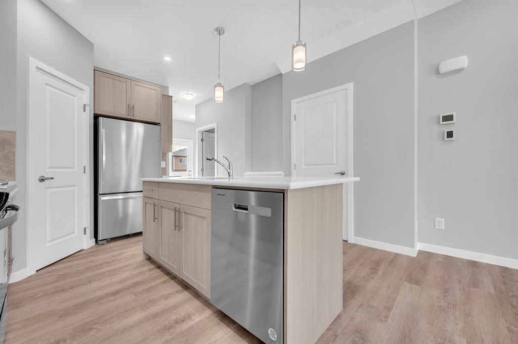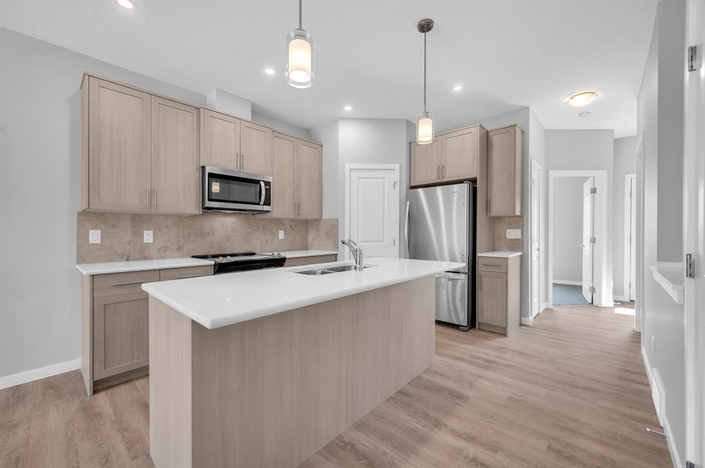 Welcome to the fantastic and desirable community of Cornerstone. When You enter to this Beautiful Modern 1462 Sqft (BUILDER SIZE 1576 SQFT) (4 bedroom and 3 full Washrooms) House you will find the bright and spacious living room. There are many planned retail stores, banks and restaurants that are steps away from this property. Also, mins away from the new planned Calgary C-train line. Upon entrance, you'll notice a nice size closet and a bright living space with large windows that are perfect for cozy gatherings with lots of natural light! 9 FOOT CEILINGS throughout the main level. The open concept kitchen offers fantastic upgrades such as beautiful quartz countertops, upgraded kitchen cabinets, upgraded carpet underlay, Vinyl plank flooring, Stainless Steel appliances, an upgraded backsplash in the kitchen, timeless cabinetry, and a double sink. Portlights throughout the main level. You will find 3 bedroom and a laundry closet on the upper level. The primary suite is fit for a king or queen with a 4pc Ensuite addition to a walk-in closet. Easy Access to Stoney Trail/Airport/Cross iron Mall/School nearby/Grocery Store Etc. (id:22211)