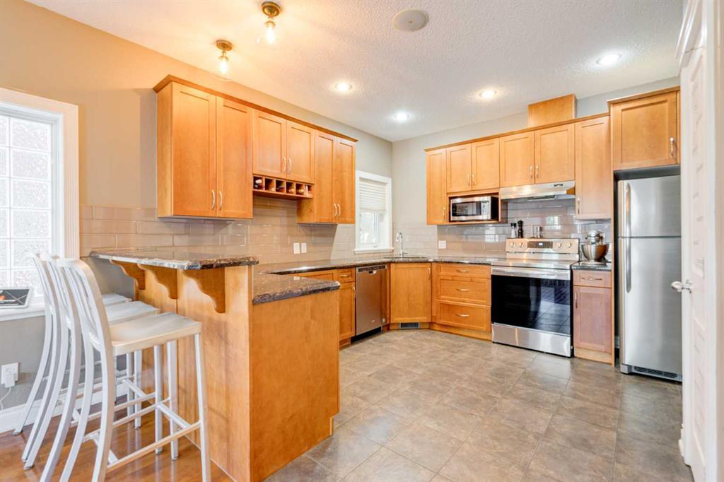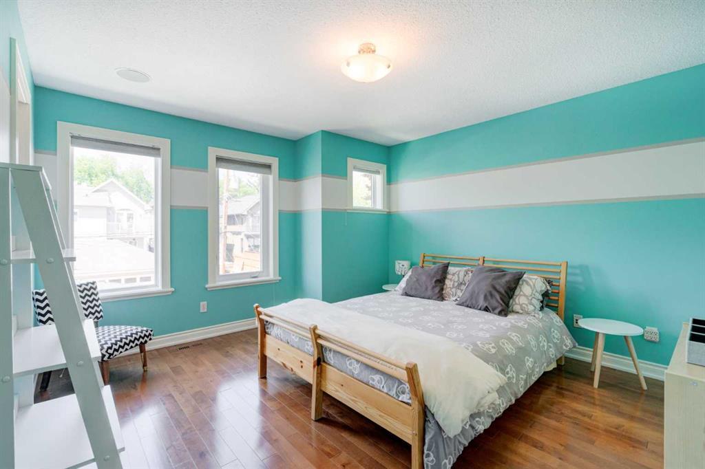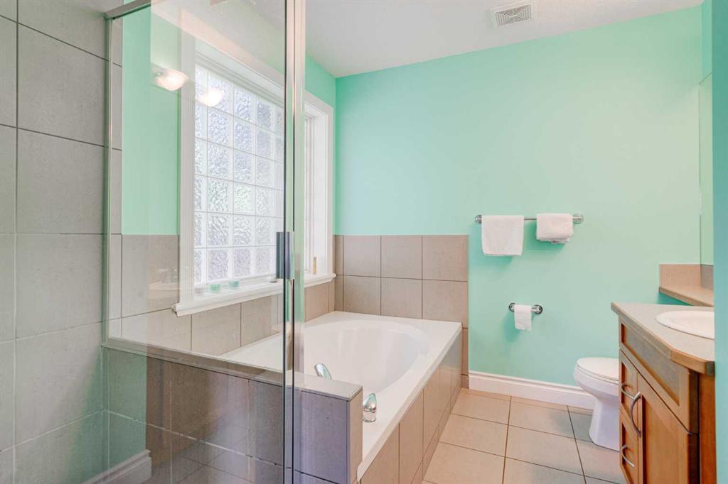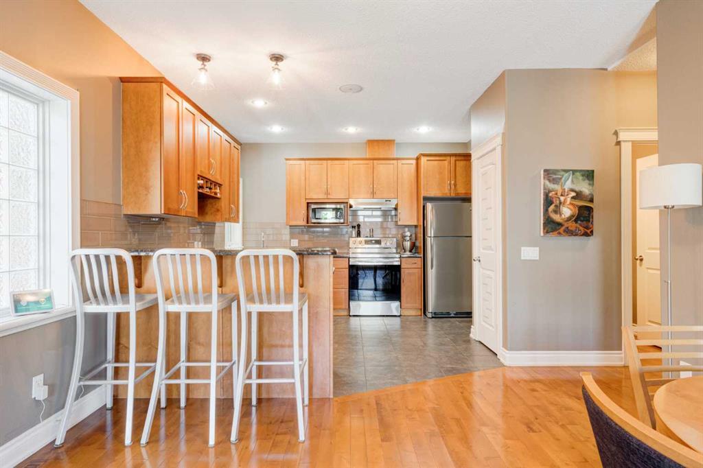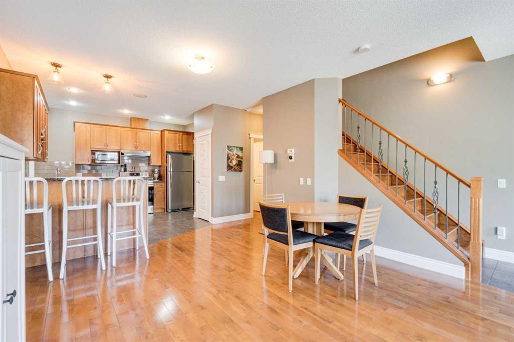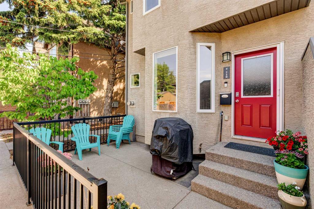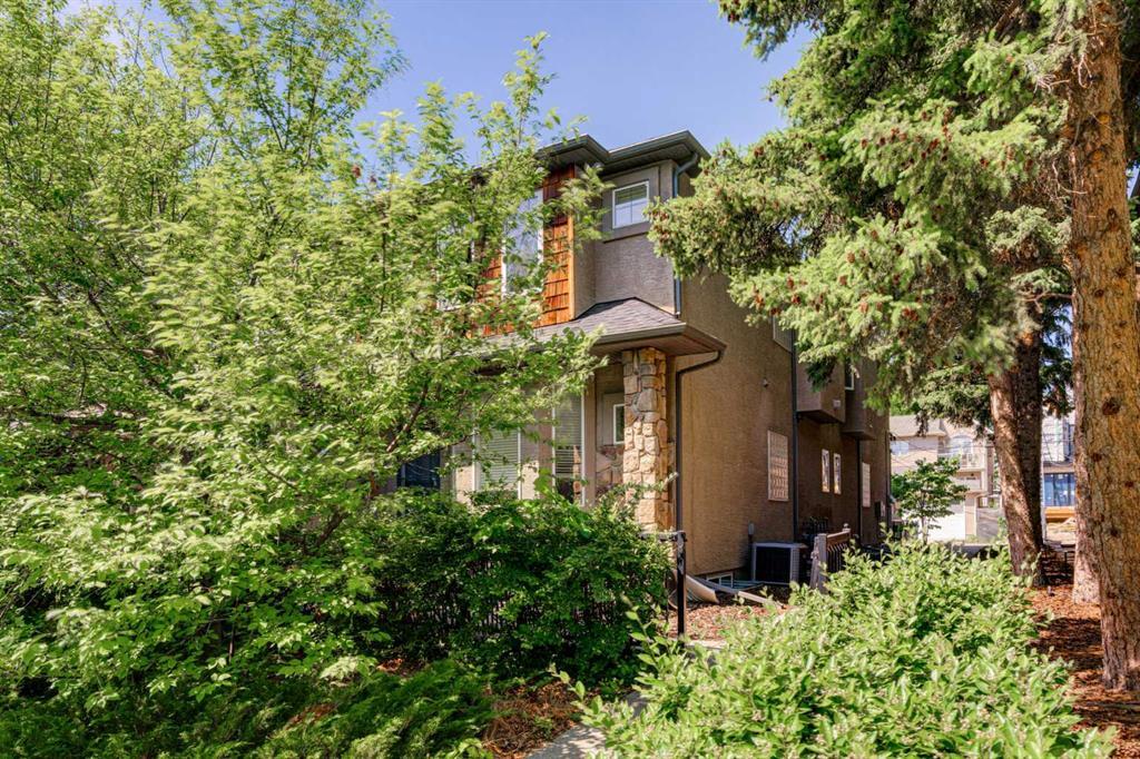 Welcome to 2, 710 56 Avenue SW. Exquisite townhouse just moments away from a host of amenities and a short drive from downtown. This stunning private rear unit is drenched in natural light, featuring a South-facing fenced patio enveloped by lush trees and vibrant shrubs. The interior is adorned with tasteful neutral paint and boasts high-profile baseboards, complemented by expansive windows, central AC, 9-ft ceilings, maple hardwood flooring, a cozy gas fireplace, and ceiling speakers for a truly immersive experience. The open kitchen showcases elegant shaker-style cabinets, stainless steel appliances, a pantry for added storage, and a convenient breakfast bar perfect for quick meals on the go. Upstairs, you'll discover two delightful master bedrooms, offering an ideal arrangement for roommates or guests. The main primary suite is a haven of tranquility, featuring a walk-in closet, and a luxurious ensuite complete with a relaxing soaker tub and a sleek glass shower. The second bedroom boasts its own private ensuite with a beautifully tiled tub/shower and an oversized vanity for added convenience. For ultimate ease, the upper floor also hosts a laundry area with a convenient stacking washer and dryer, making chores effortless. The fully finished basement adds even more living space and functionality, presenting a spacious 3-piece bathroom, a generous recreational area perfect for entertainment, and a versatile den/flex room that could easily be utilized as a third bedroom or a home office. Parking is a breeze with the heated garage, and there's ample additional street parking available right in front of the home. (id:22211)