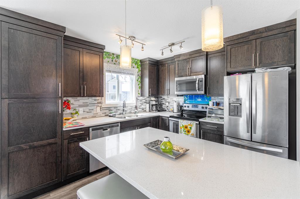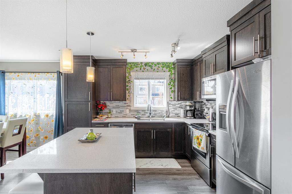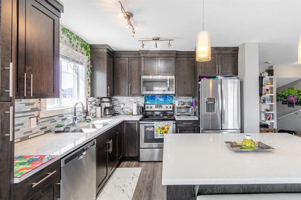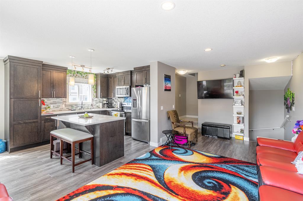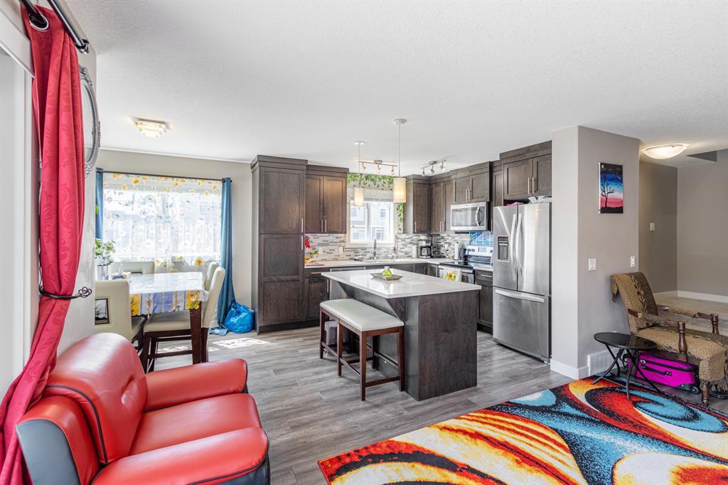 This three-storey corner townhome is one you can only dream of, a hidden-gem located in the heart of Skyview, boasting over 1450 sqft, featuring a front yard oasis and a single garage! This three-bedroom, two and half-bathroom townhome is ideal for a first-time buyer, investor, or a young family as it is in a well-managed complex with low condo fees, is completely turnkey and offers exceptional finishes without compromising on space! The exterior has stunning curb appeal as this unit is nestled in front of a play ground. This unit offers beautiful views.Lower level- From the moment you enter, you will be impressed by the thoughtful design of this home. Your formal entrance is adorned with natural light and features a spacious front hall closet. This level offers office/den, single car heated garage and utility room.Main level - The beautifully appointed kitchen is timeless in design, with ample cabinetry, plenty of counterspace, full-sized professional appliances, a pantry and an l-shaped island ideal for cooking and entertaining. The kitchen is open concept in design and seamlessly transitions into the family room which features real hardwood floors and together this is an unforgettable space for friends and family to gather. This level is completed by a powder room that is conveniently tucked away from the main living areas. This level has a two-piece bath and a large laundry room.Upper level - When your day comes to an end, unwind in your primary retreat, this haven is generous in size and offers plenty of closet space. – because you deserve it! The second and third bedroom is spacious as well and the bedrooms are on opposing ends of the unit offering privacy and the preferred configuration for families, roommates, or guests. The pride of ownership and meticulous care is evident throughout the entire space. It is rare to find a townhome, and this is the perfect feature for those of you with furry friends or little ones! (yes, this complex is pet friendly with board approval). As a bonus this complex has plenty of visitor parking just steps from your front door. This townhome is situated on top of the heated garage – allowing your garage/vehicles to be warm in the winter months. The area is in close proximity to schools, shopping, gas station, country hill drive. Commute anywhere with stoney/deerfoot trail nearby, city transit, and the greenline coming soon! Perfect for those looking to right-size, this townhome has exceptional value and leaves nothing to be desired! Please call your favourite Realtor today to book your private showing. (id:22211)