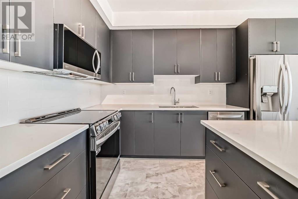 Welcome to the award-winning community of Legacy!! This 3-bedroom 2 bath , AIRCONDITIONED, Low Condo fees, on 4th floor corner brand new unit comes with 2 parking spots one of witch is TITLED, and a assigned storage space, and is nestled in the heart of Legacy. This large and open floor plan upon entering the unit, you are greeted by an open floor plan that flows seamlessly 9ft ceilings through out, from the kitchen to the living room. 3 spacious bedrooms are on opposite sides of the unit-providing separation and privacy-great for roommate scenarios, or out of town guests. The primary bedroom offers 9ft ceilings , large walk- in closet with built ins and a luxurious 3pc bath with quartz vanity, while a second four- piece bathroom serves the second bedroom and guest from the living room and kitchen. The 3rd bedroom could be amazing Den/office, amazing open kitchen with modern cabinets all the way to the ceiling, with large center island, and quartz counter tops. Stainless steel appliance package, with CENTRAL A/C UNIT. Large windows throughout for that natural light, with many customized features including, custom lower cabinets, huge balcony with gas hook up, spacious laundry room, with full size washer and dryer, Luxury Vinyl plank, and modern ceramic tile. 1 titled heated underground parking and one assigned parking outdoors and a titled storage unit. This professionally managed complex is just 2 min away from Shopping Centers, Restaurants, and all levels of Schools. Close to Stoney Trail, Deerfoot, and Macleod Trail, and steps from Public Transportation. Amazing Location come take a look!!! (id:22211)