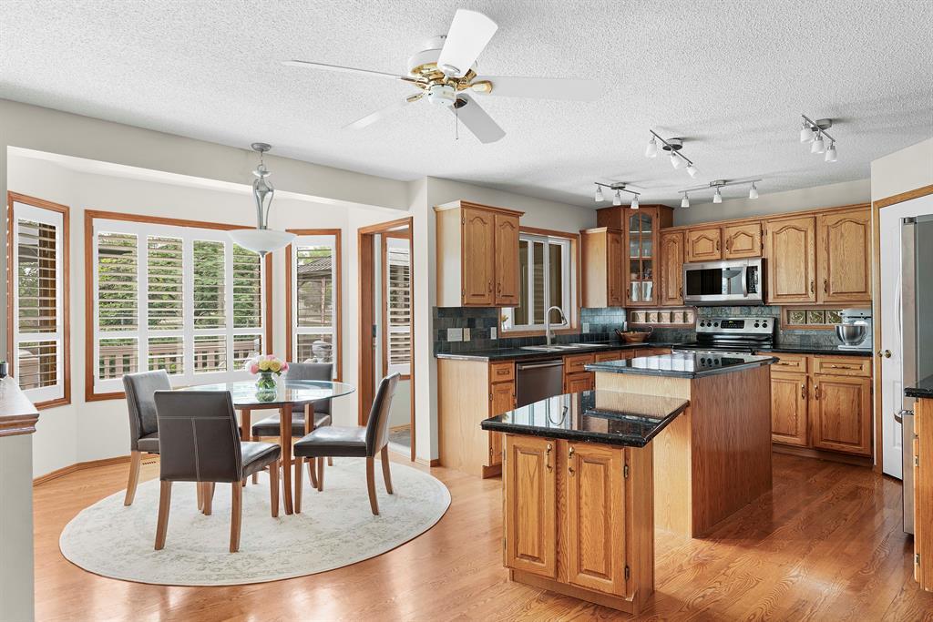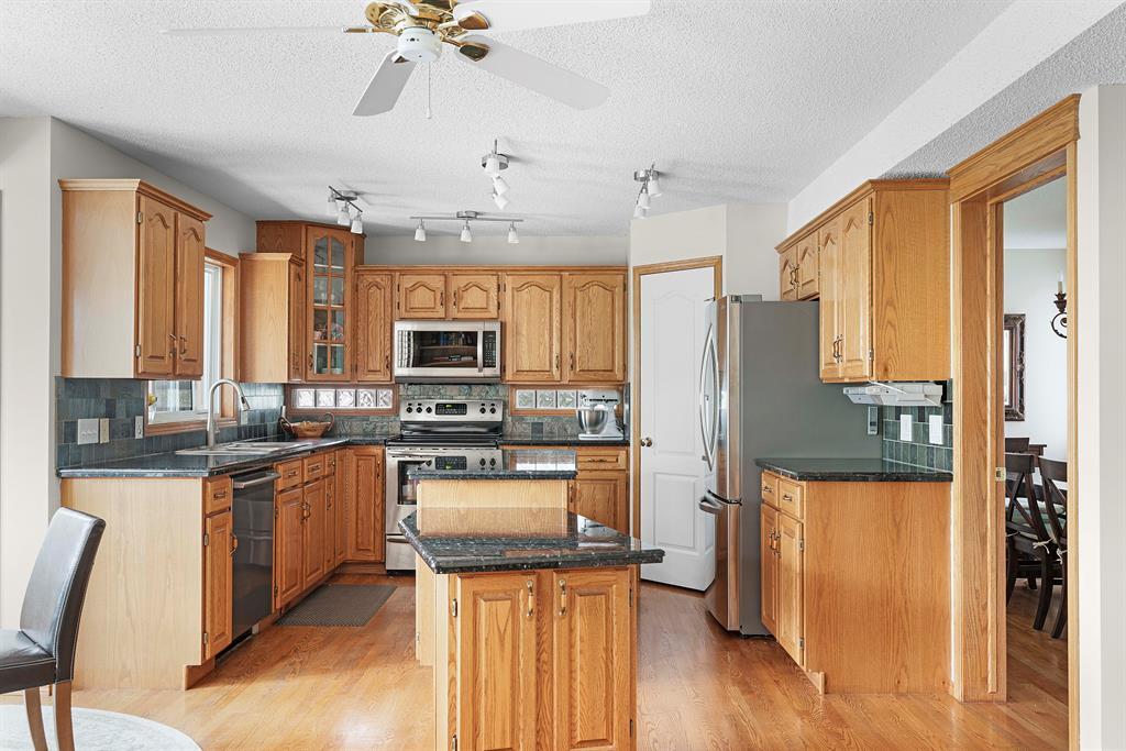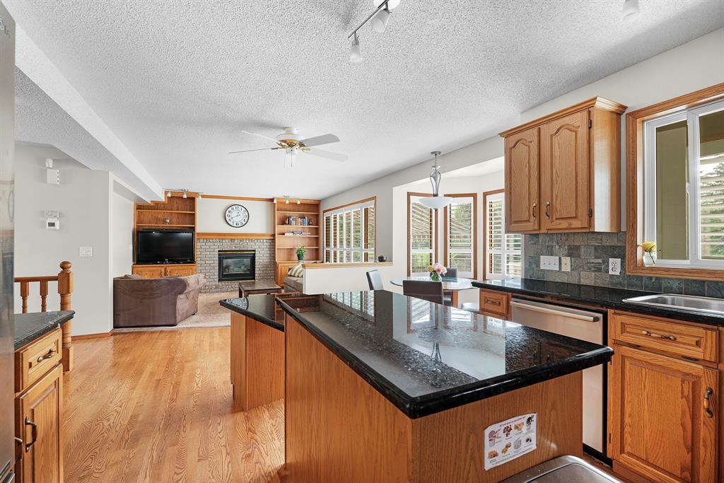 Presenting a beautiful family home located on a quiet street in the family friendly community of Evergreen Estates. This 5 bedroom home with expansive backyard backs on to a large green space connecting with Fish Creek Park and numerous walking trails. The home features oak hardwood floors throughout the main floor, central AC, newly painted main and upstairs levels, and new carpet upstairs. The spacious kitchen showcases granite countertops and oak cabinetry with plenty of cupboard space, opening onto the main floor family room with a gas fireplace surrounded by oak built-ins. The main floor also includes an inviting living room, office with built-in oak book shelves and a 2-piece bathroom. The upstairs features a spacious master retreat with 4-piece ensuite bathroom and spacious walk-in closet, as well as 3 additional bedrooms and a 4-piece bathroom. Enjoy the extra space in the basement family room with a second fireplace and plenty of room for the kids to play. The expansive backyard features a large deck conveniently located off the dining room for backyard entertaining, as well as a lower paved courtyard with retractable awning. Relish the south-facing yard or head out to the walking paths just out your backdoor, with Fish Creek Park minutes away. Experience peace of mind with the roof and awning both replaced just a year ago. This home is a must see! (id:22211)