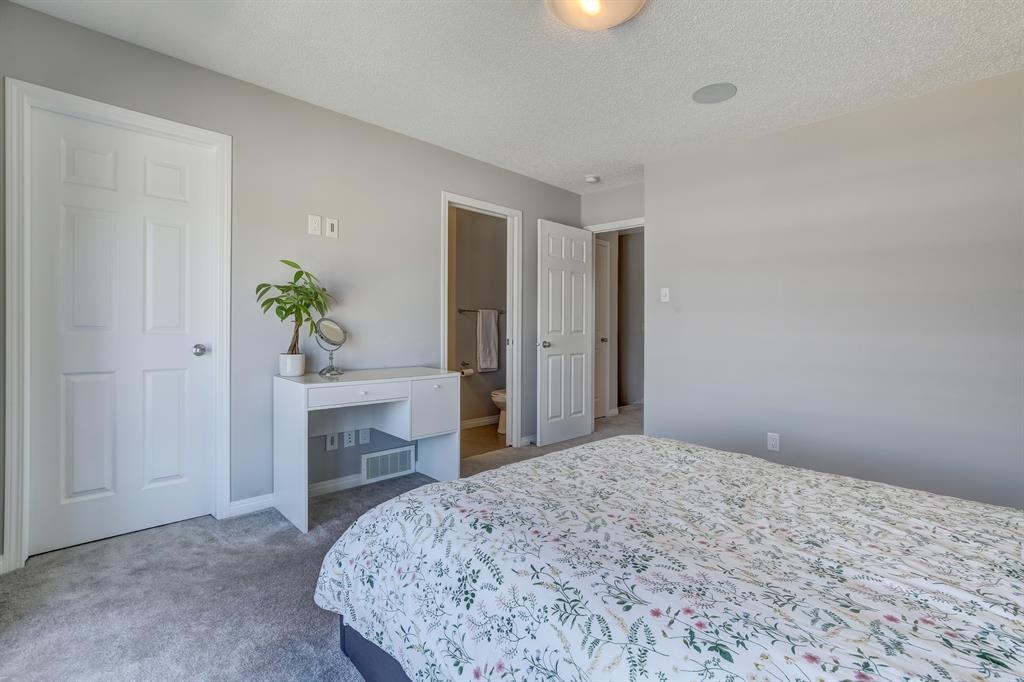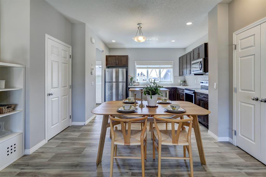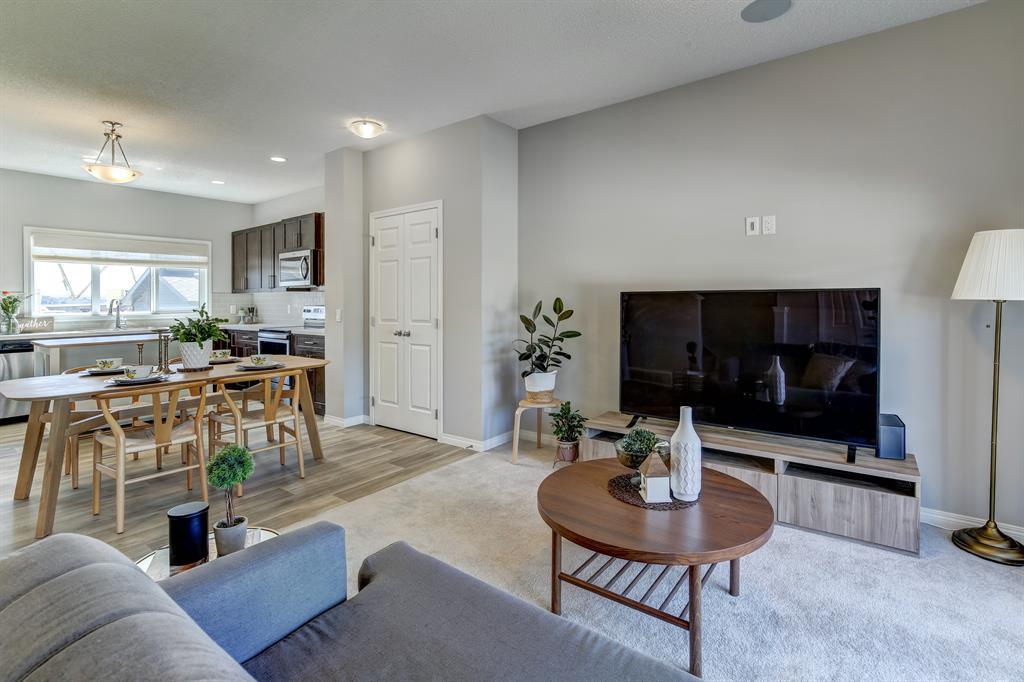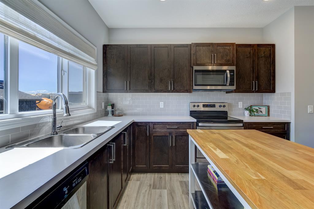 This rare find, perfectly designed semi detached former Excel showhome is on the market! The main floor offers a bright and open floor plan with a welcoming family room, the dining area is large enough for guests and the kitchen wraps around the back of the house with ample cupboards, pantry and a central island. Upstairs is where the Excel charm really shows, the 2 bedrooms are beautiful and have south facing windows, the master retreat will fit your king sized bed with room to spare and includes a walk in closet as well as a full ensuite. this home comes with custom window coverings, a rear deck, a gravel parking pad and the basement is roughed in for future bathroom. With no condo fees and Air Conditioning it is going to go fast! (id:22211)