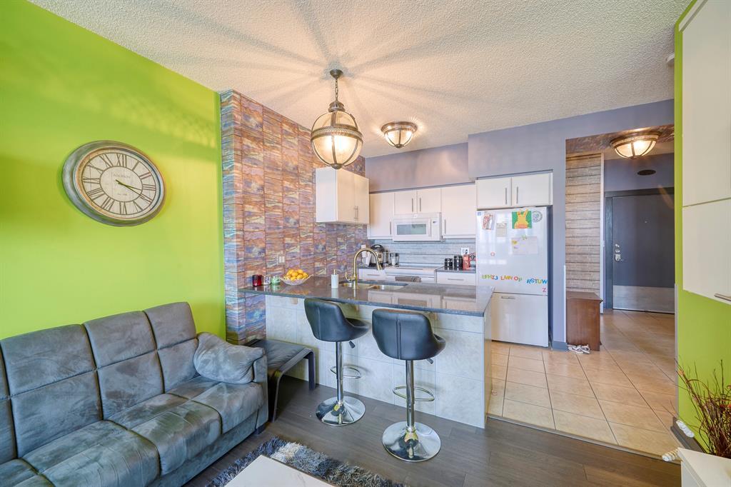 It is time for you to see why some many people LOVE living in LONDON and this UPGRADED "Yorkshire" unit STANDS OUT FROM THE CROWD. Upgrades include newer APPLIANCES, STONE AND TILE FEATURES, BUILT IN CABINETRY, newer WOOD FLOORS, RESTORATION HARDWARE LIGHTING, California closets ,boiler ,the list goes on. This 724 sq. ft SPACIOUS one bedroom unit plus den has a private balcony and in-suite laundry. You will love living in this quiet building with outstanding views. The LRT is steps from London via an integrated pedway. There is heated underground parking and smart Wiring with digital technology in every suite. When you live in London you are living in the heart of south calgary with easy access to it all. Don’t miss out on this beautiful condo! (id:22211)