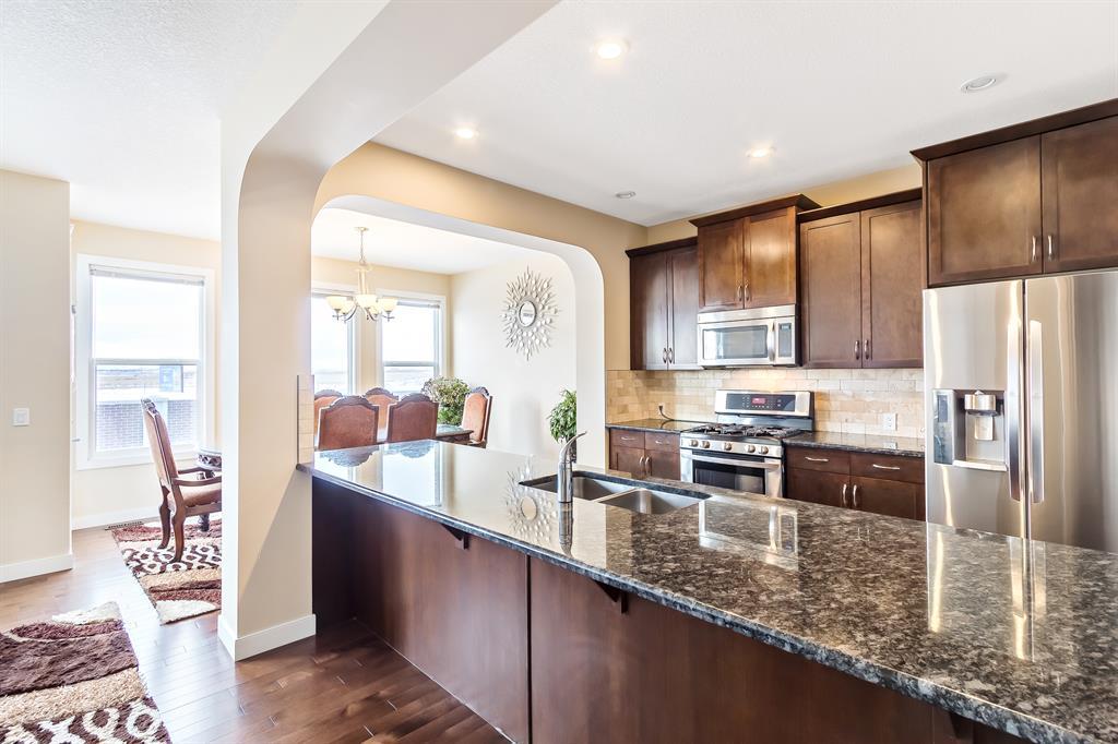 Welcome to this well kept and beautifully designed with 9 feet high ceiling, 6 Bedrooms, 3.5 Bathrooms, separate basement, with a total of over 3340 SF living space home,located in desirable community of Redstone. You will find an amazing the roomy foyer of the home as you walk through Right in front is the DEN opposite the 2pc bath on this level. Just ahead you find the kitchen and living room in a nice OPEN layout complete with BIG WINDOWS and HIGH CEILINGS. The kitchen has had no expense spared and features a gorgeous backsplash, pot lights, and tons of STORAGE space thanks to the tall cabinets and walk through PANTRY. Upstairs, you first find the bonus room which makes for a great entertainment space or family gathering. This level also has a 4-pc bath and 4 SPACIOUS BEDROOMS including the GRAND MASTER which has its own 5-pc ensuite bath and roomy closet. The basement level has a well finished illegal SUITE with a SEPARATE SIDE ENTRANCE. Here you will notice the SECOND KITCHEN and the well sized living room. The level is completed with 2 BEDROOMS and a FULL BATH. (id:22211)